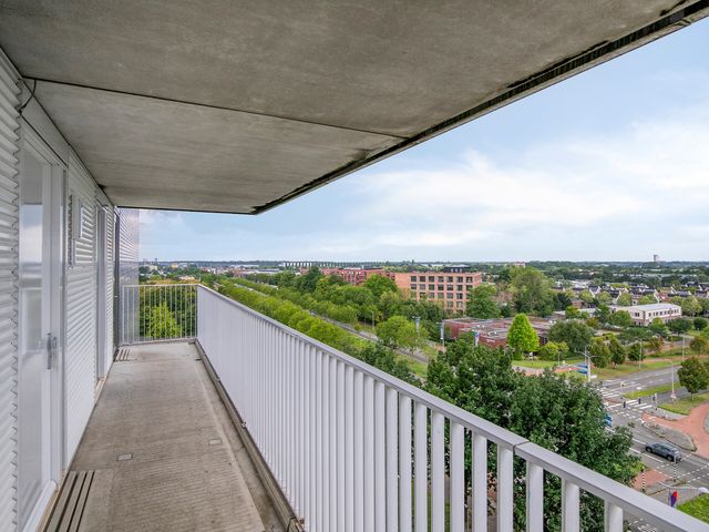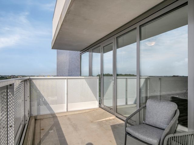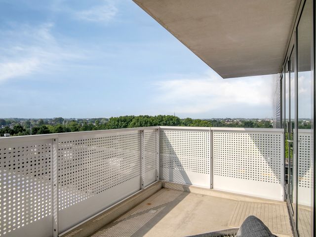 Vanuit de woonkamer is er toegang tot het ruime balkon. Hier kun je echt ontspannen en genieten van de buitenlucht en heb je een prachtig vrij uitzicht. Het balkon is gelegen op het zonnige zuiden. Door de ligging op een hoek biedt dit tevens veel privacy.