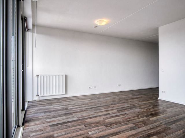 De wanden zijn voorzien van stucwerk en de vloer is afgewerkt met laminaat welke doorloopt in het gehele appartement met uitzondering van de badkamer en toilet.