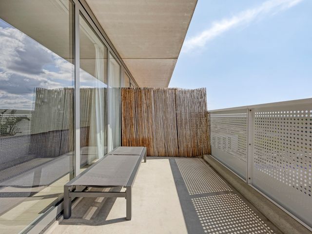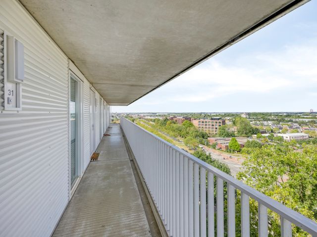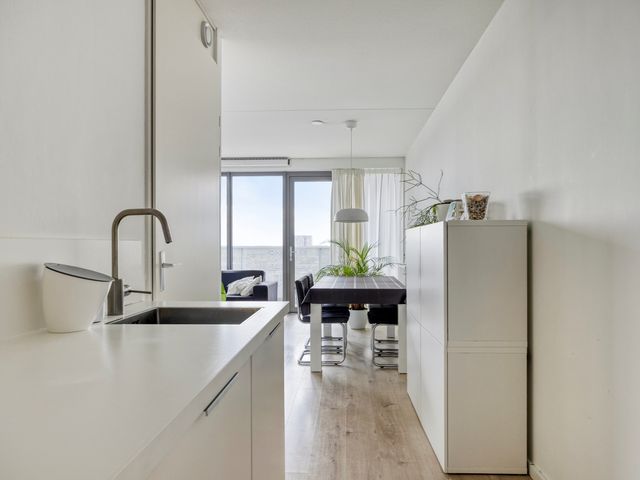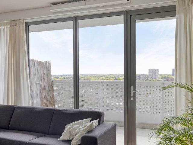 Vanuit de woonkamer is er toegang tot het ruime balkon. Hier kun je echt ontspannen en genieten van de buitenlucht en heb je een prachtig vrij uitzicht. Het balkon is gelegen op het zonnige zuiden. Door de ligging is er een gevoel van rust, privacy en geen inkijk.