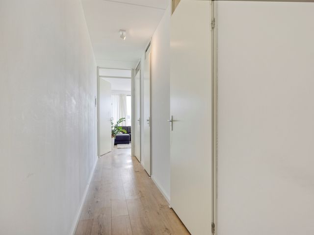 De wanden zijn voorzien van stucwerk en de vloer is afgewerkt met laminaat welke doorloopt in het gehele appartement met uitzondering van de badkamer en toilet.