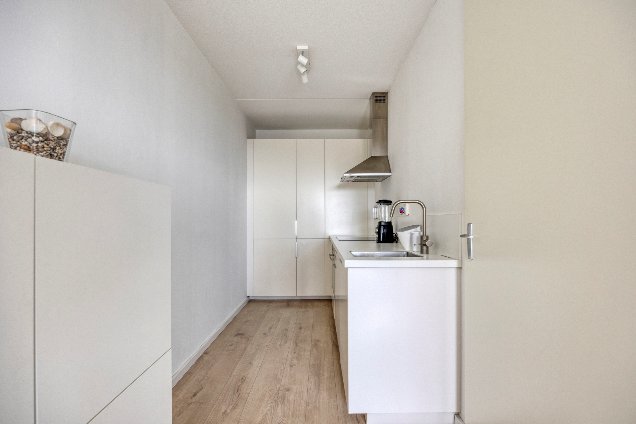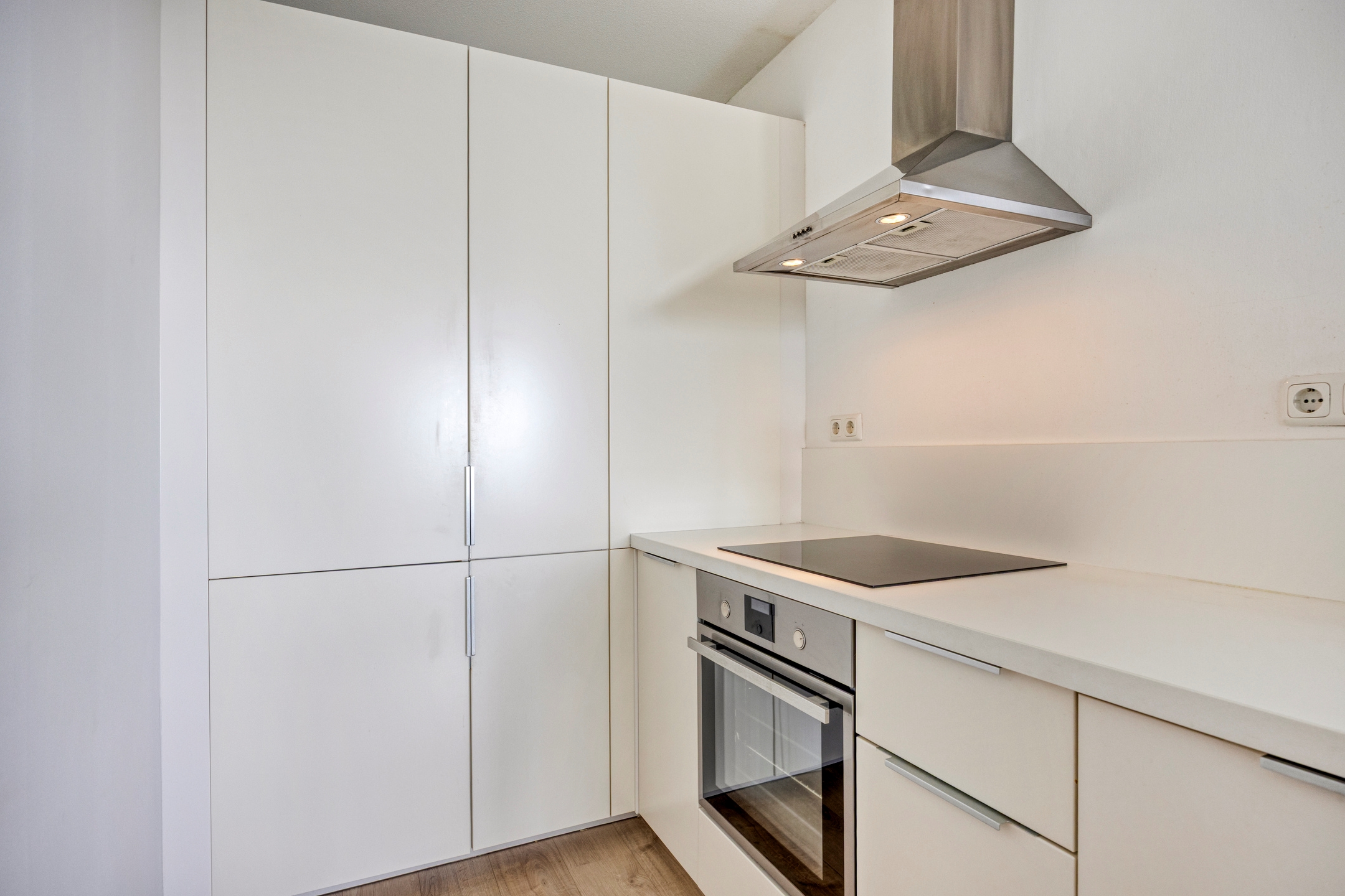 De open keuken is voorzien van voldoende keukenkasten en is uitgerust met de volgende inbouwapparatuur; 4-pits inductie kookplaat, rvs afzuigkap, vaatwasser, vriezer oven en een koelkast.