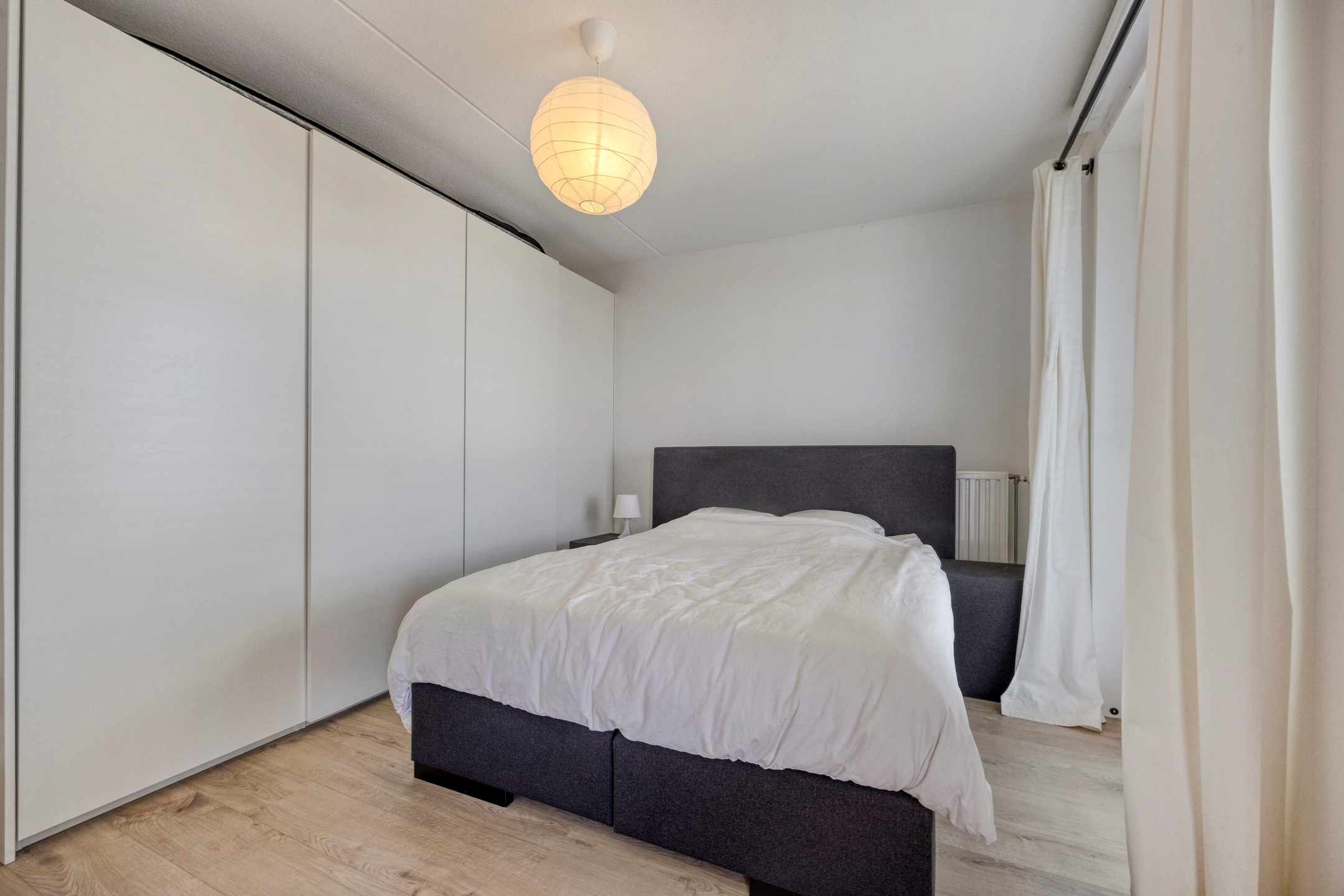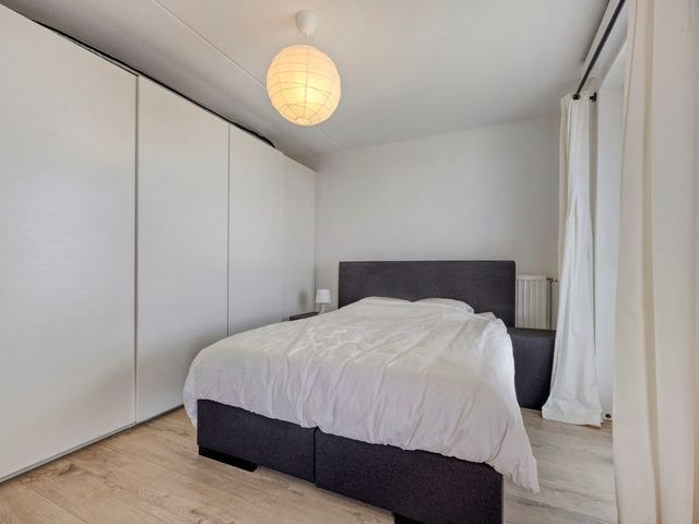 De ruime en lichte slaapkamer is voorzien van een laminaatvloer en de wanden zijn voorzien van stucwerk.
