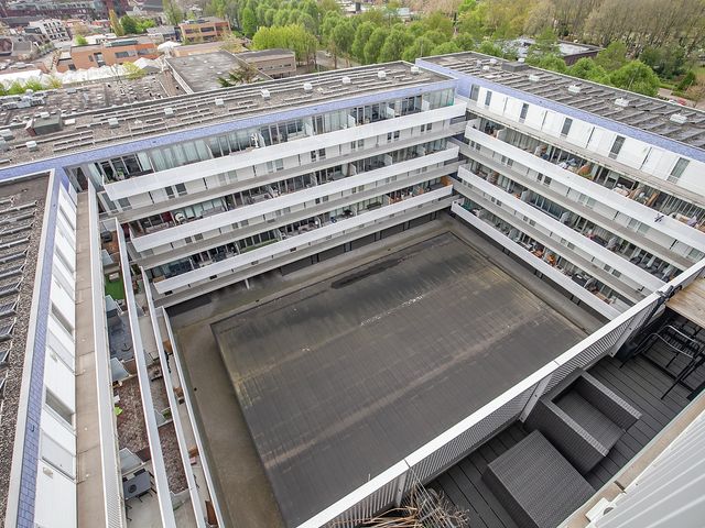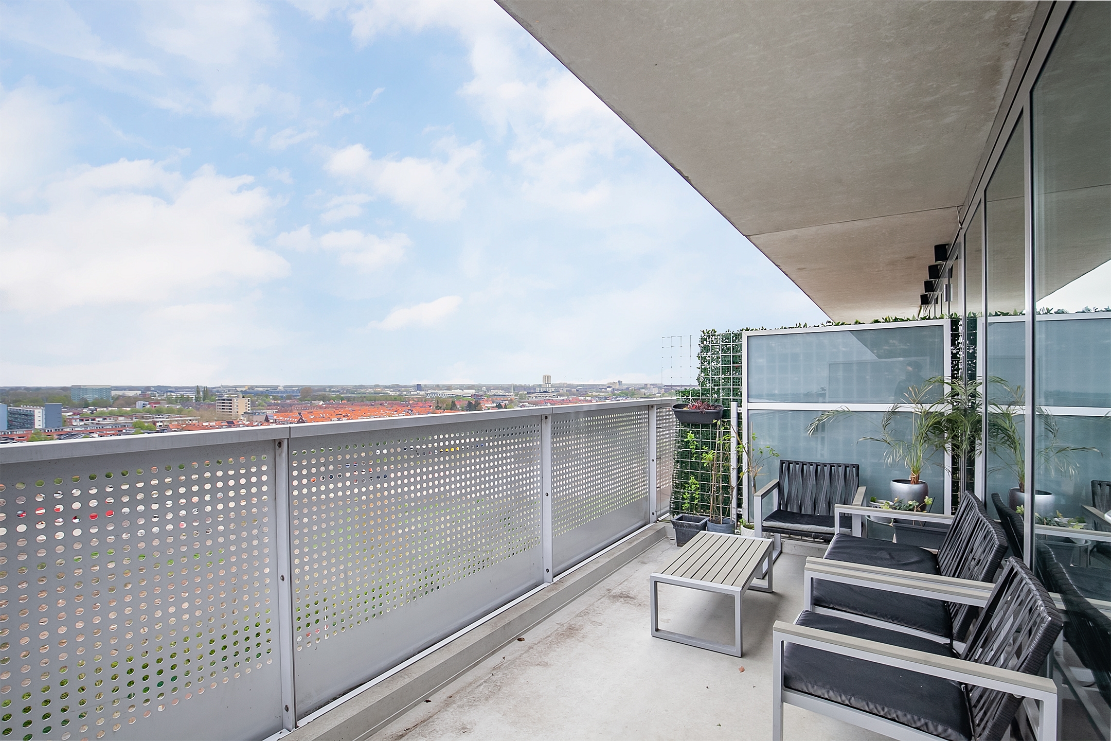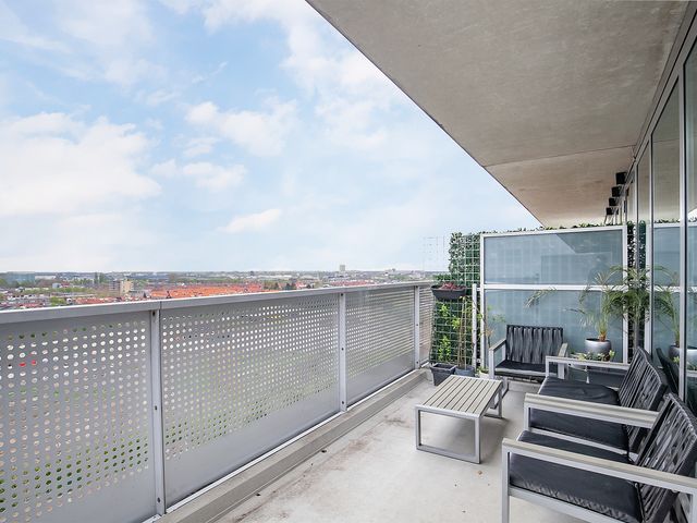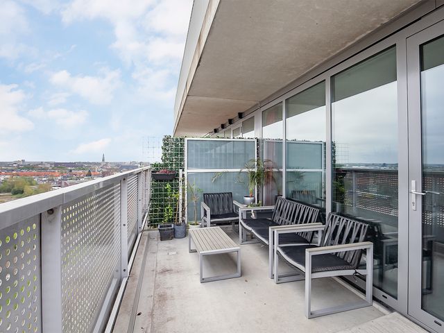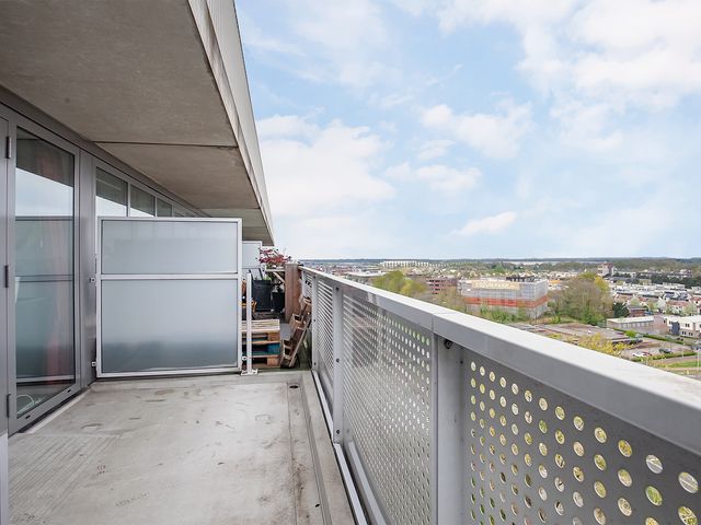 Vanuit de woonkamer is het ruime balkon te bereiken. Hier geniet je van een prachtig uitzicht over Breda. Het balkon ligt aan de buitenzijde waardoor je geen geluidsoverlast hebt van de binnenliggende balkons en geniet je van veel privacy. In de zomer zit je hier heerlijk vanaf de namiddag in de zon.