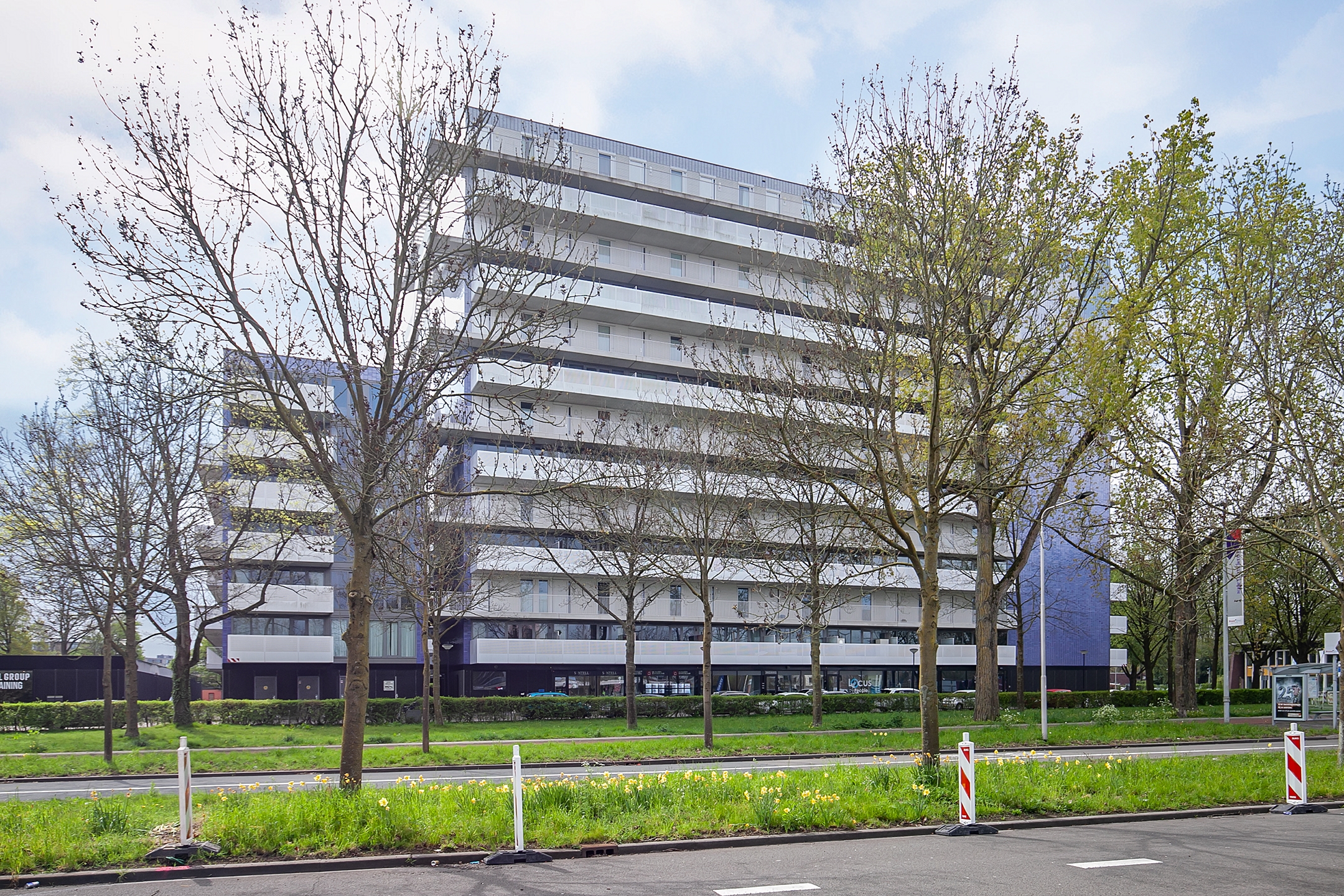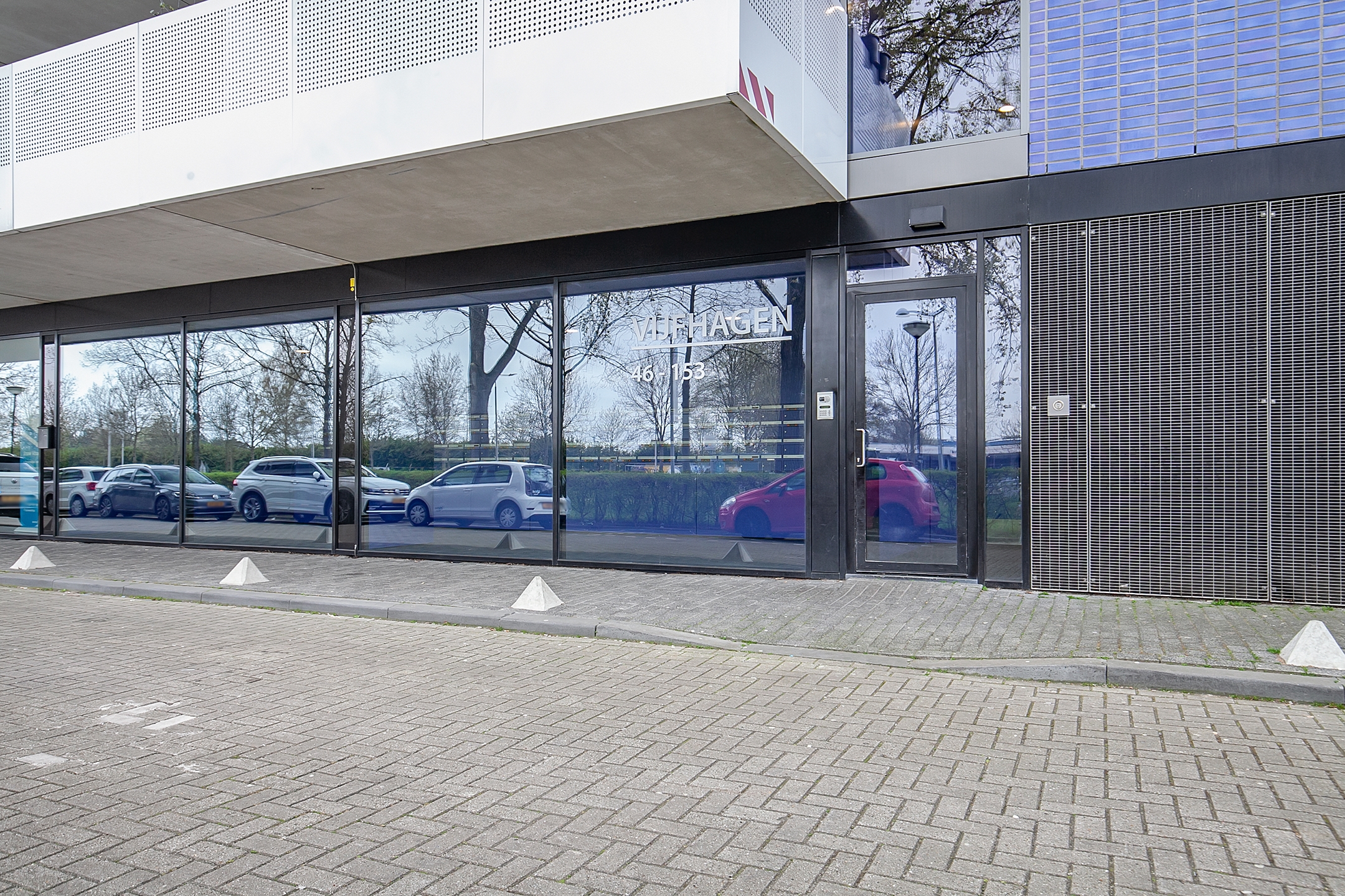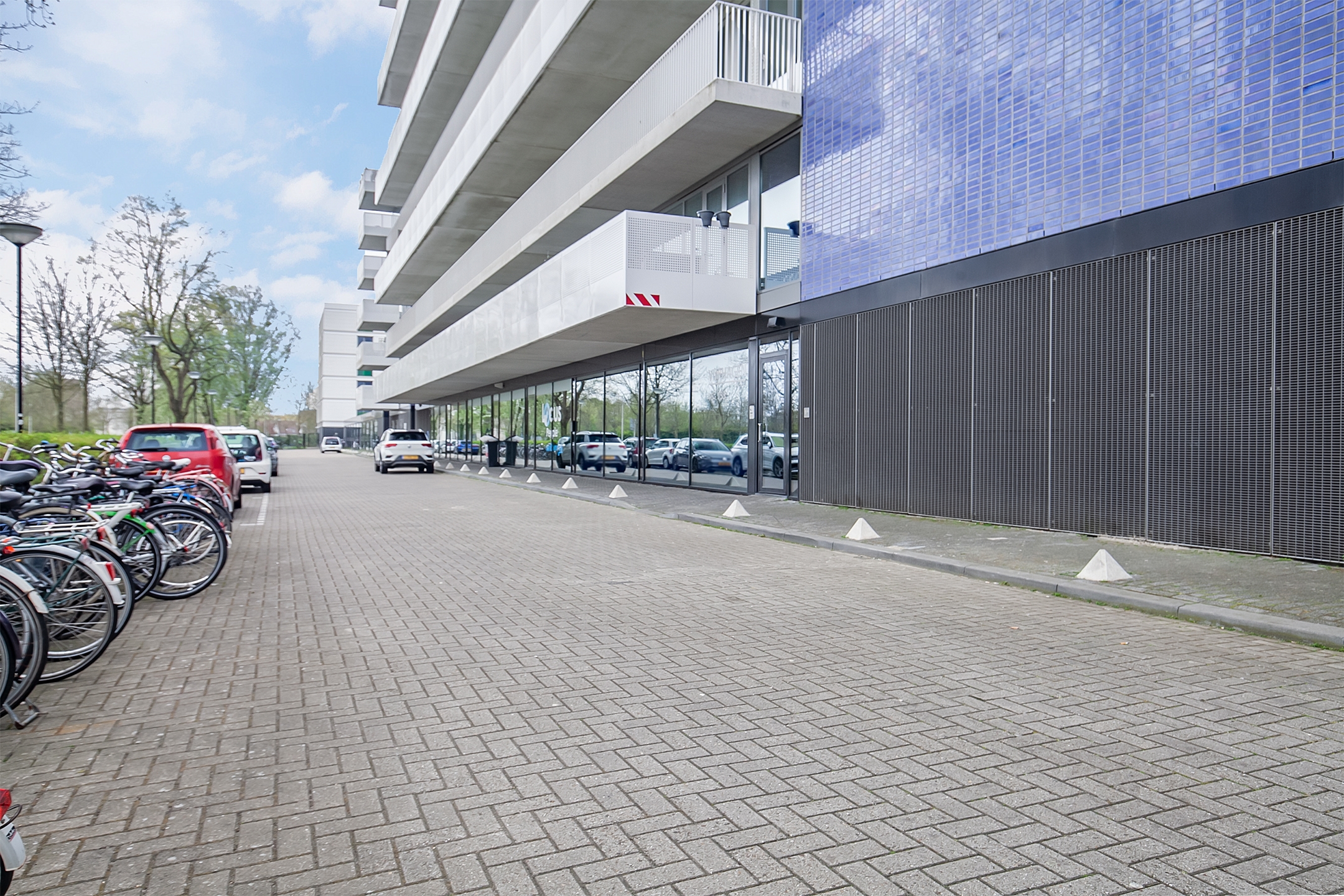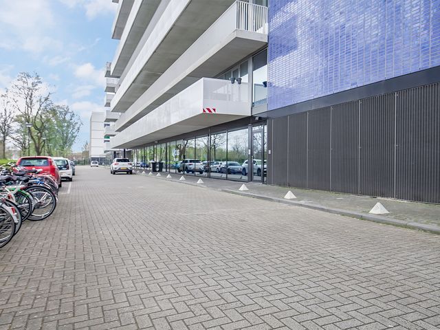 In de plint van het complex zijn commerciële ruimtes gelegen, ons eigen kantoor is hier op nr. 157 gehuisvest.