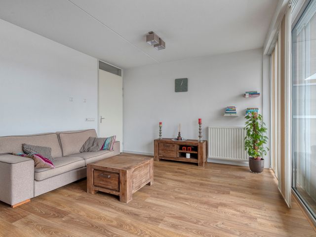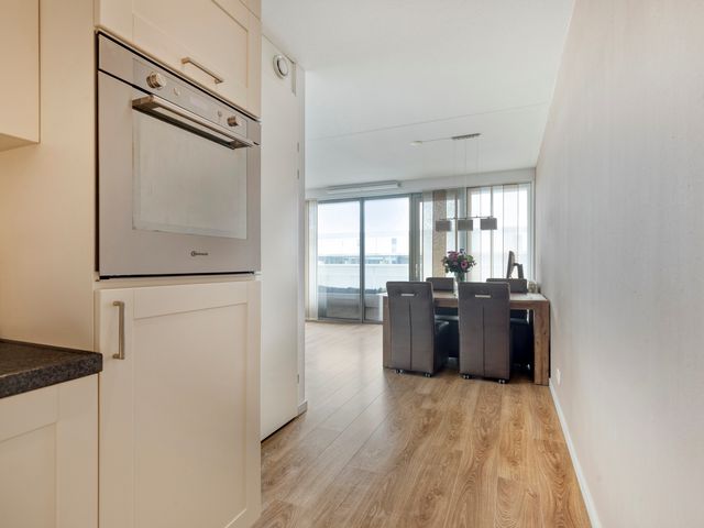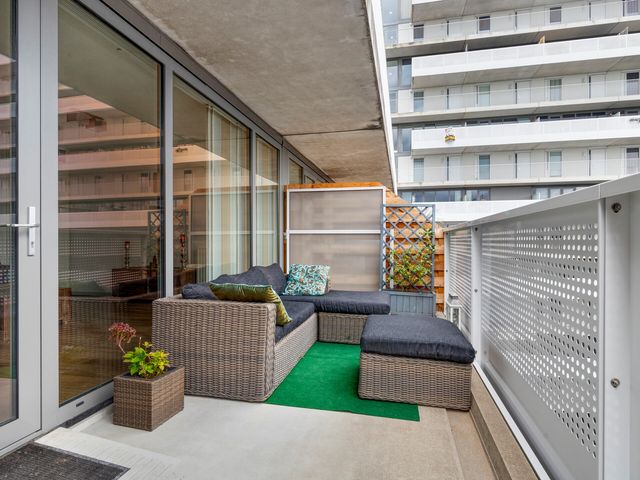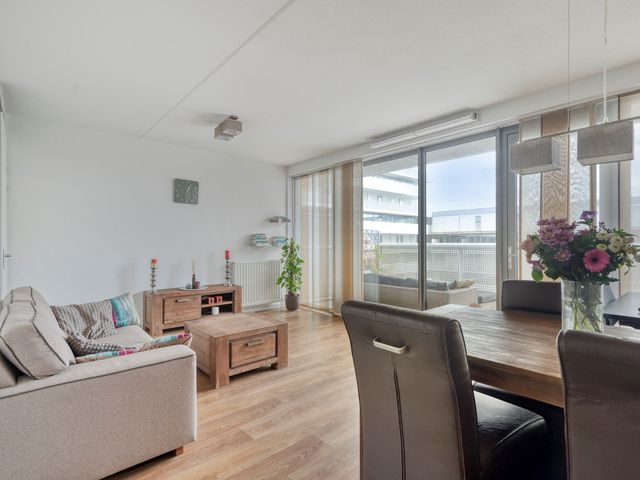 Dit moderne 2-kamerappartement op de 5e verdieping heeft alles; een lichte woonkamer, luxe keuken, fijne badkamer, ruime slaapkamer én een royaal balkon.