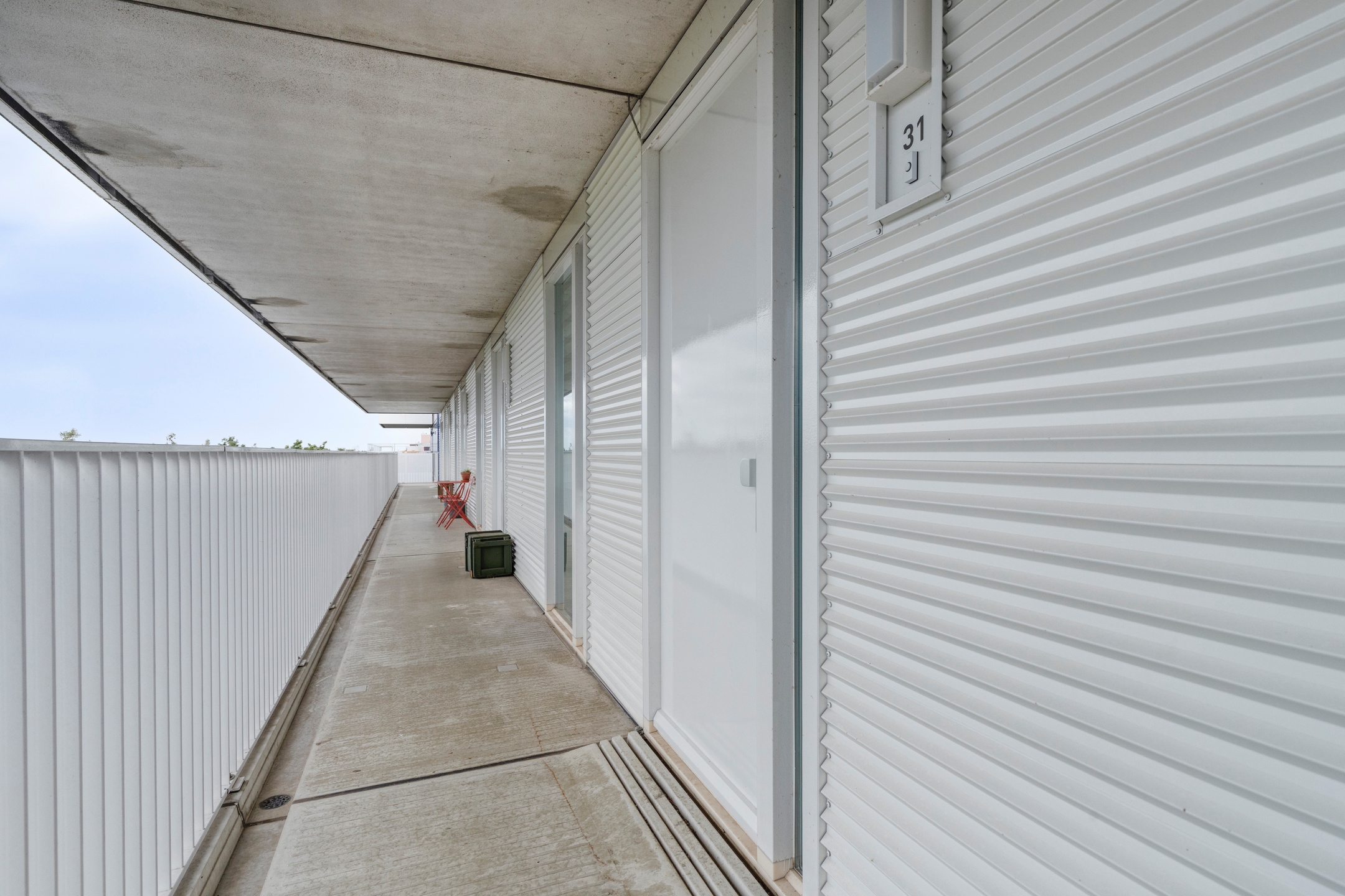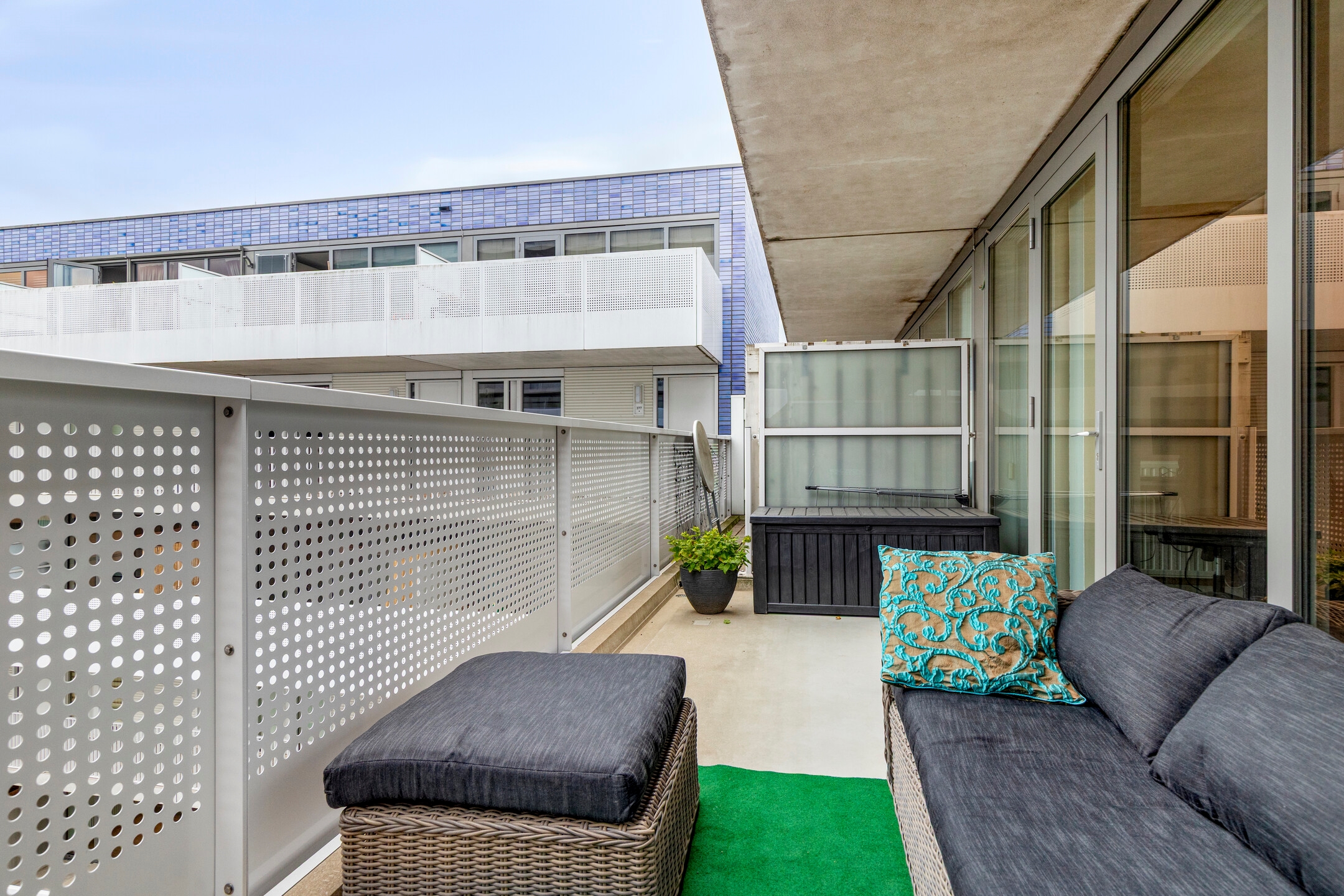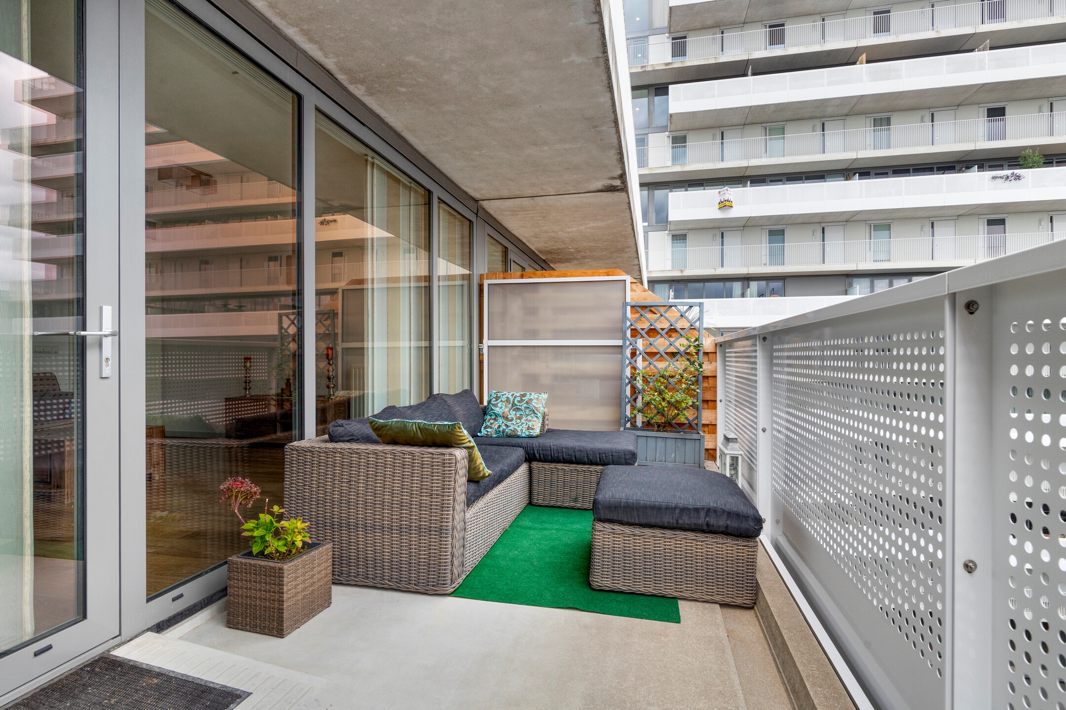 Het ruime balkon nodigt uit om een loungebank te plaatsen, zodat je hier heerlijk kunt loungen, zonnen of gezellig buiten zitten.