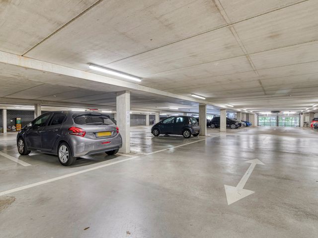 Bij het appartement hoort een eigen parkeerplaats in de parkeergarage en daarnaast een handige, afgesloten fietsenberging.