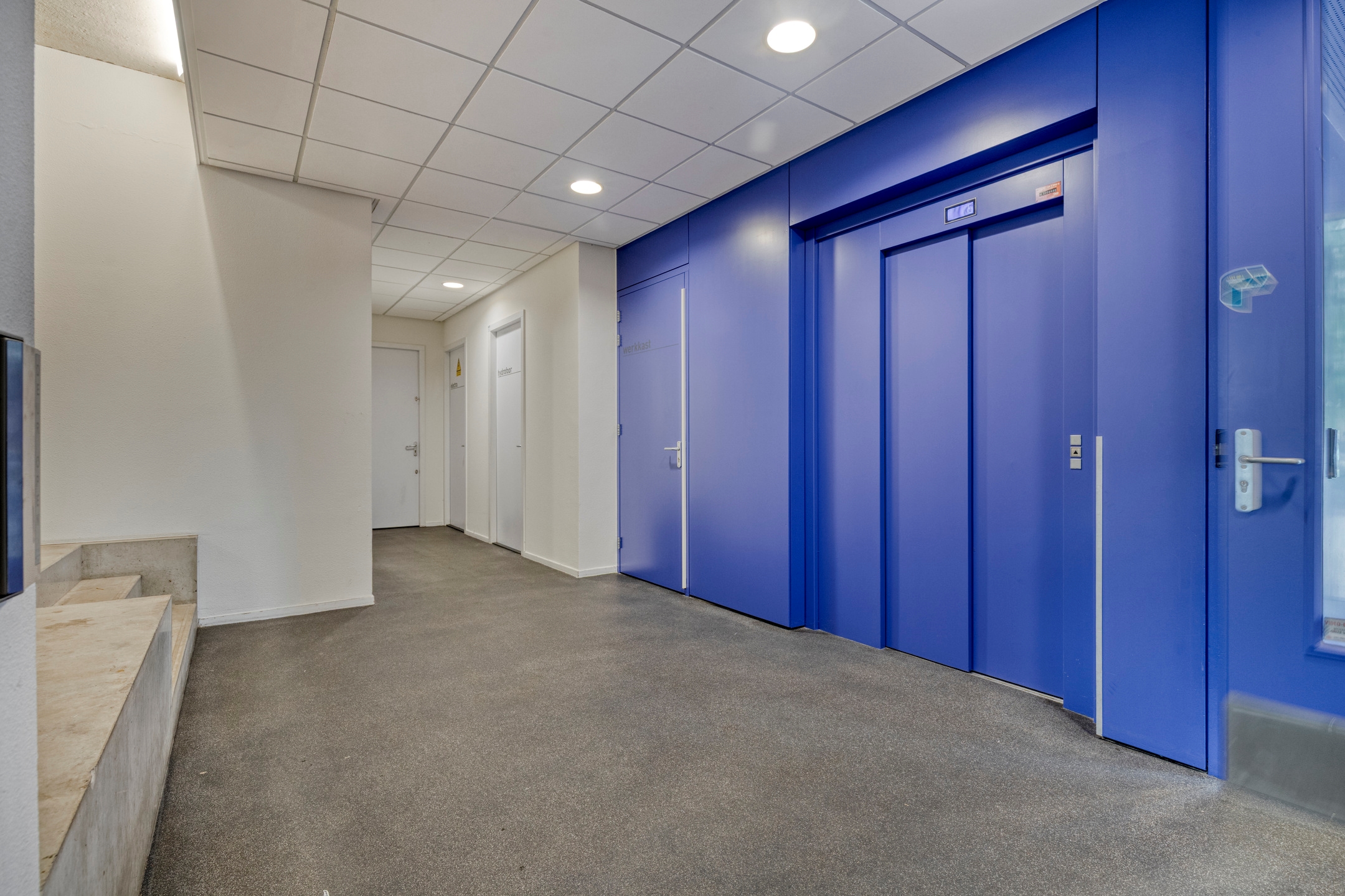 Centrale hal met een bellentableau en intercominstallatie, de brievenbussen, toegang tot de liften en het trappenhuis.