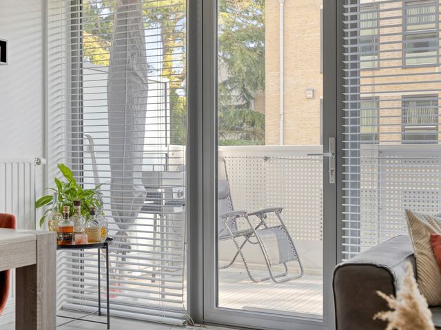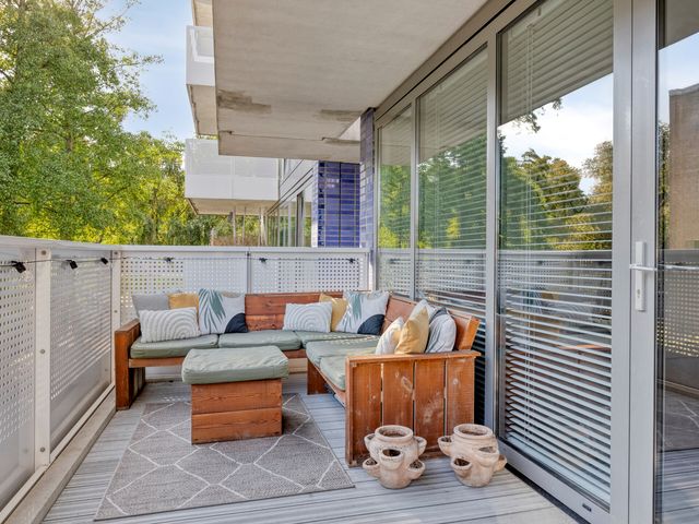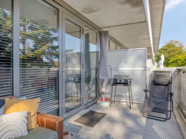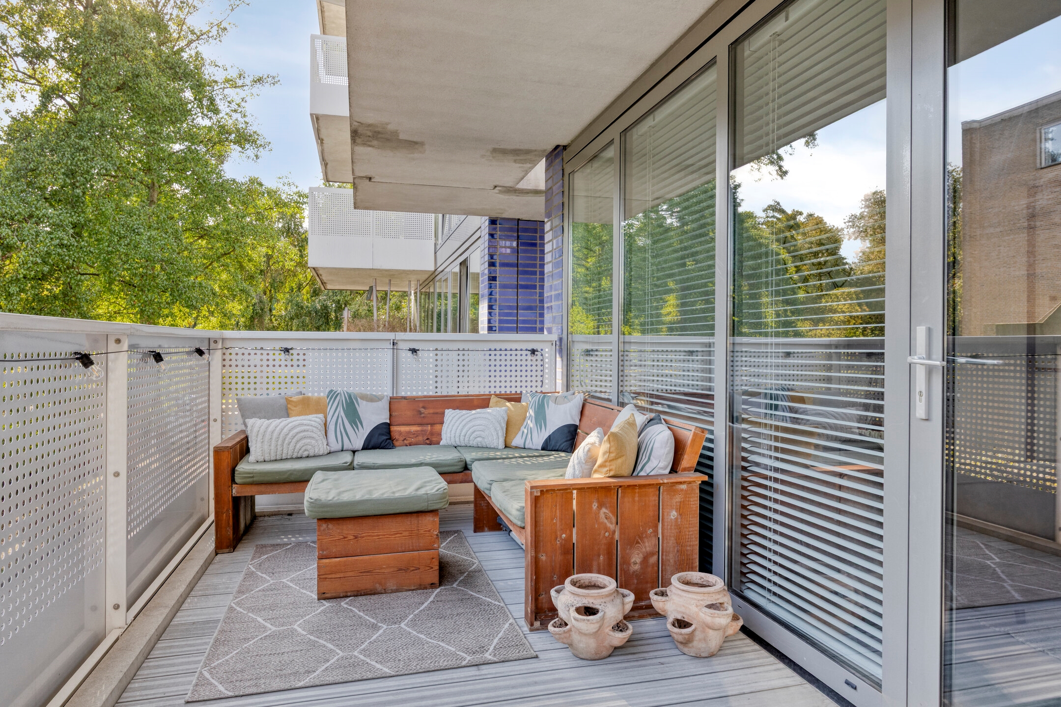 Vanuit de woonkamer is er toegang tot het ruime balkon dat is gelegen op het zonnige zuiden. Hier kun je echt ontspannen en genieten van de buitenlucht.