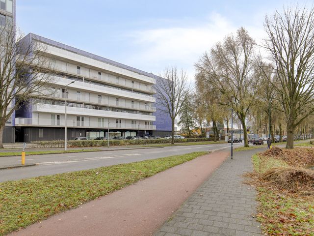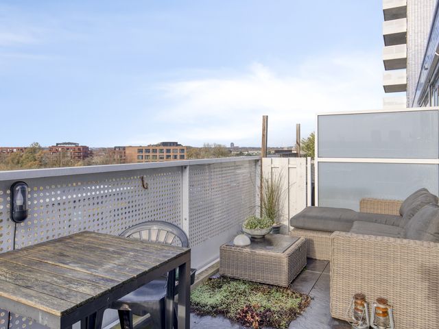 Dit 2-kamer hoekappartement op de 6e verdieping heeft alles: een lichte woonkamer, praktische keuken, fijne badkamer, ruime slaapkamer én een royaal balkon gelegen op het zuidwesten.