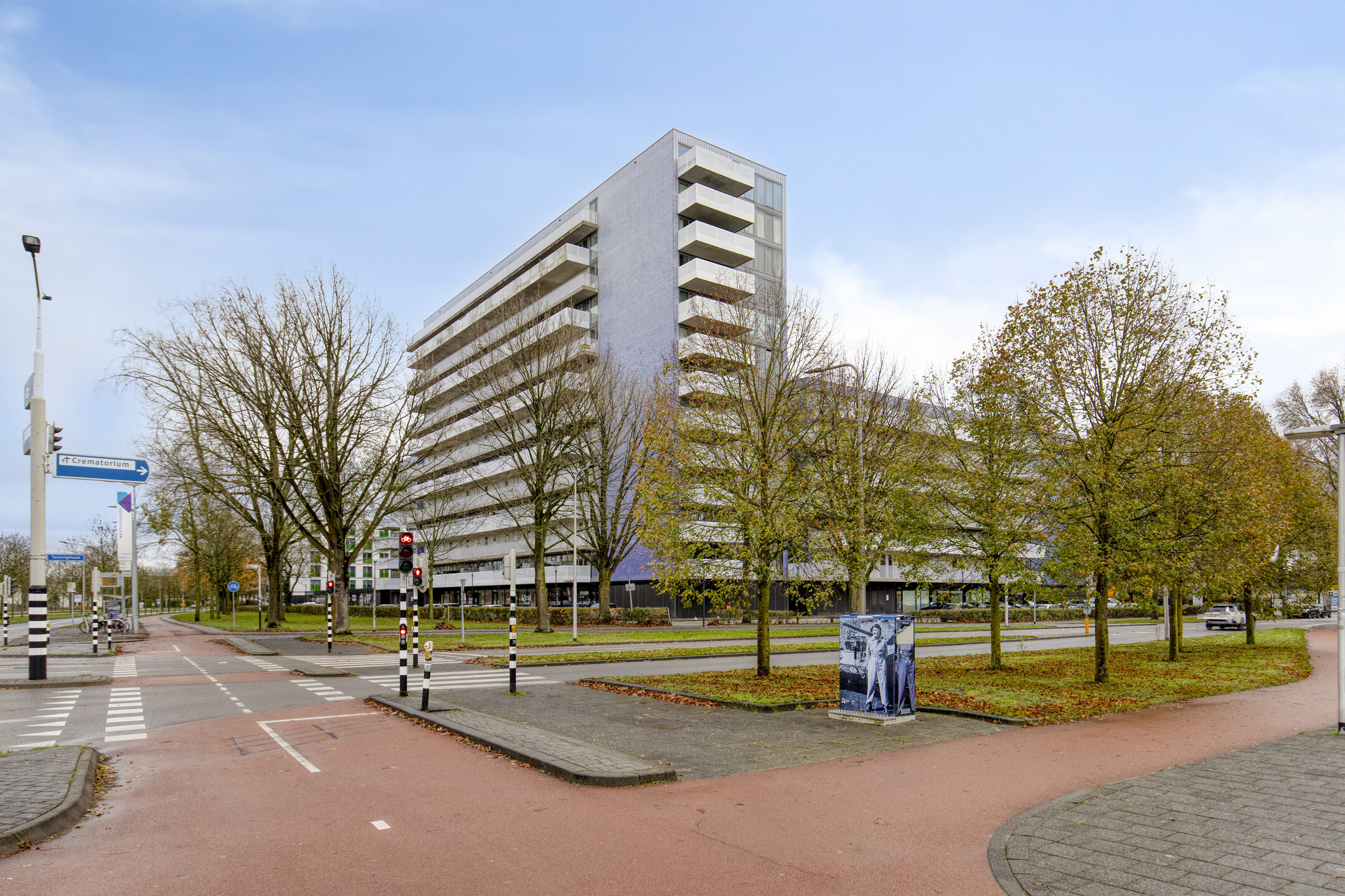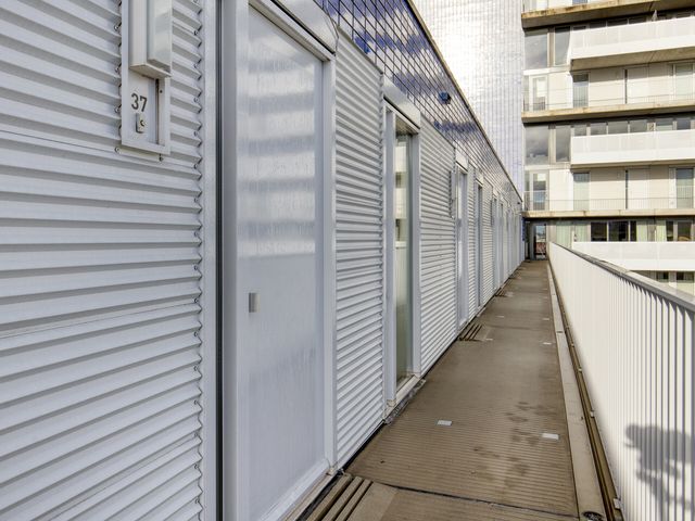 In de plint van het complex zijn commerciële ruimtes gelegen, ons eigen kantoor is hier op nr. 157 gehuisvest. En op het dak van de parkeergarage zijn loungeplekken gecreëerd.