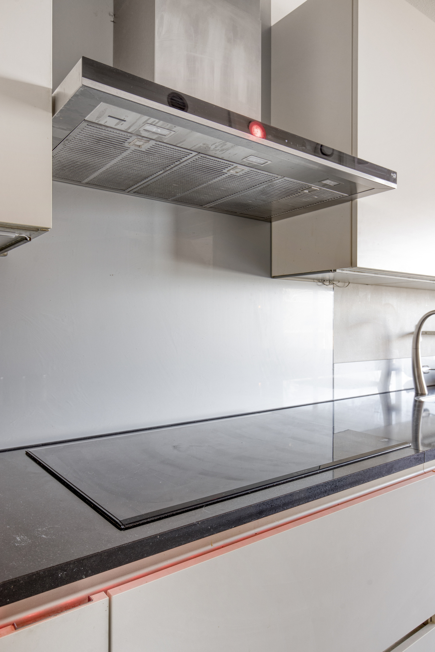 De Siematic open keuken beschikt over greeploze softclose onder-/bovenkasten en lades. Verder is de keuken voorzien van een een 90 cm flex zone inductiekookplaat met rvs afzuigkap (beiden voorzien van wifi) en een inbouwvriezer. Vanuit de keuken is de berging bereikbaar.
