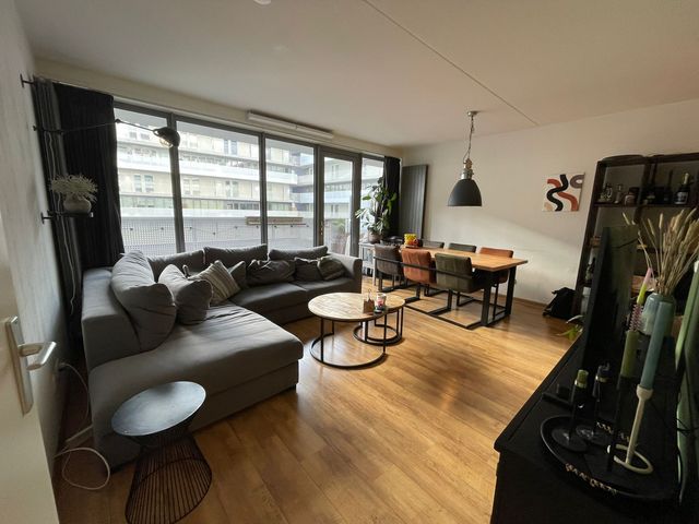 Vanuit de woonkamer is het ruime balkon te bereiken. Hier geniet je van een prachtig centrumgericht uitzicht.
