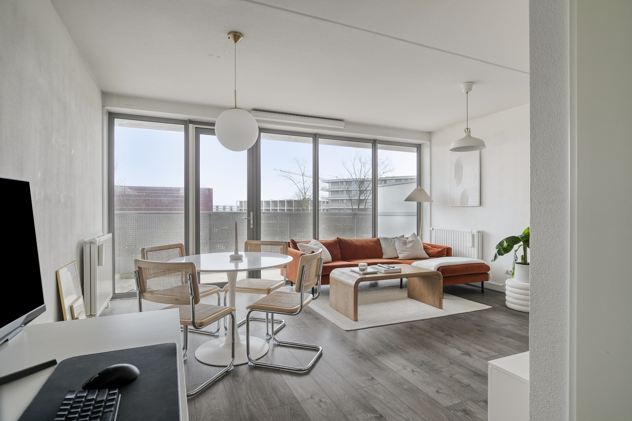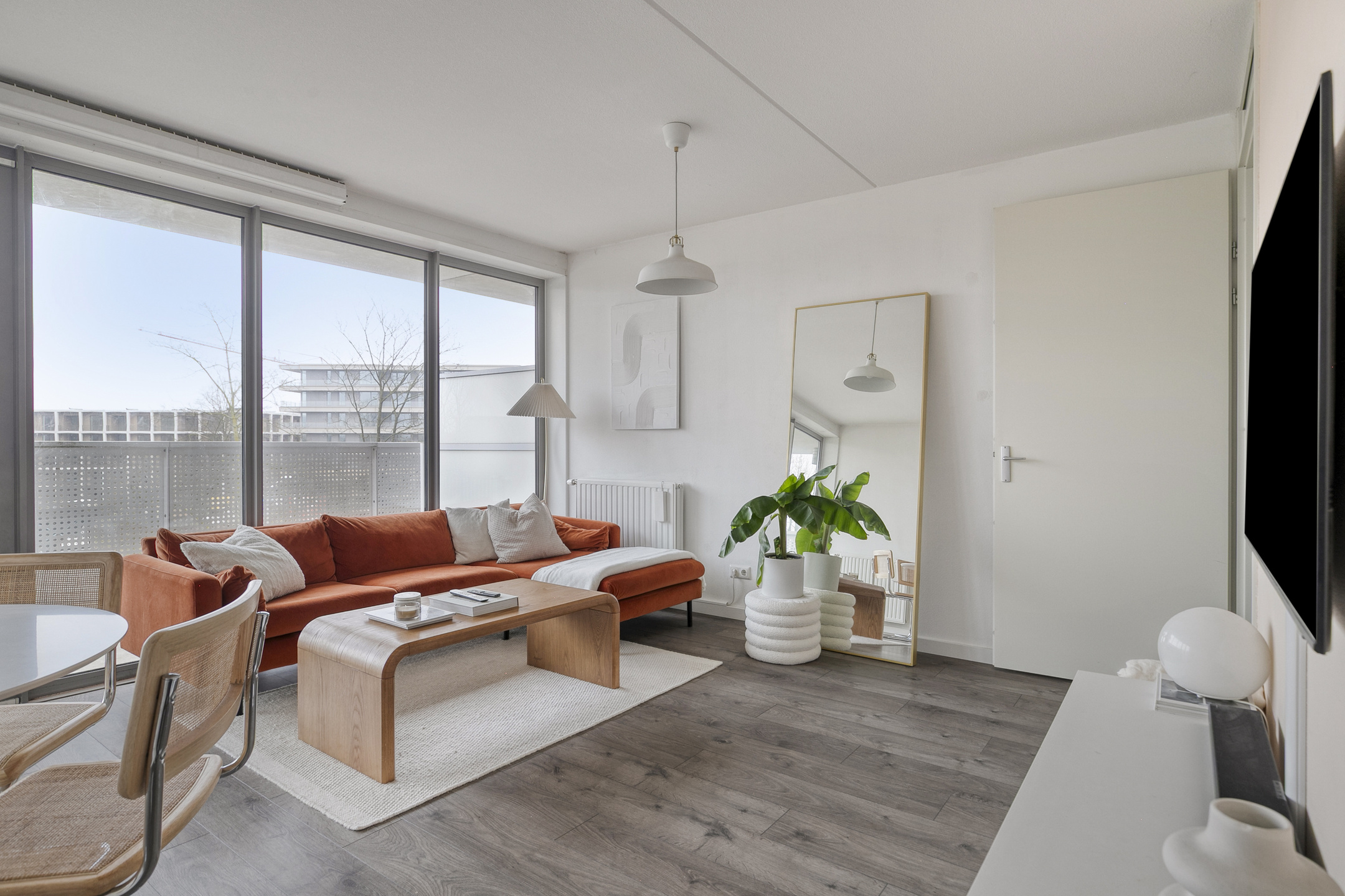 De grote raampartijen zorgen voor een aangename daglichttoetreding en geven de ruimte een open, uitnodigend karakter.