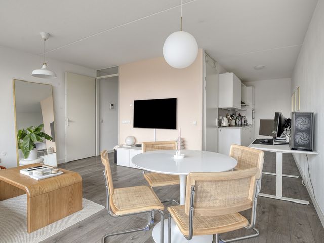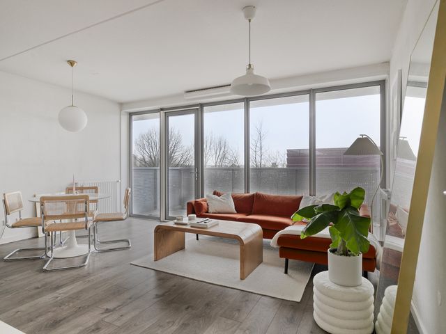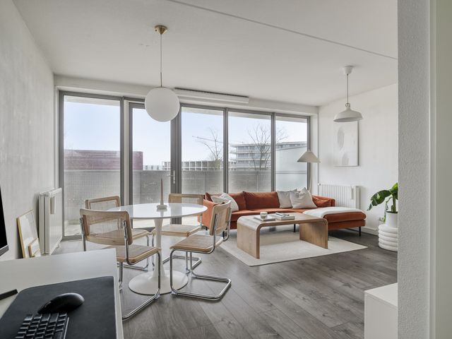 Dit moderne 2-kamer hoekappartement is gelegen op de tweede woonlaag. Het appartement beschikt over een eigen parkeerplek, open inbouwkeuken, badkamer en 1 slaapkamer.