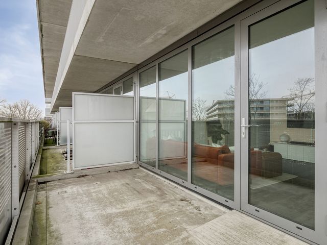 Vanuit de woonkamer is het ruime balkon te bereiken.