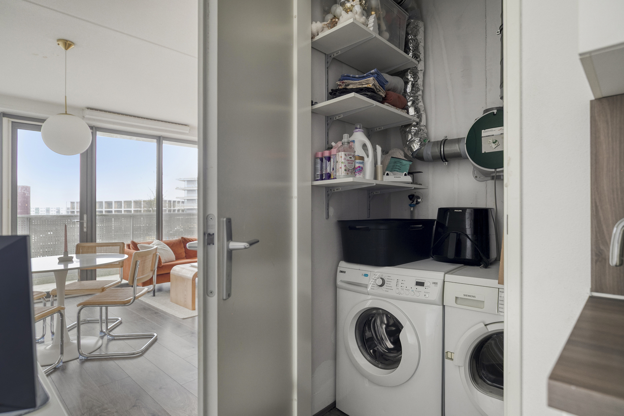 De verbinding met het balkon maakt dat binnen en buiten moeiteloos in elkaar overlopen.
