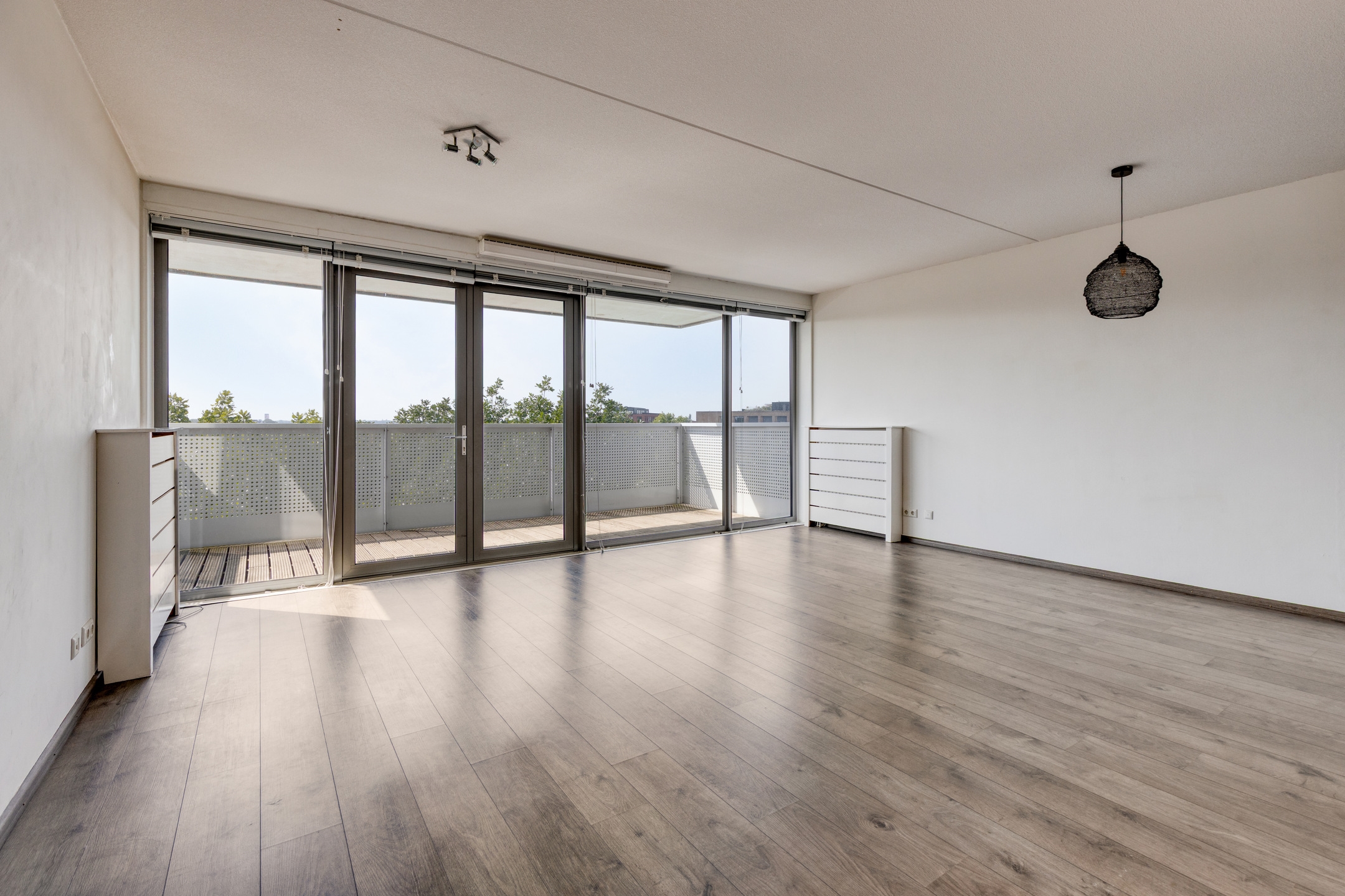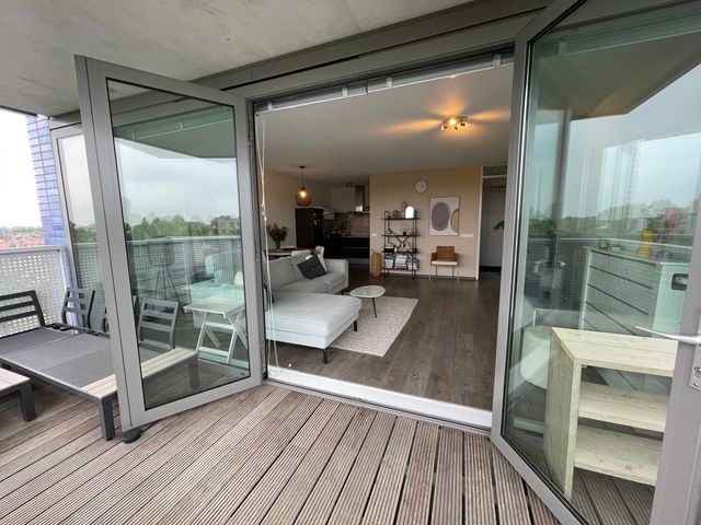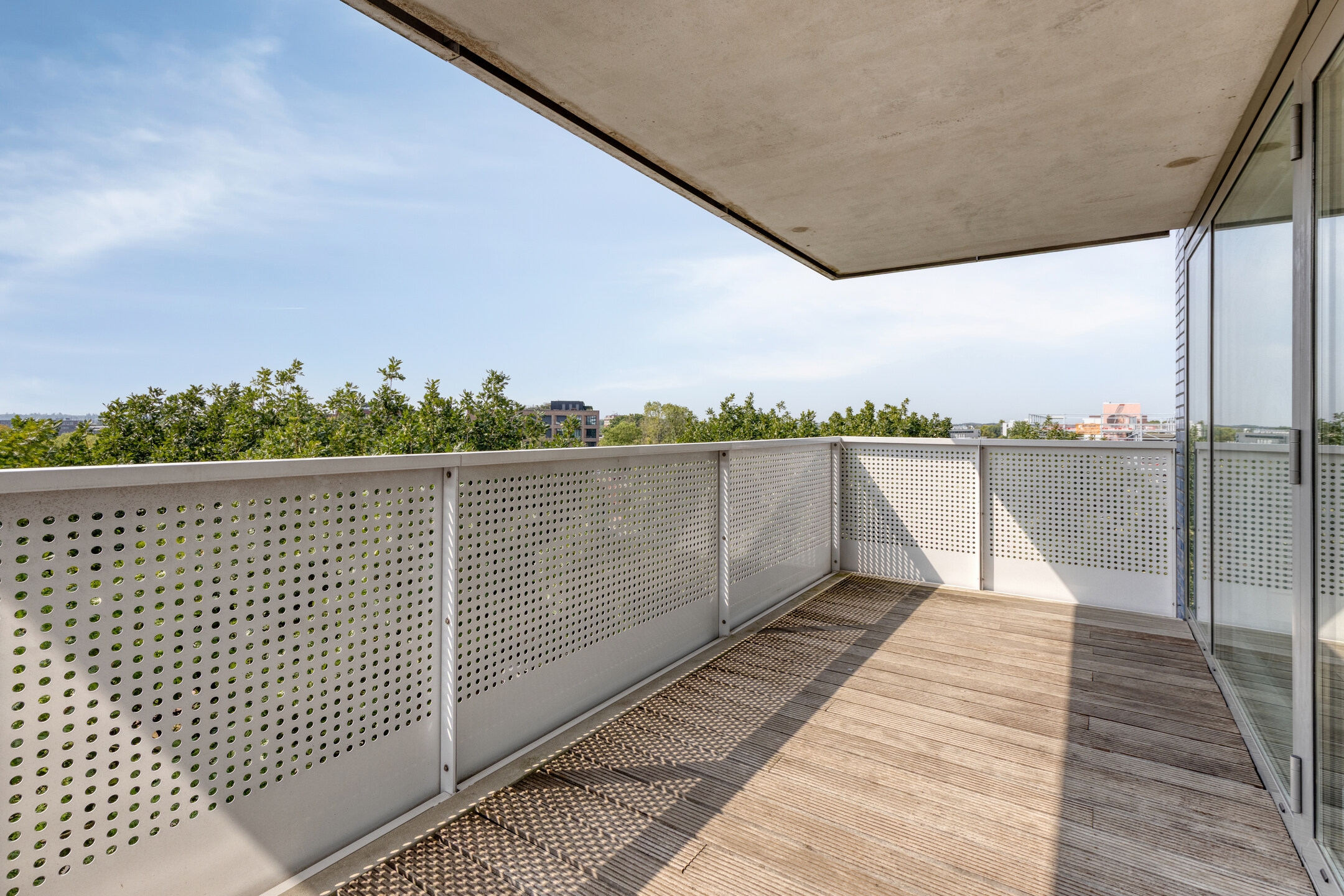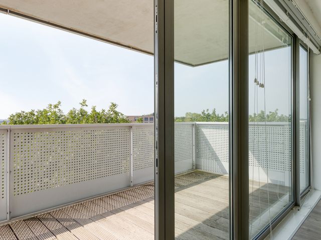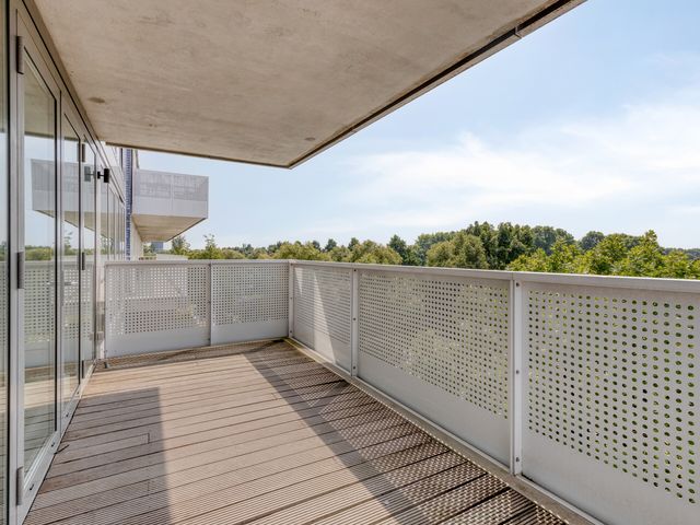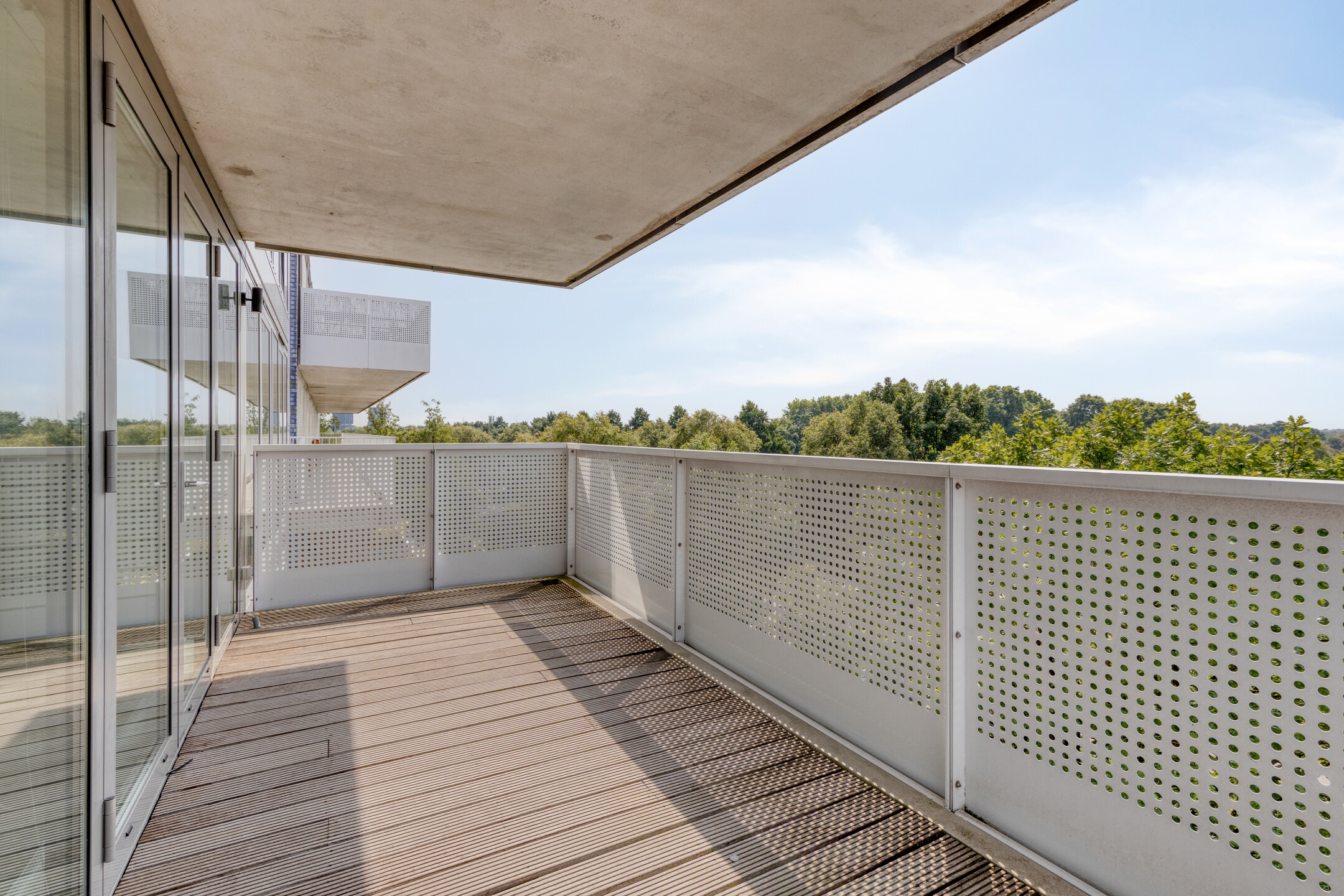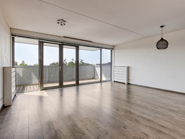 Vanuit de woonkamer is het ruime balkon te bereiken. Hier geniet je van een prachtig uitzicht over Breda. Er is voldoende ruimte voor het plaatsen van een loungehoek, zithoek en/of leuk zitje.