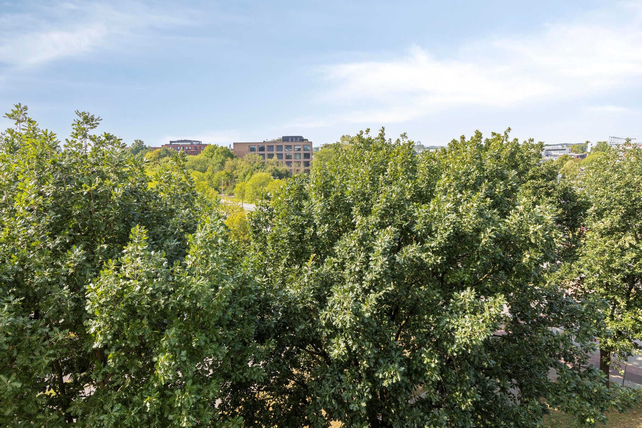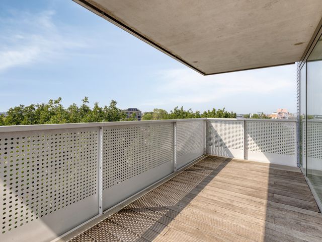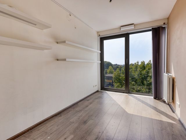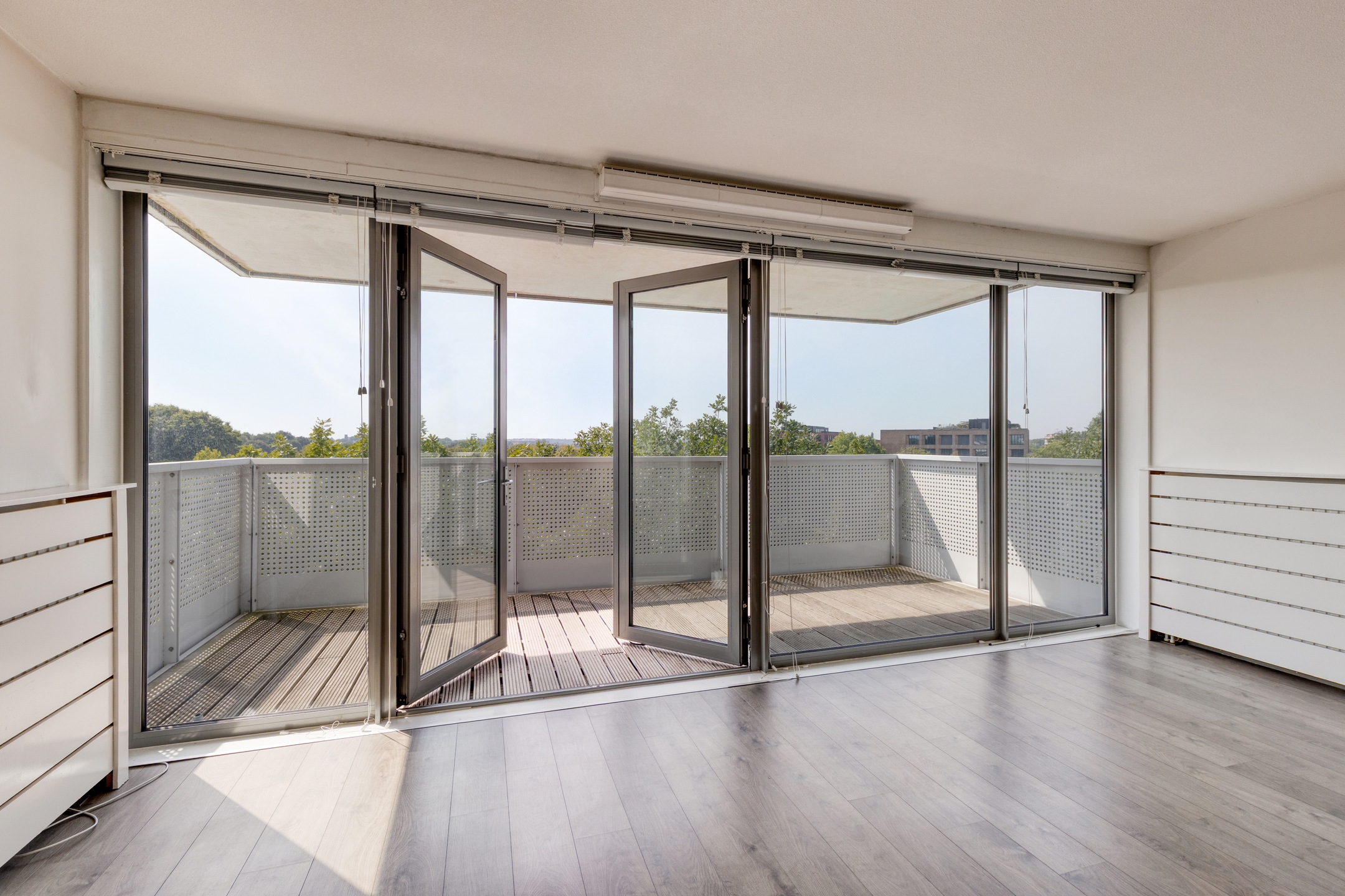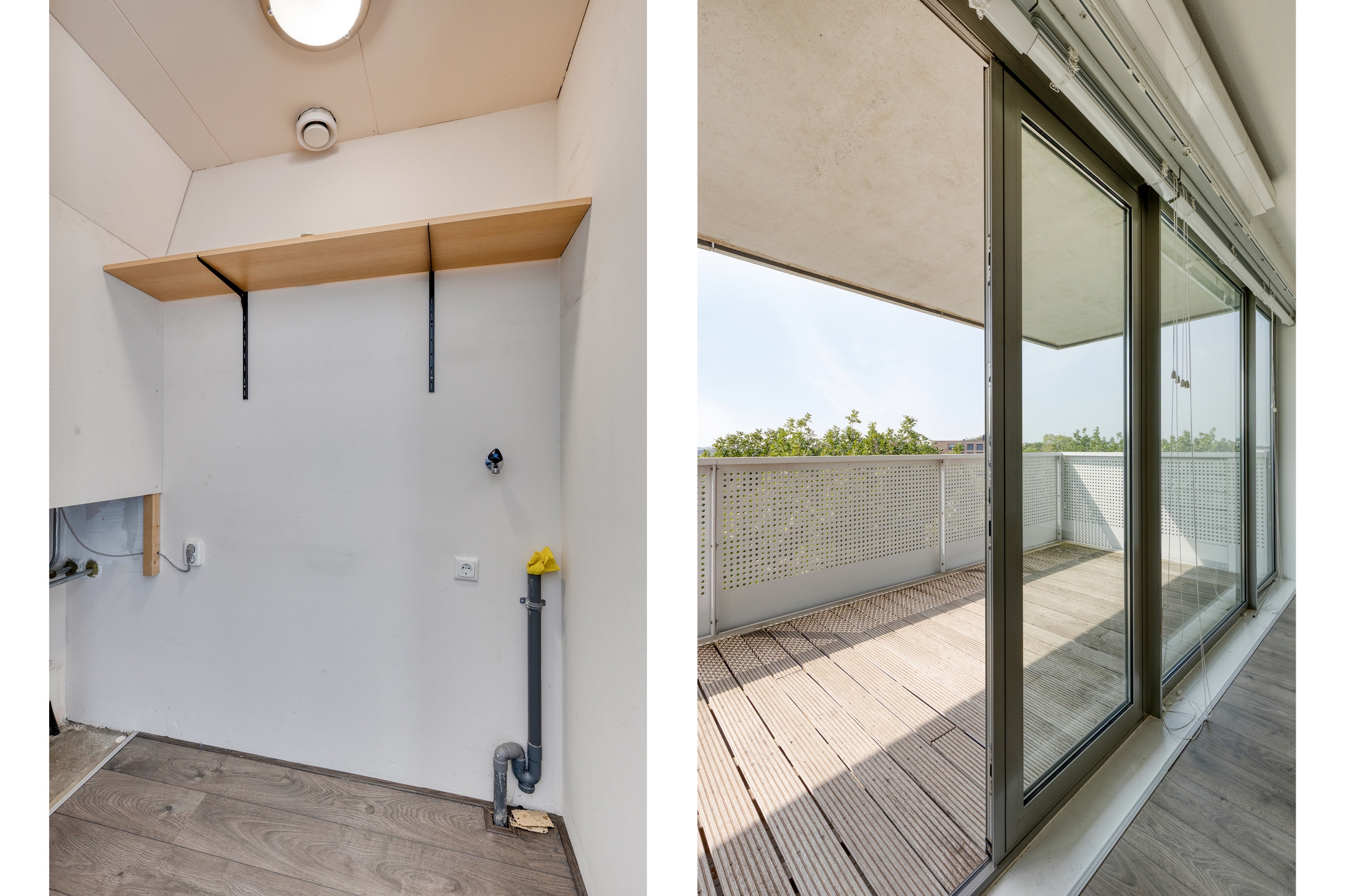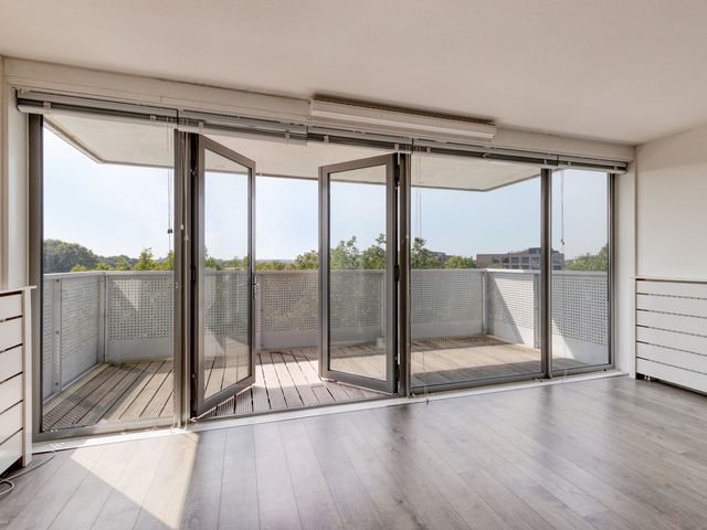Vanuit de woonkamer is het ruime balkon te bereiken. Hier geniet je van een prachtig uitzicht over Breda. Er is voldoende ruimte voor het plaatsen van een loungehoek, zithoek en/of leuk zitje.