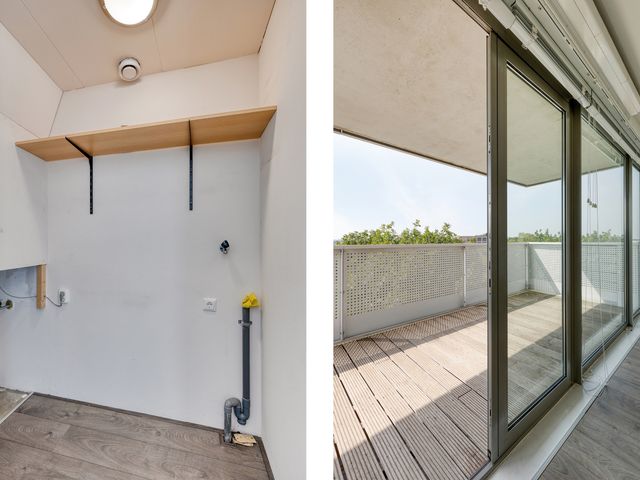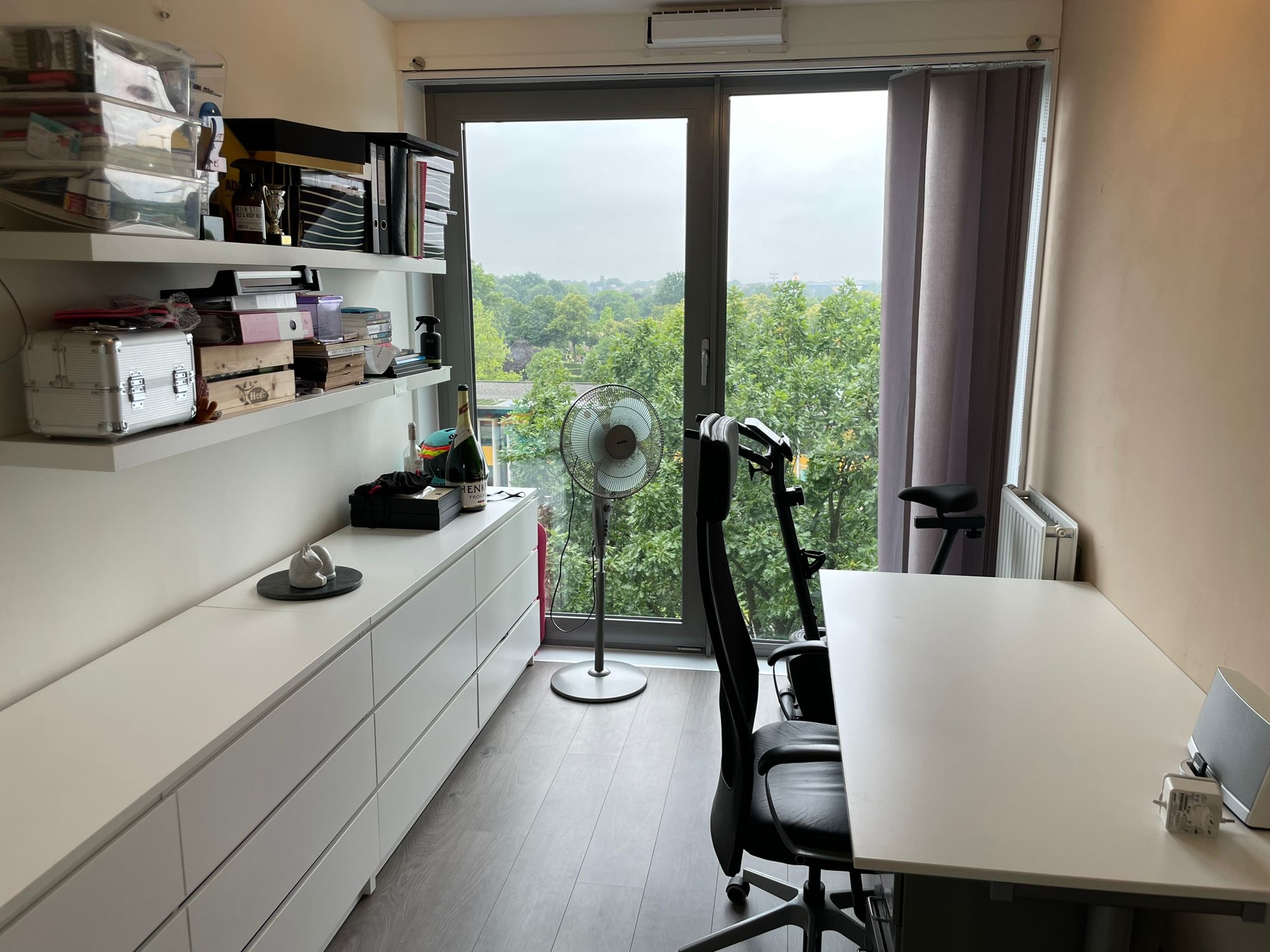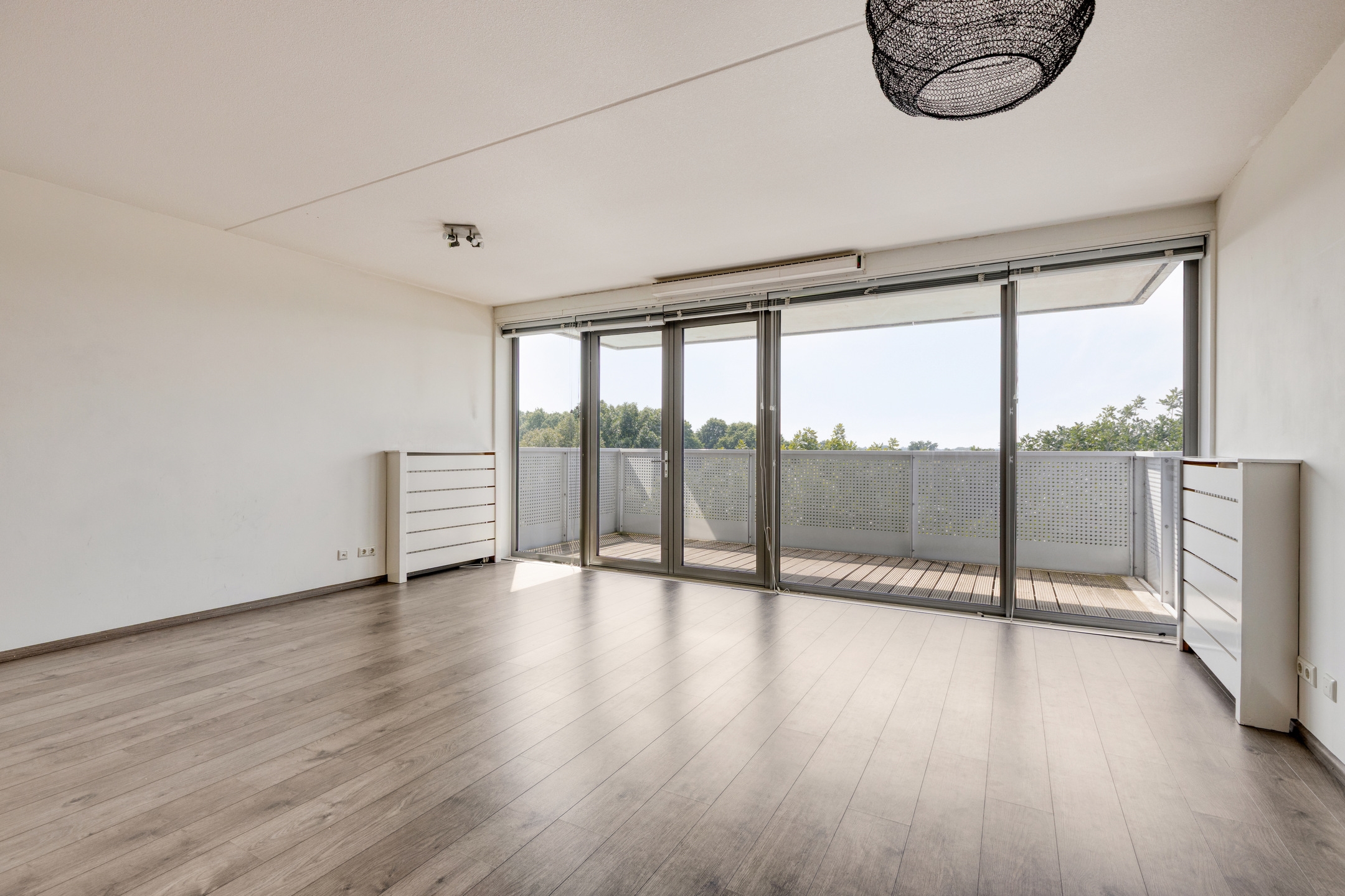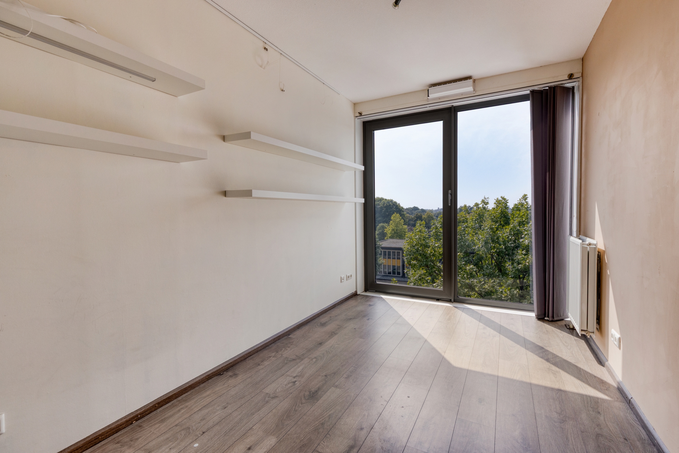 Vanuit de woonkamer is het ruime balkon te bereiken. Hier geniet je van een prachtig uitzicht over Breda. Er is voldoende ruimte voor het plaatsen van een loungehoek, zithoek en/of leuk zitje.