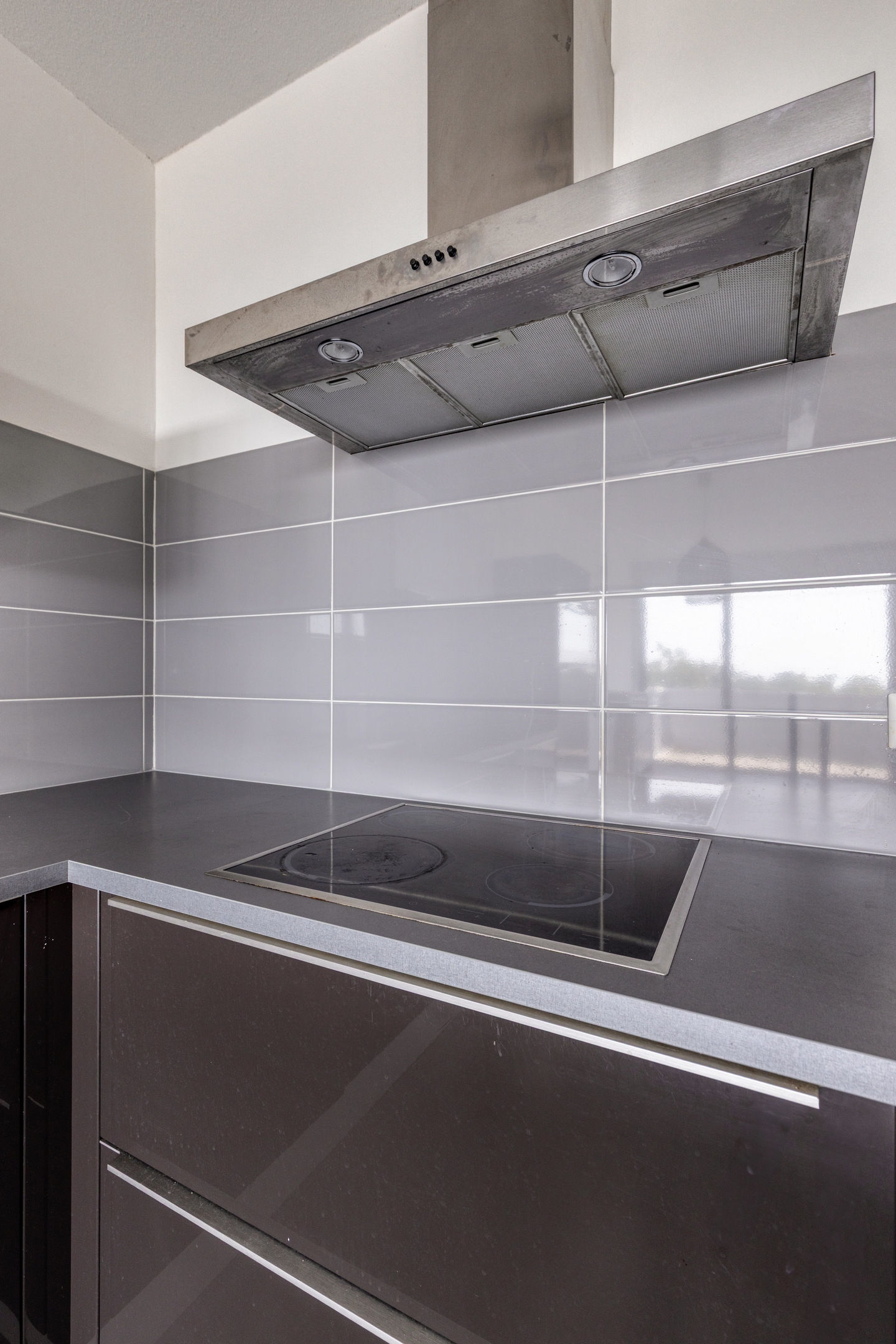 De open keuken is voorzien van diverse onder- en bovenkasten en is uitgerust met de volgende inbouwapparatuur; 4-pits keramische kookplaat, afzuigkap, koelkast, combi-magnetron en vaatwasser. Vanuit de keuken is er toegang tot een bergkast.