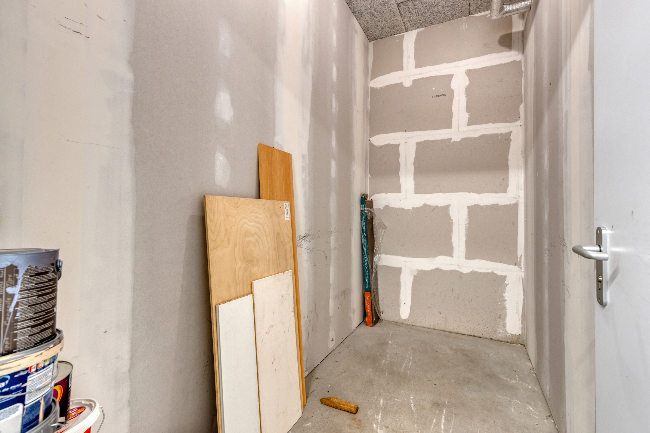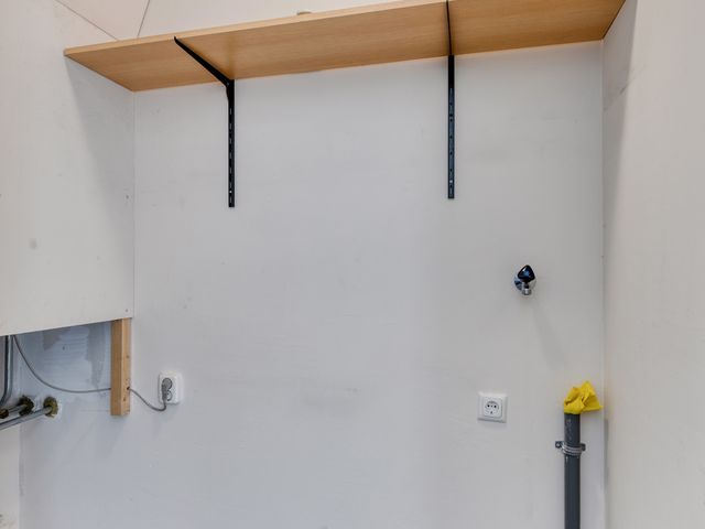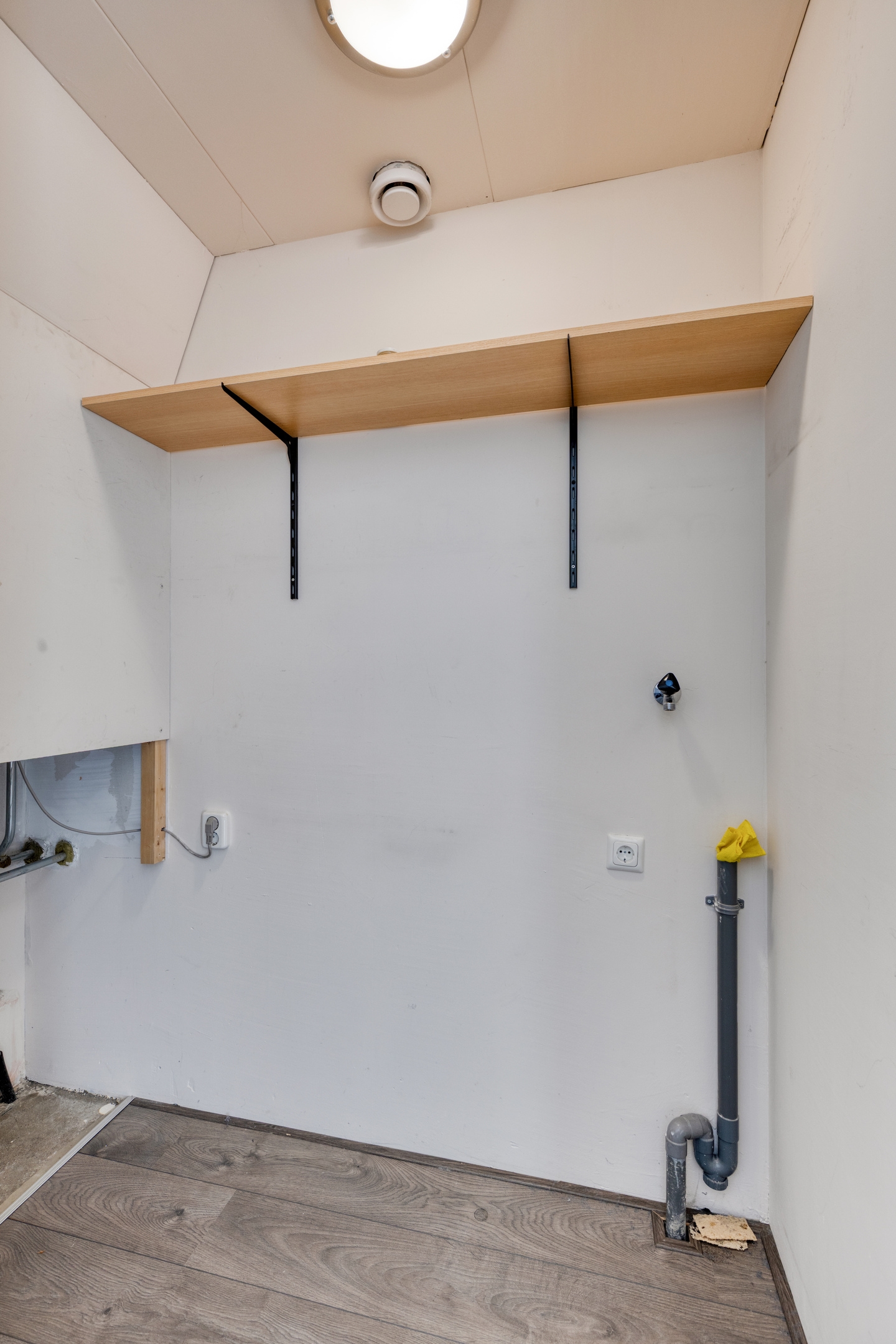 Vanuit de keuken is er toegang tot de berging. In de berging is de aansluiting voor een wasmachine en droger voorzien en de unit voor de warmtewisselaar en een mechanische ventilatie-unit zijn in deze ruimte geplaatst.