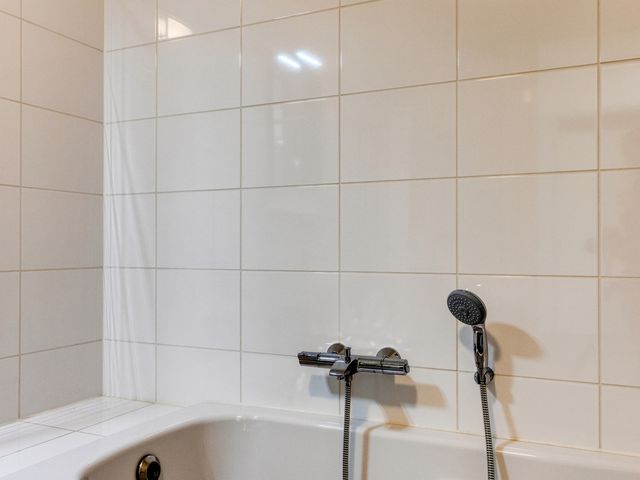 De luxe badkamer is van alle gemakken voorzien zoals een ligbad, ruime inloopdouche, een wastafel en designradiator. De badkamer is geheel betegeld.