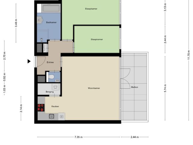 De gebruikte meetinstructie volgt de NEN2580-norm. Deze methode biedt een uniforme manier om het gebruiksoppervlak te benaderen. Door variaties in interpretatie, afronding of meetbeperkingen kunnen er toch afwijkingen ontstaan. De feitelijke situatie in het huis is leidend. De verstrekte oppervlakte-informatie is indicatief en mag niet als exact worden beschouwd. “Wat je ziet is wat je koopt” blijft het uitgangspunt.