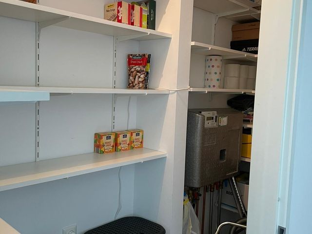 Vanuit de keuken is er toegang tot de bijkeuken/berging. In de bijkeuken/berging is de aansluiting voor een wasmachine en droger, de warmte terugwin installatie is eveneens in deze ruimte geplaatst.