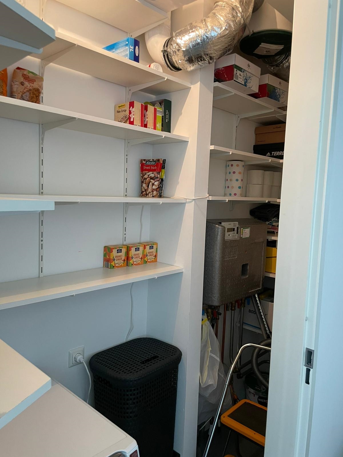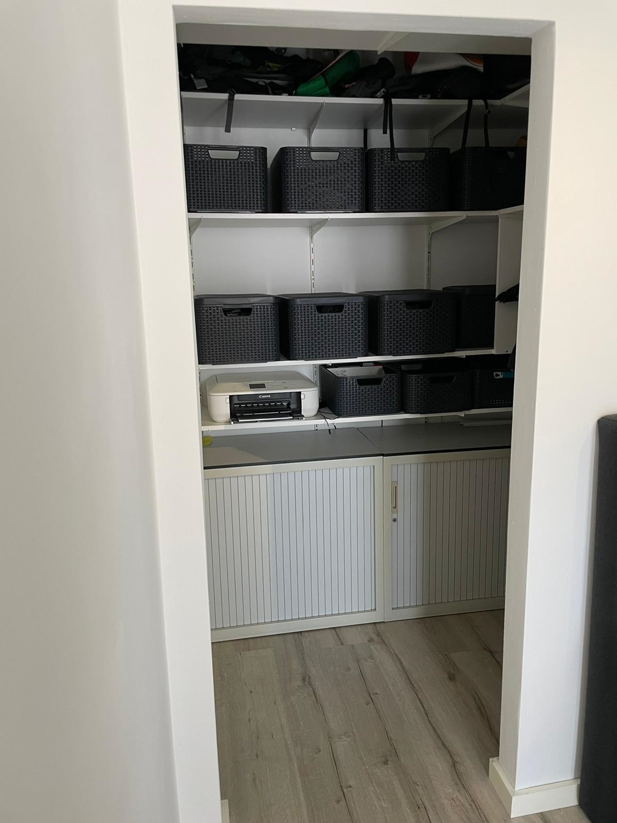 Vanuit de keuken is er toegang tot de bijkeuken/berging. In de bijkeuken/berging is de aansluiting voor een wasmachine en droger, de warmte terugwin installatie is eveneens in deze ruimte geplaatst.