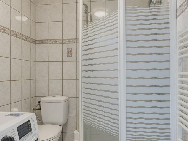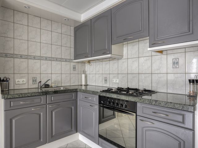 De unieke woonunit heeft een woonkamer met openslaande tuindeuren in de zijgevel en staat in open verbinding met de L-vormige inbouwkeuken en de eethoek. De inbouwkeuken (2) heeft o.a. granieten aanrechtbladen. Van uit de open keuken is de tussengang (2) toegankelijk. Aansluitend komt u in badkamer 2 en een slaapkamer. Badkamer (2) is een degelijke badkamer met o.a. een designradiator, een wasmachine-aansluiting, een toilet, een douchecabine en mechanische ventilatie.