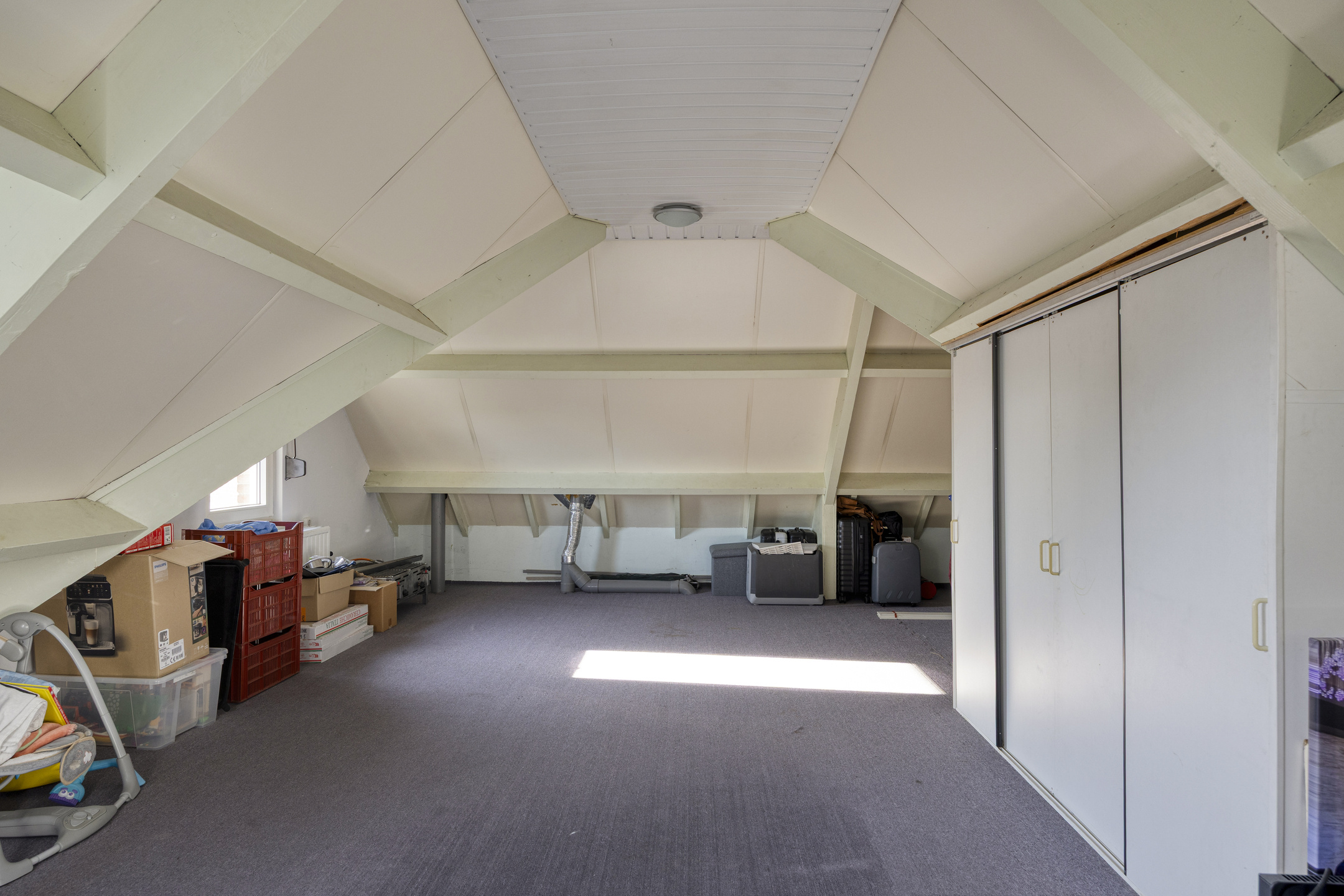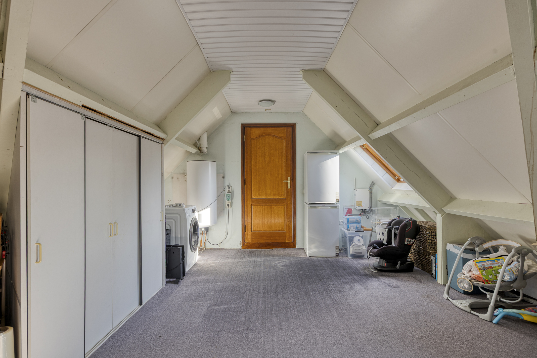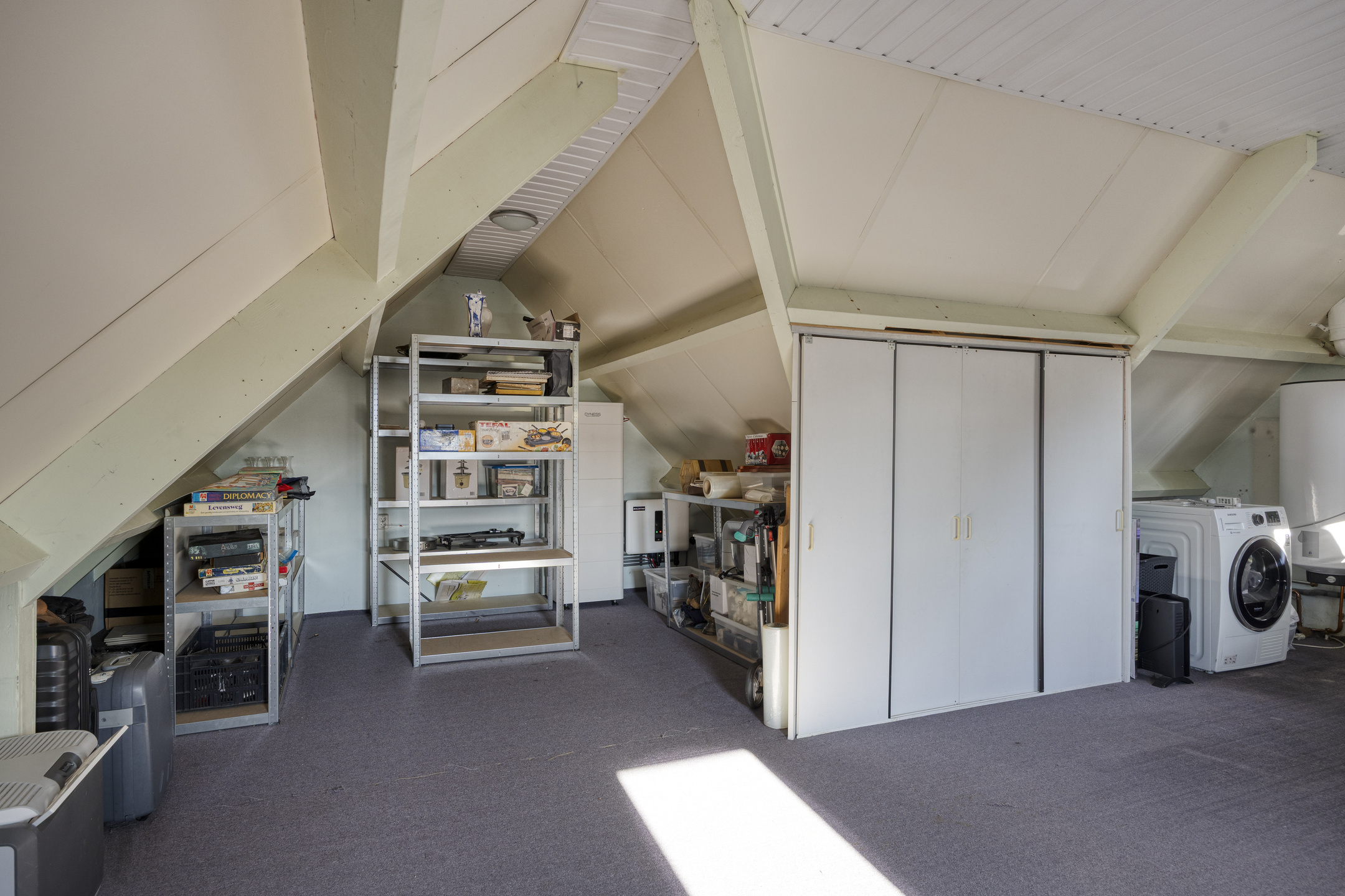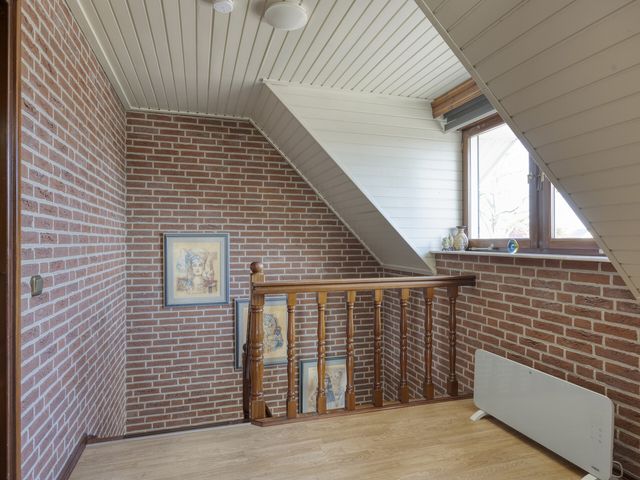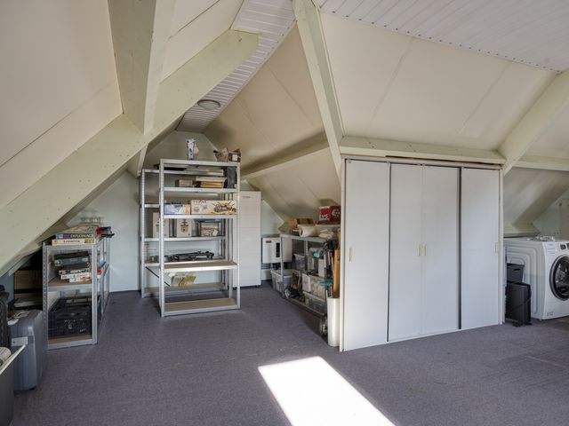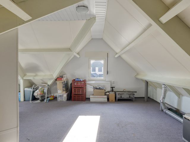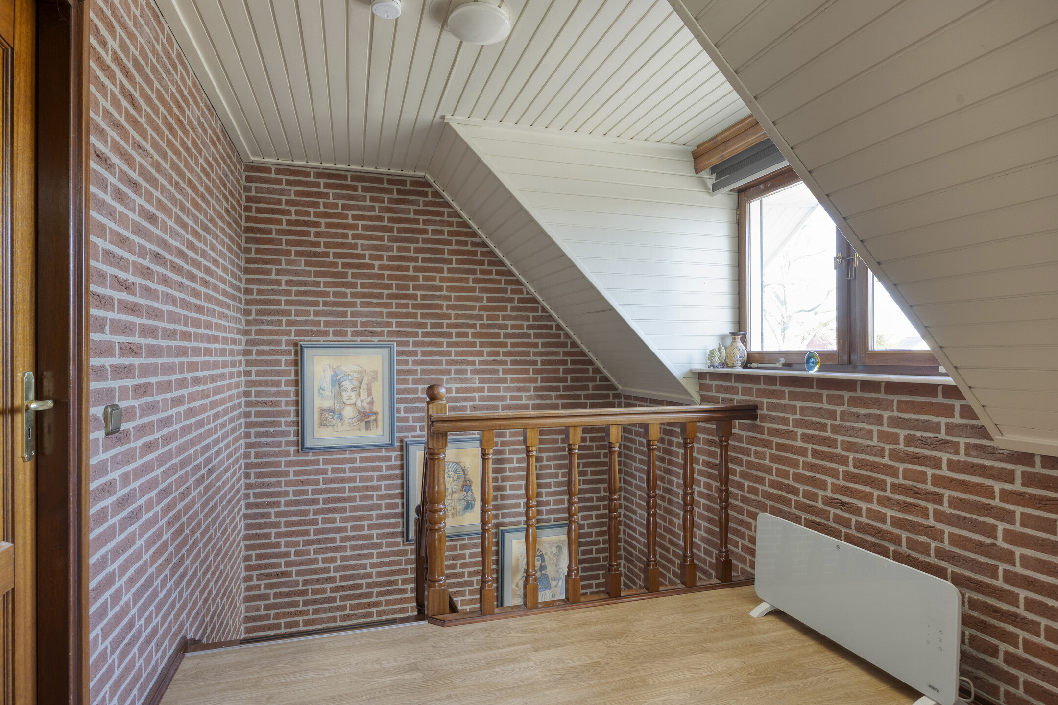 Via de bordestrap in de hal kom je op de overloop van de 1e verdieping (betonvloer). Deze overloop heeft een hard houten dakkapel en biedt de mogelijkheid om een extra werkplek te creëren. Via de overloop zijn de 2 royale slaapkamers te bereiken.