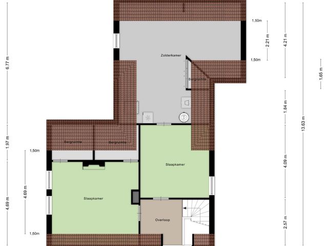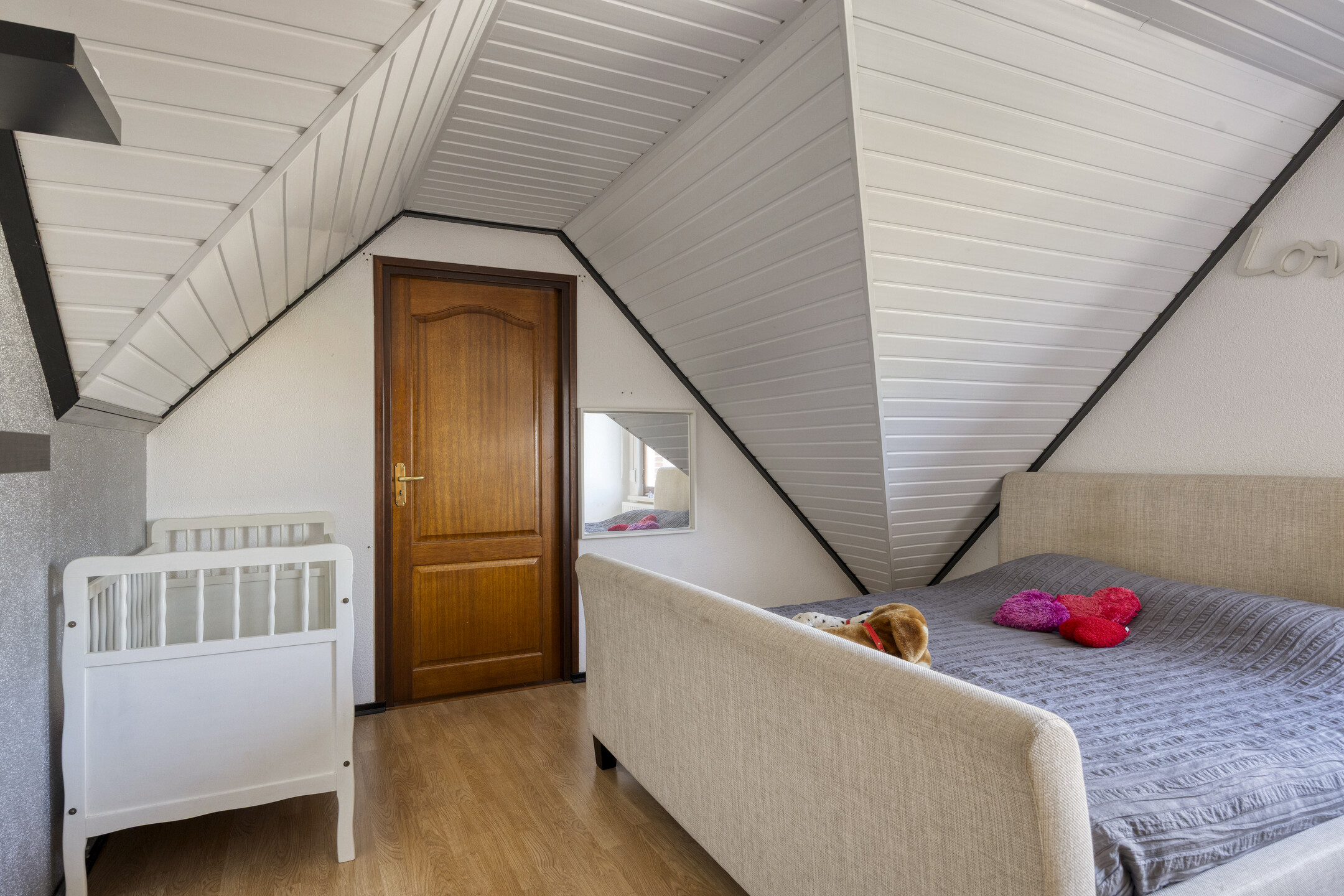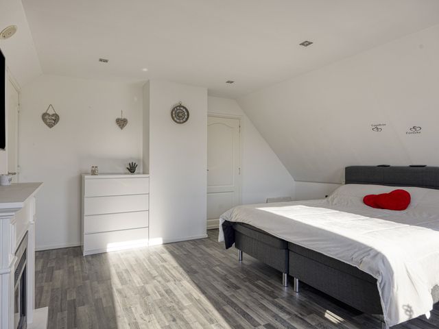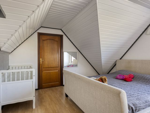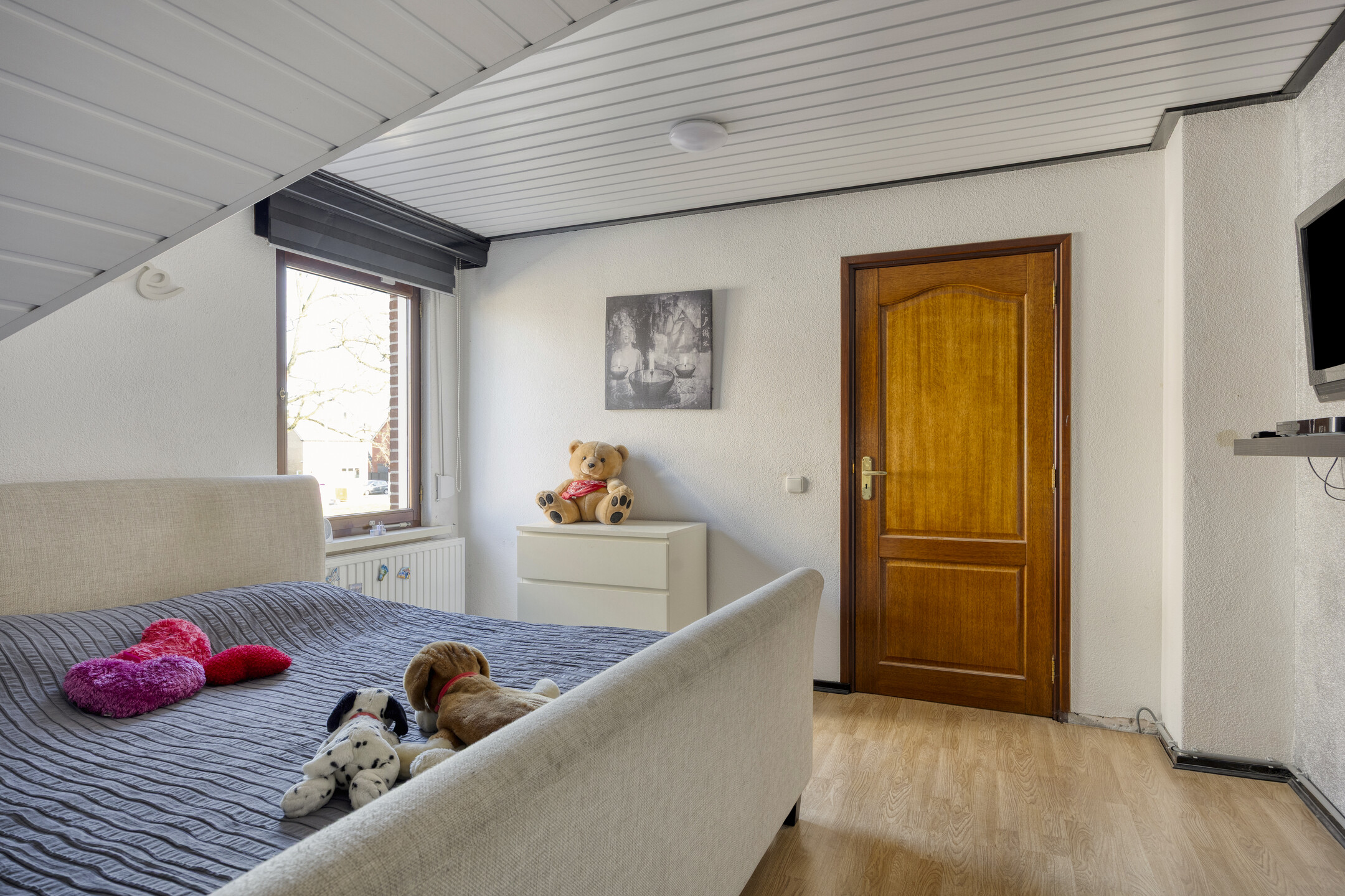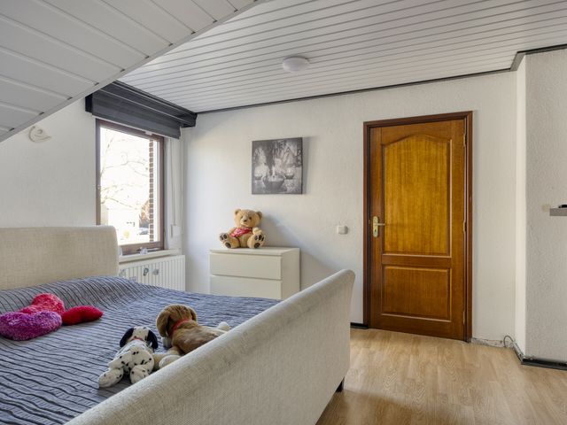 Slaapkamer 2, ligt aan de zijgevel met 2 ramen en inbouwkasten. Slaapkamer 3, ligt eveneens aan een zijgevel en heeft een verbindingsdeur naar een multifunctionele L-vormige kamer met 2 ramen, een praktische schuifkastenwand, een wasmachine-aansluiting, een boiler, de omvormer en een vrije hoogte van ca. 2.45 m. Van de verrassende L-vormige kamer kunt u de perfecte hobby/sport annex werkruimte van maken.