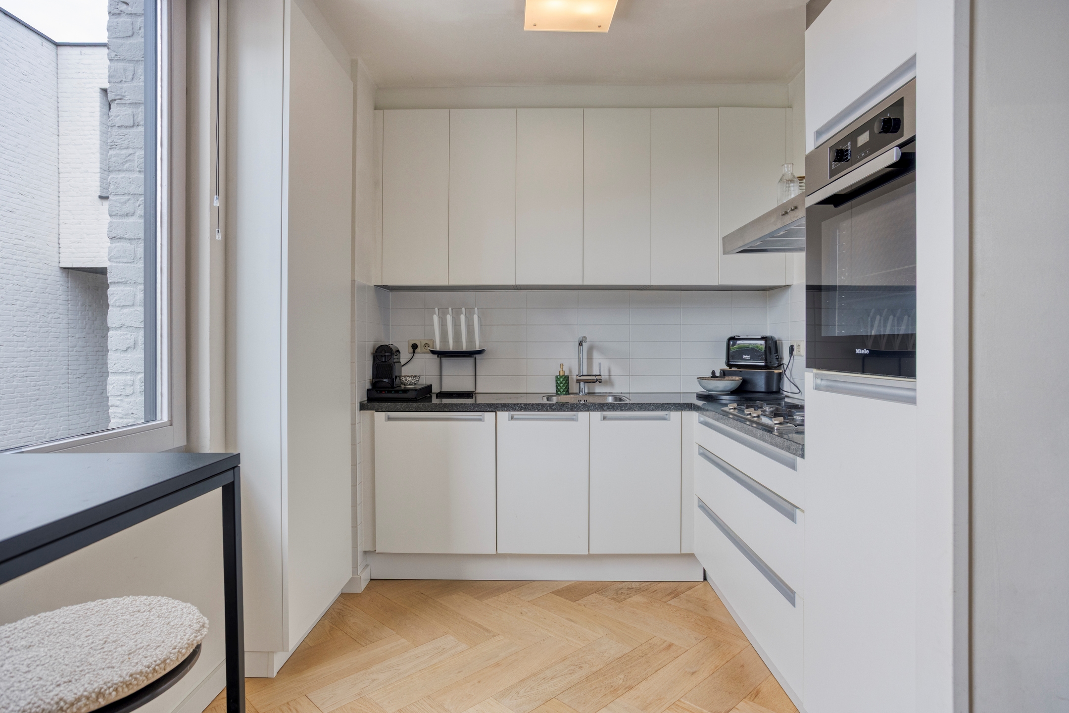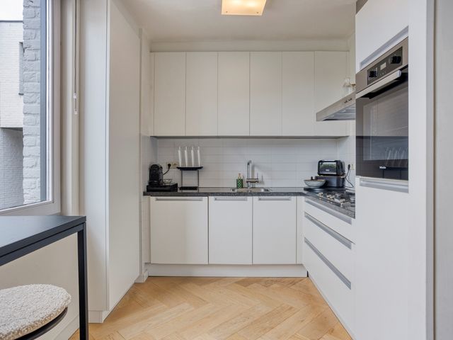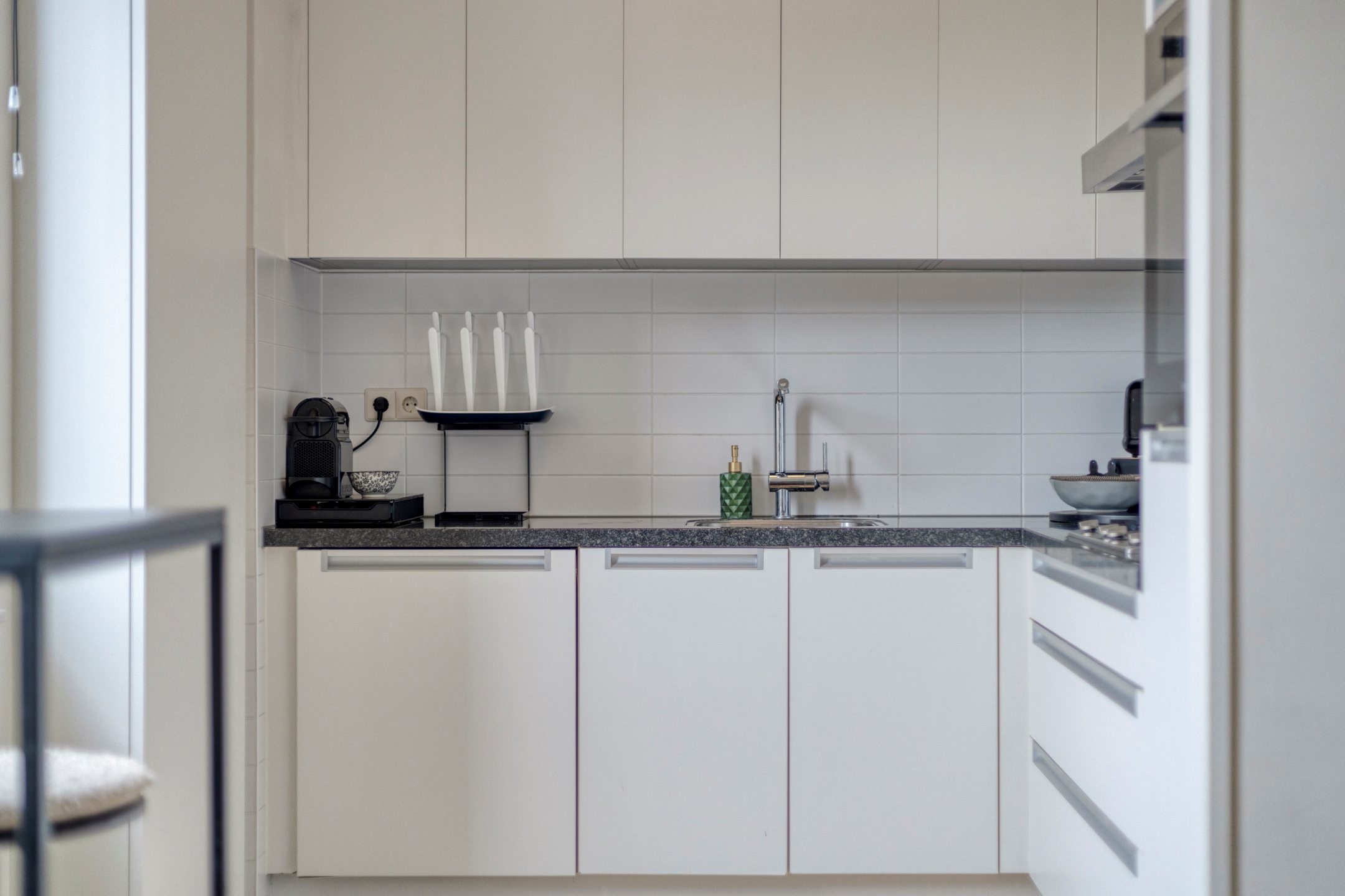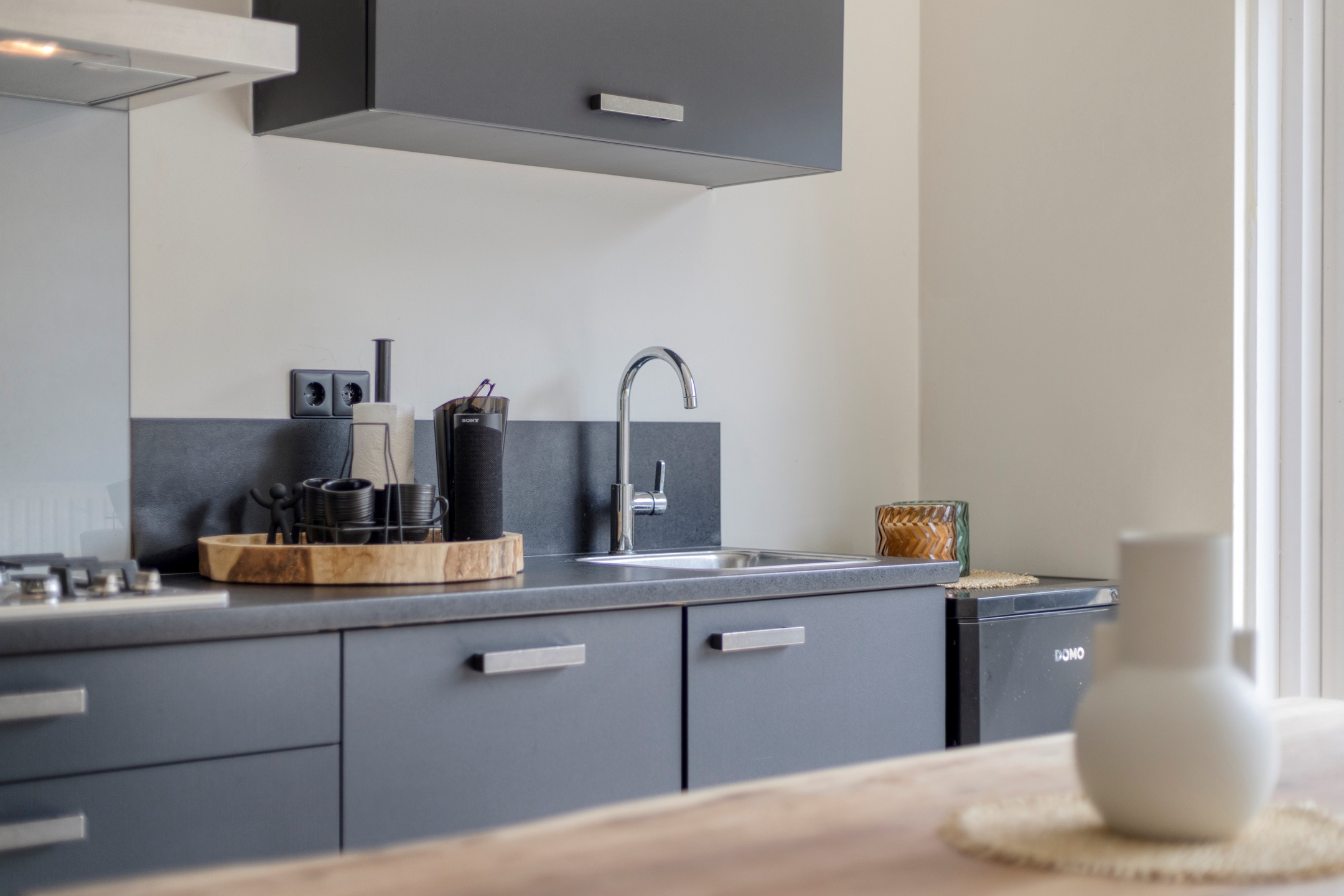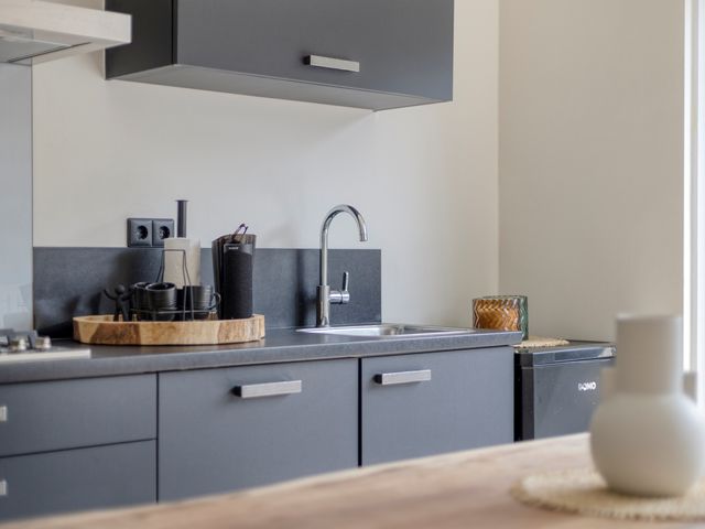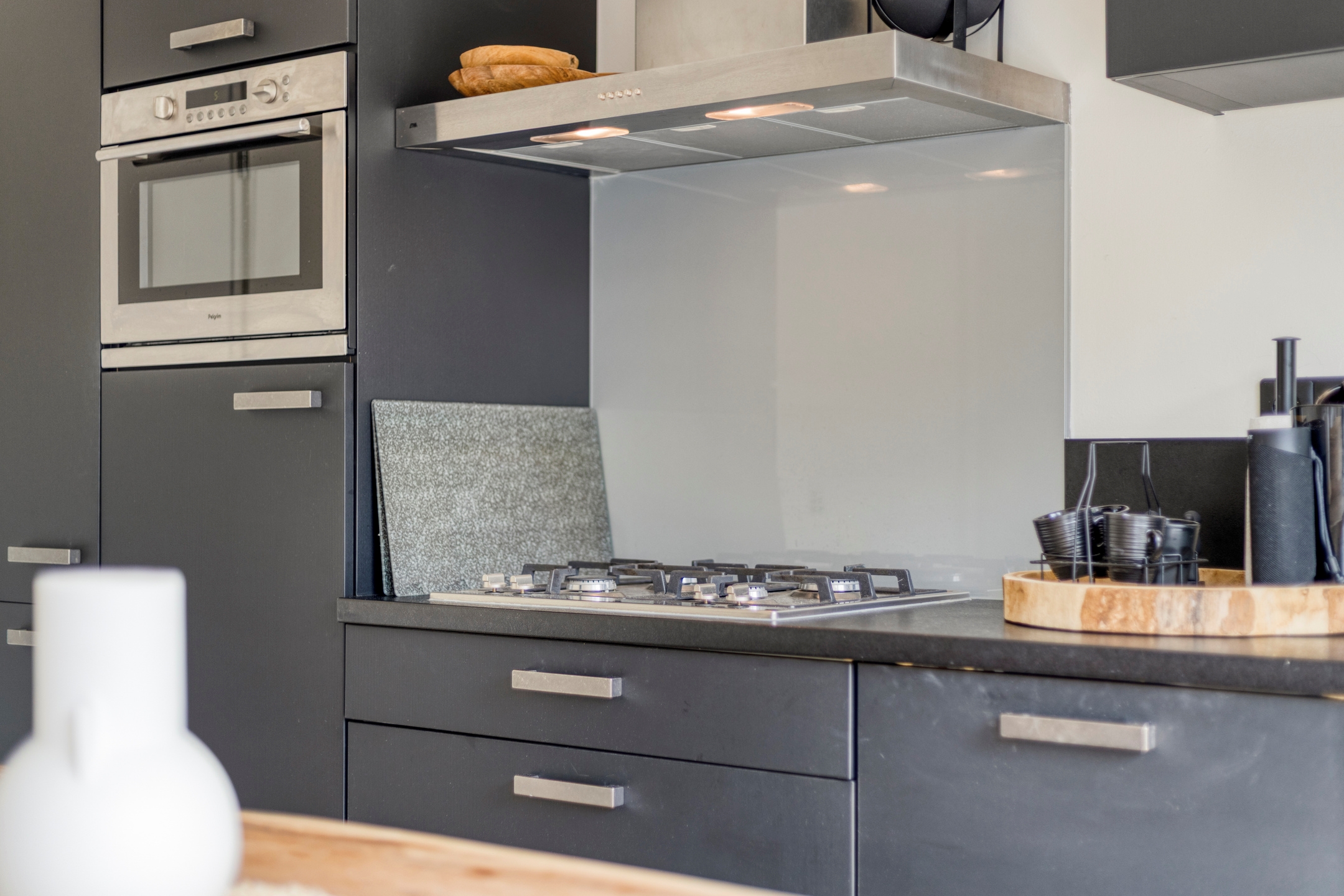 De ruime en compleet ingerichte woonkeuken is voorzien van diverse onder- en bovenkasten en is uitgerust met een 4-pits gasfornuis, rvs afzuigkap, koelkast, vriezer, combi oven en vaatwasser.