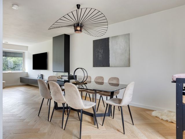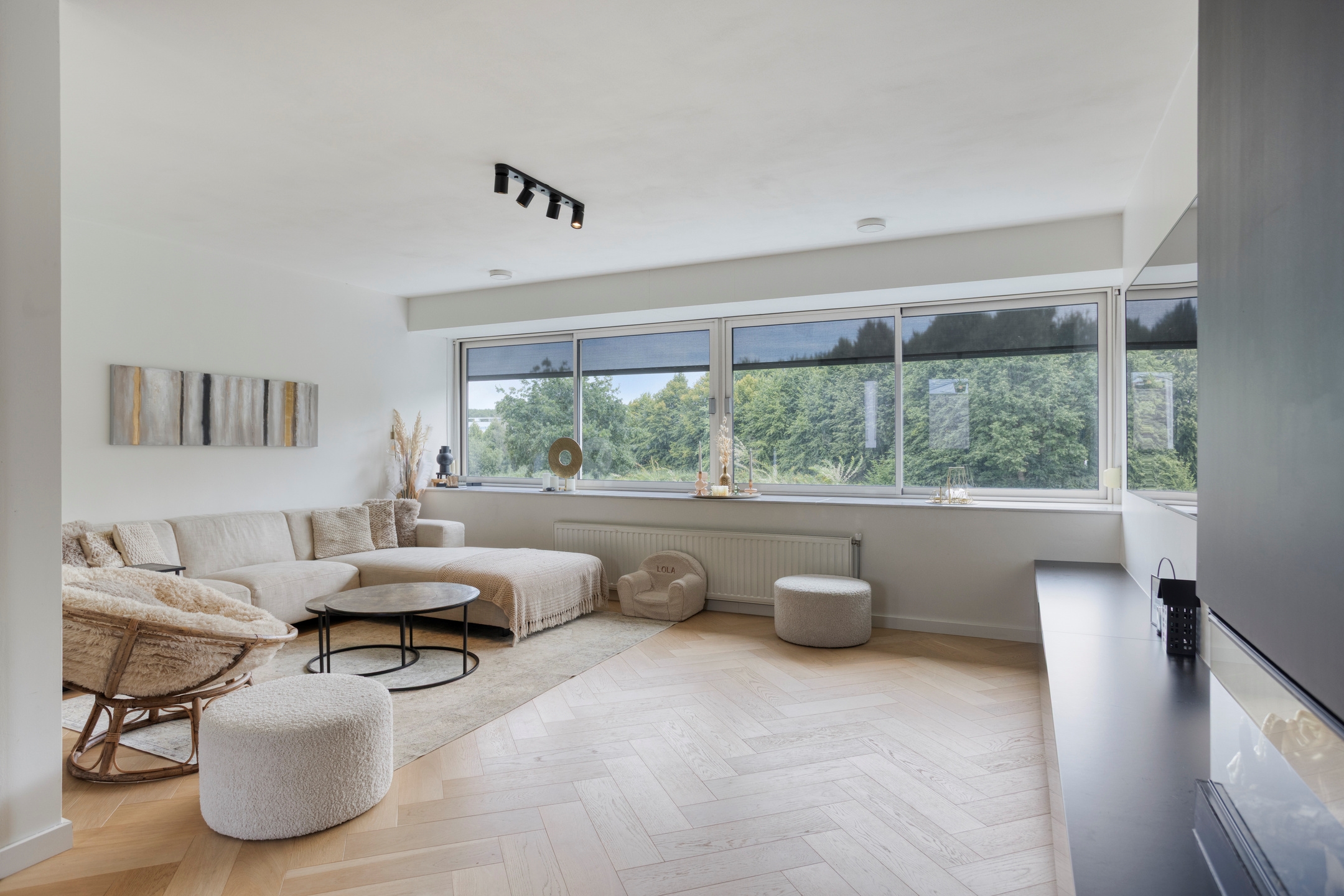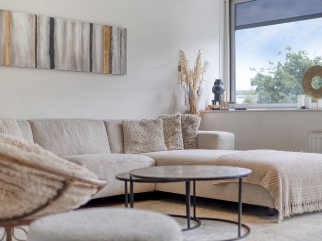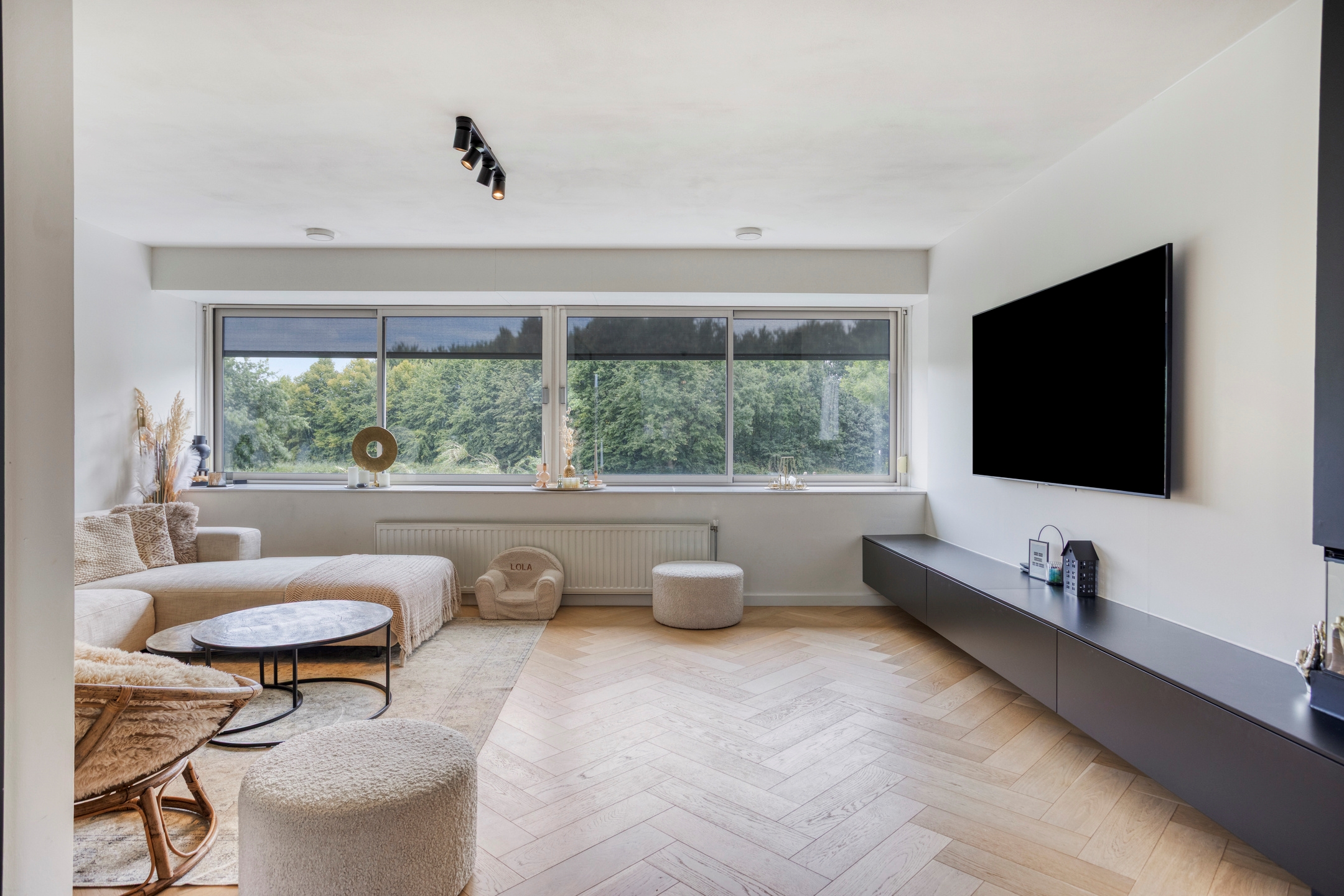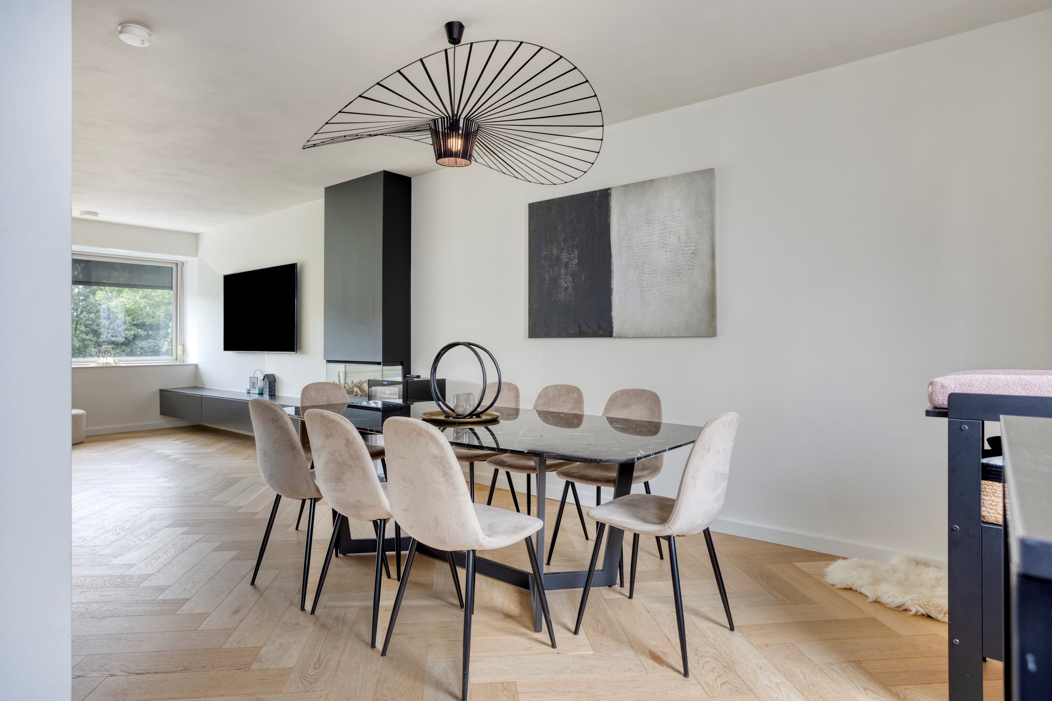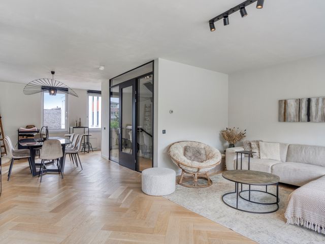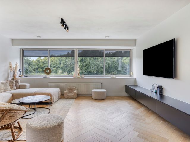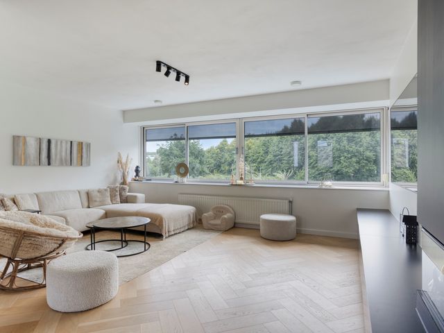 De lichte en royale woonkamer met veel raampartijen is voorzien van een visgraatvloer. Mede door de ligging van de woonkamer heeft u een prachtig en vrij uitzicht. De ramen aan de achterzijde zijn voorzien van screens.