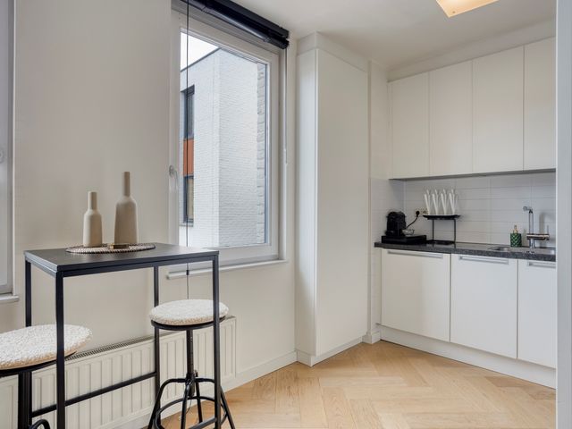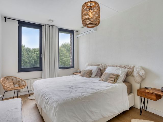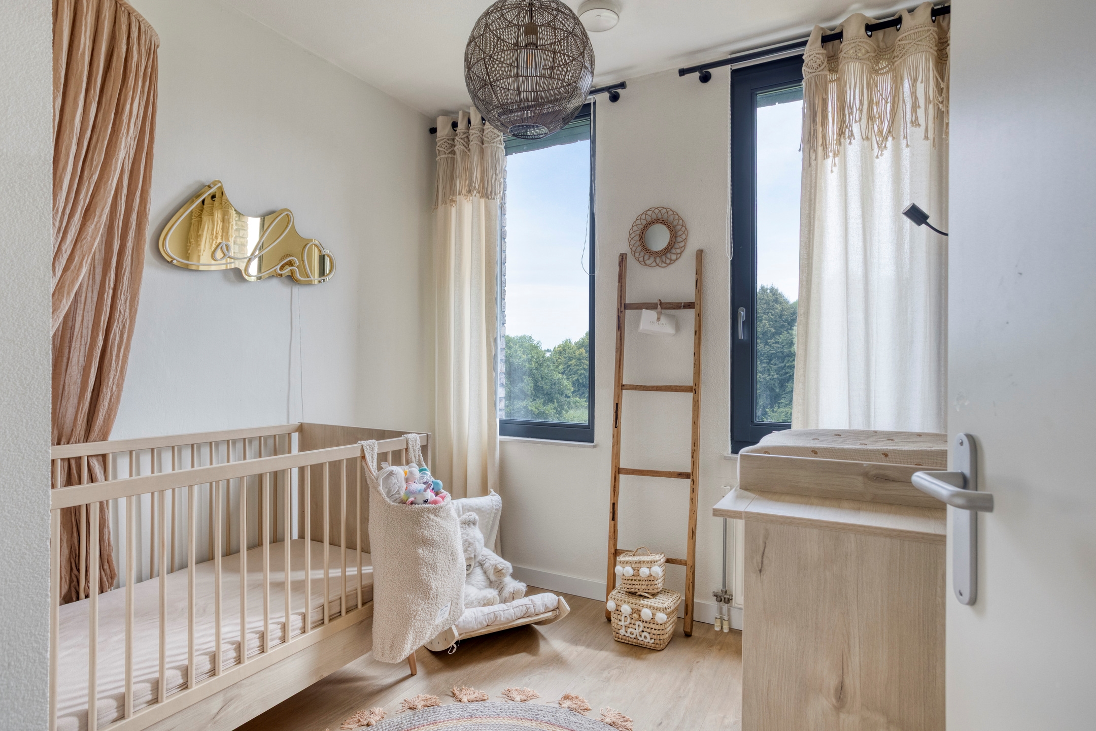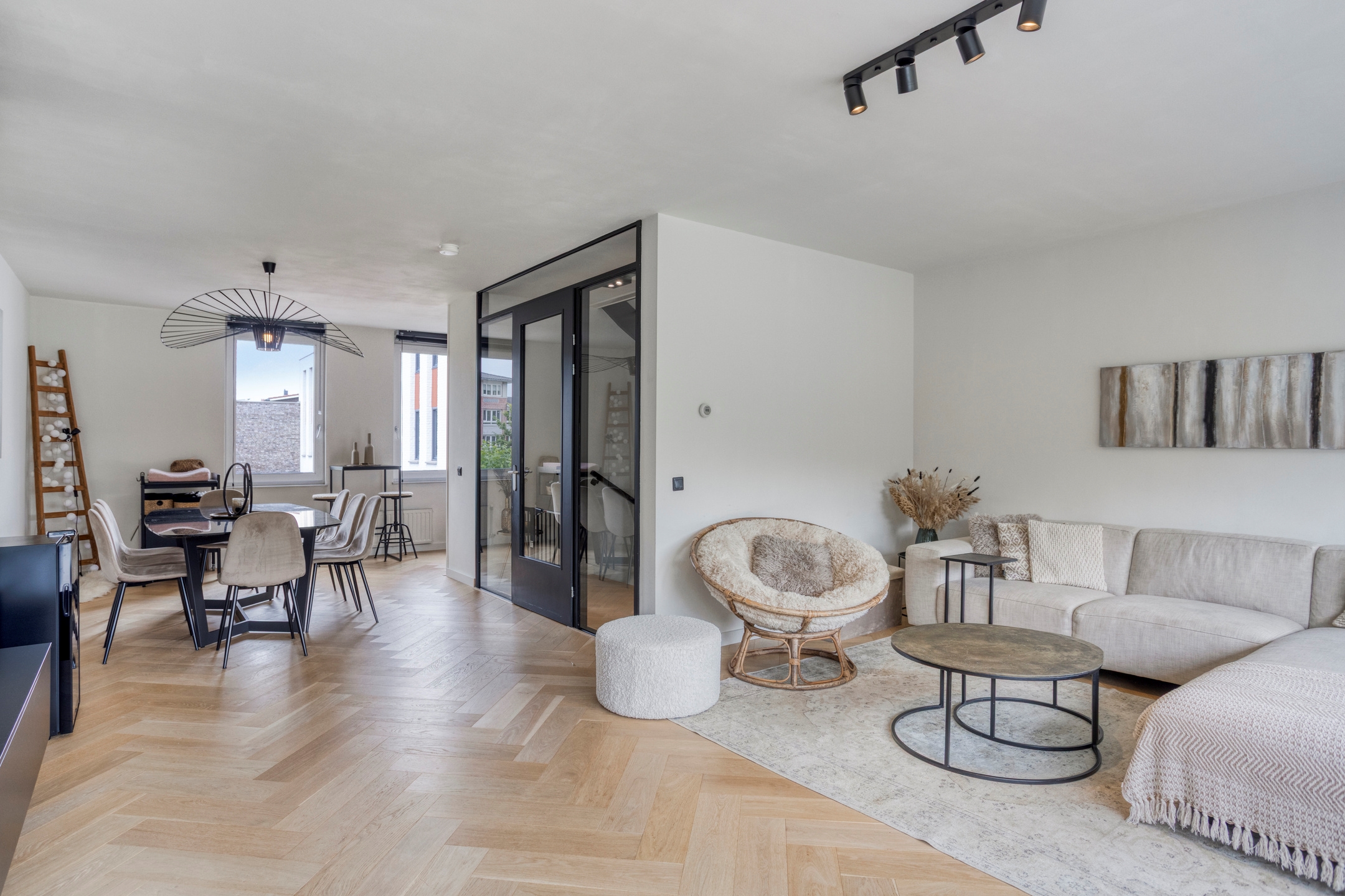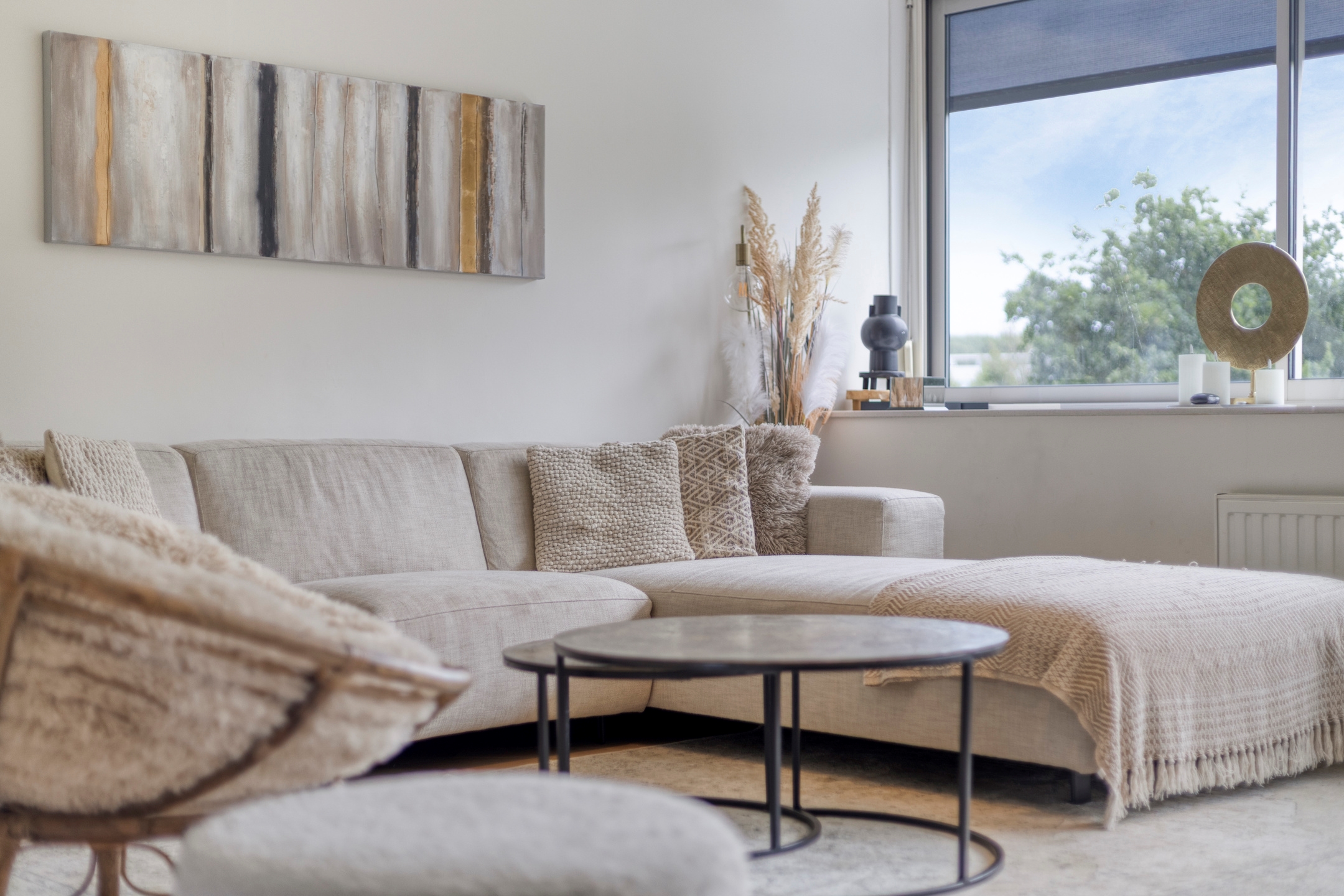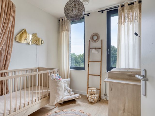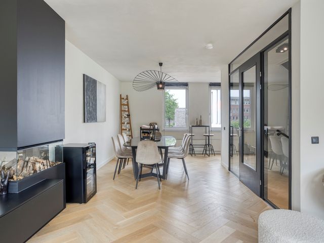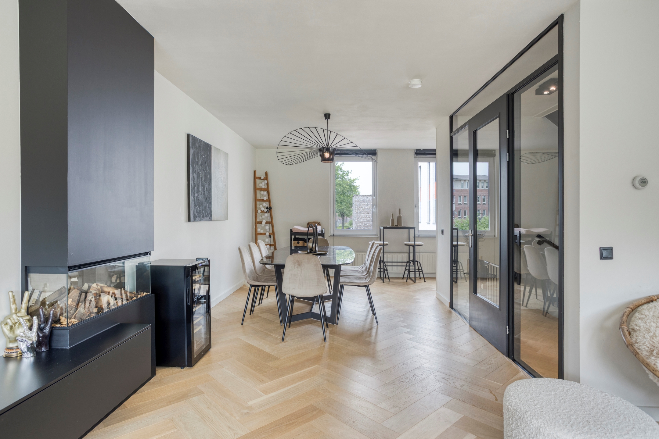 De lichte en royale woonkamer met veel raampartijen is voorzien van een visgraatvloer. Mede door de ligging van de woonkamer heeft u een prachtig en vrij uitzicht. De ramen aan de achterzijde zijn voorzien van screens.