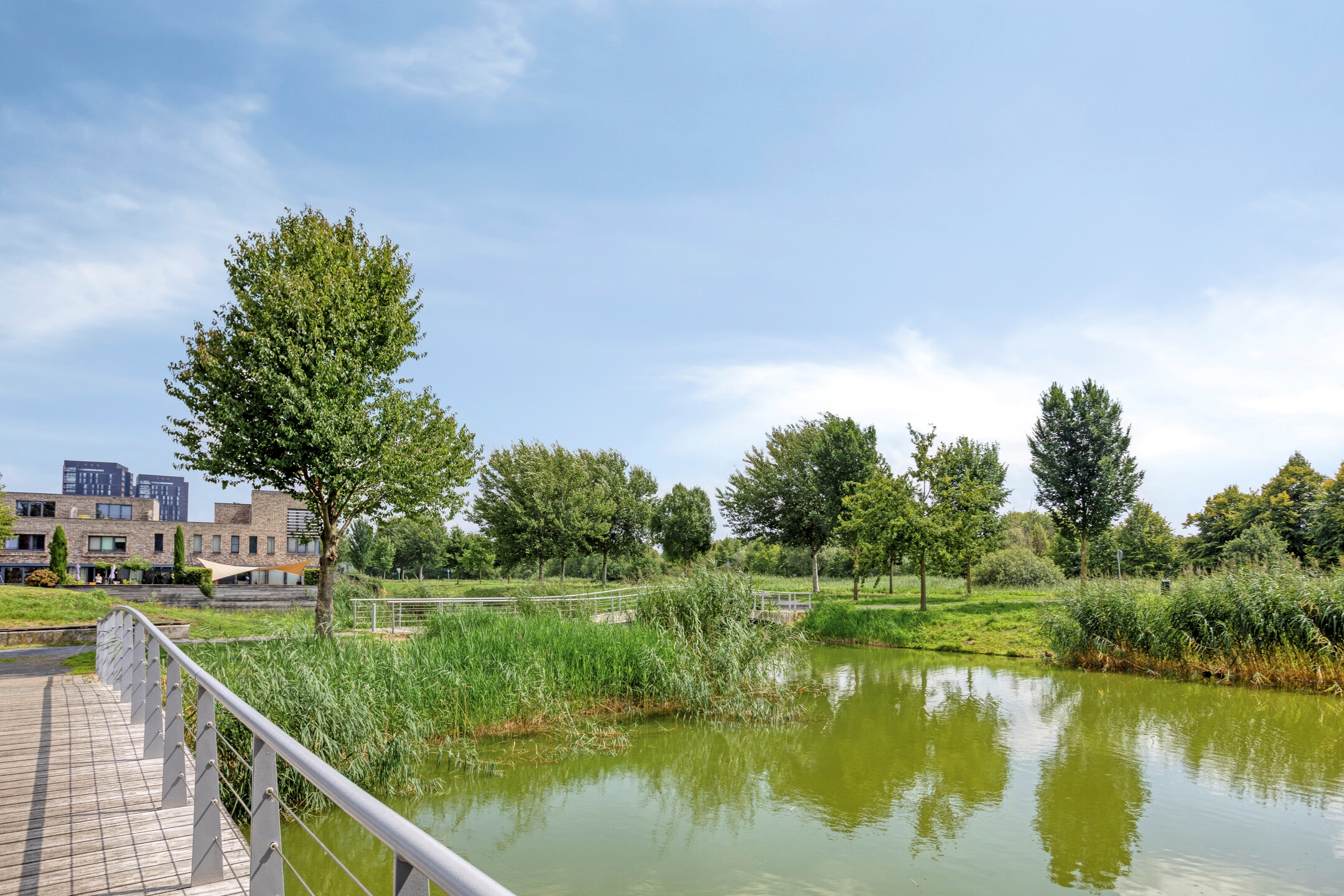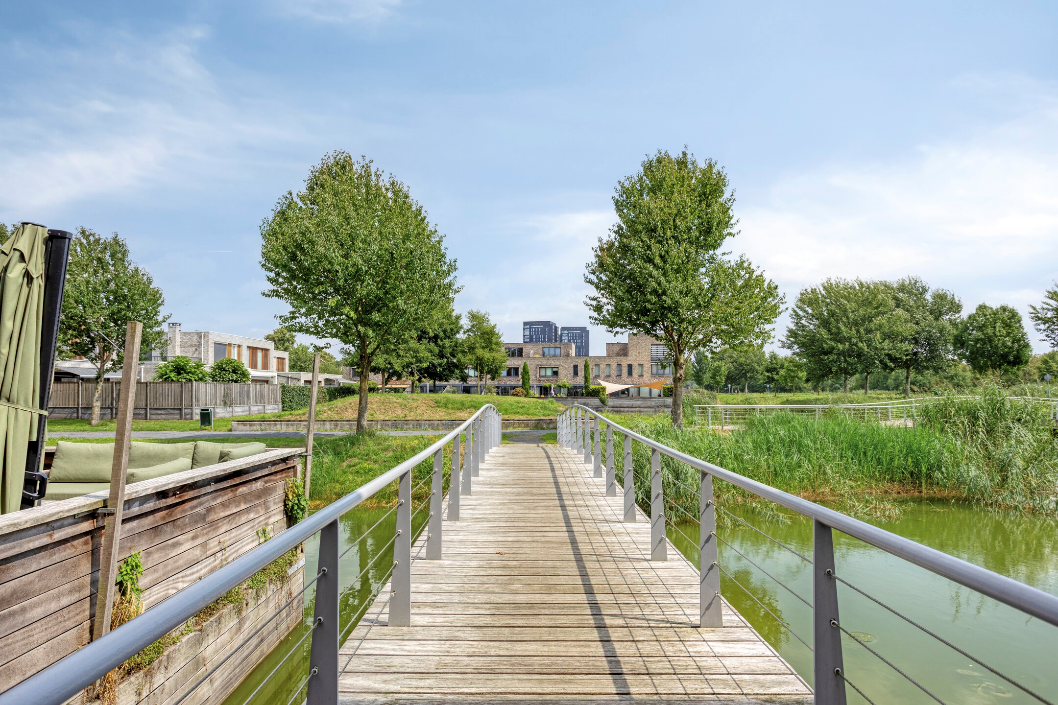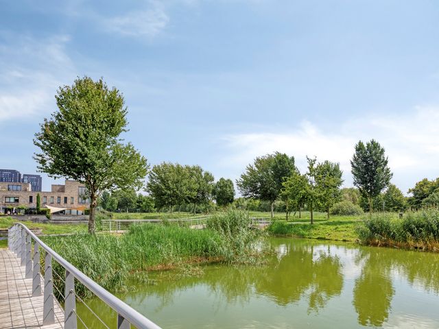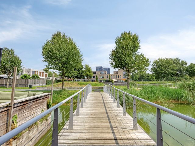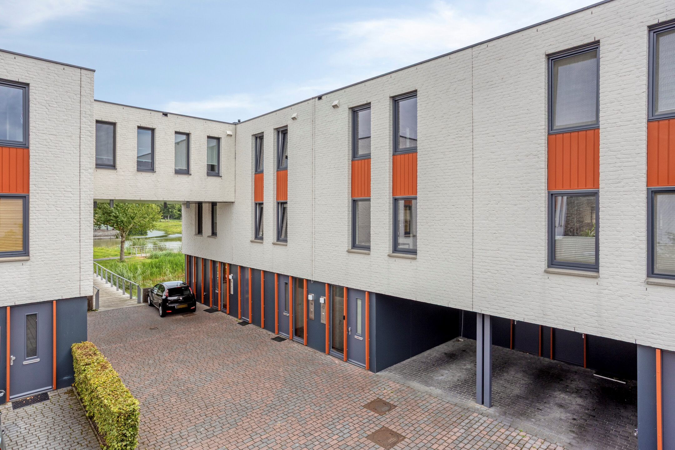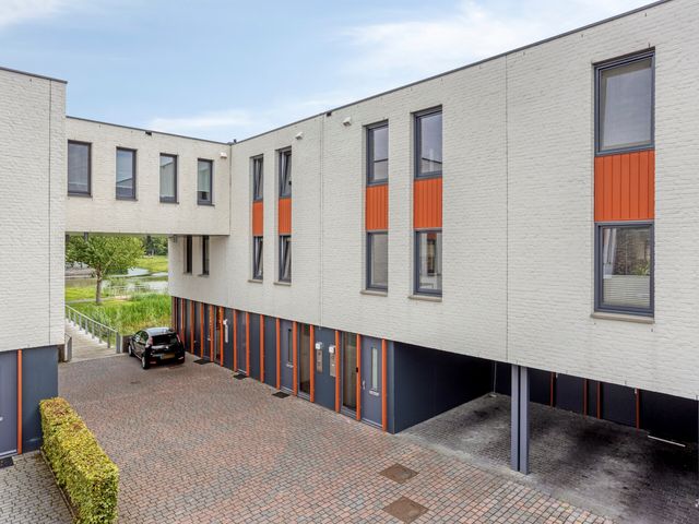 Wauw! Een zeer moderne stadswoning, energiezuinig met carport, royale lichte woonkamer, 2 keukens, 3 slaapkamers en badkamer. De woning ligt direct aan het water, binnen een parkachtige omgeving.