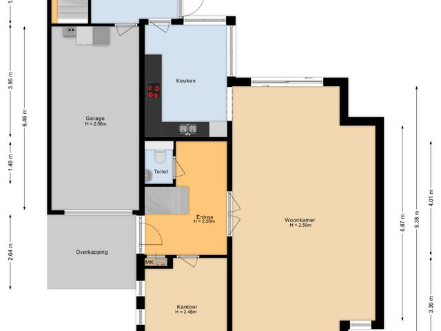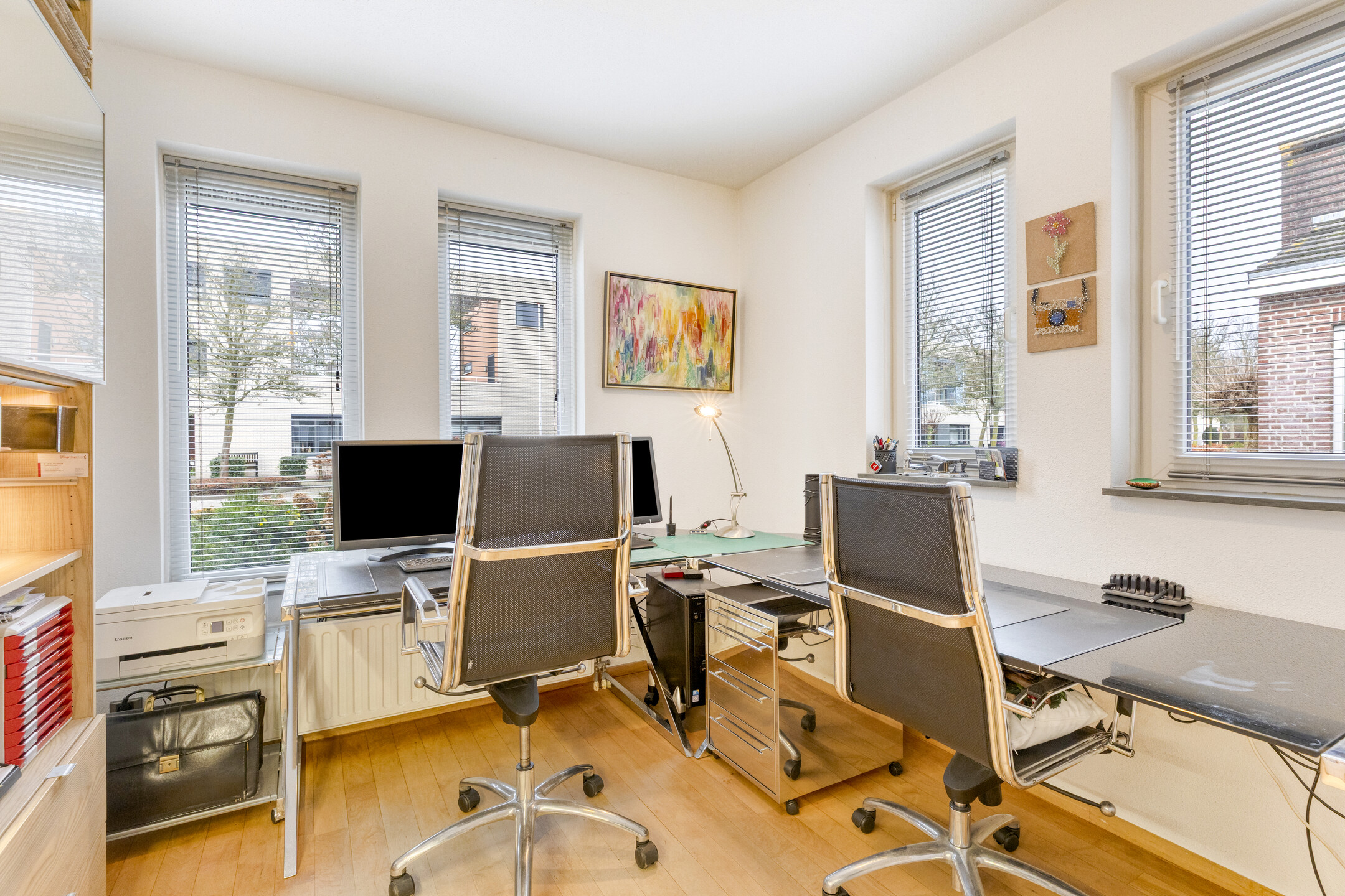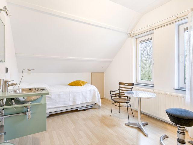 De extra kamer aan de voorzijde van de woning is momenteel ingericht als kantoor en leent zich uitstekend voor diverse gebruiksmogelijkheden, zoals een werkruimte aan huis of een comfortabele slaapkamer op de begane grond.