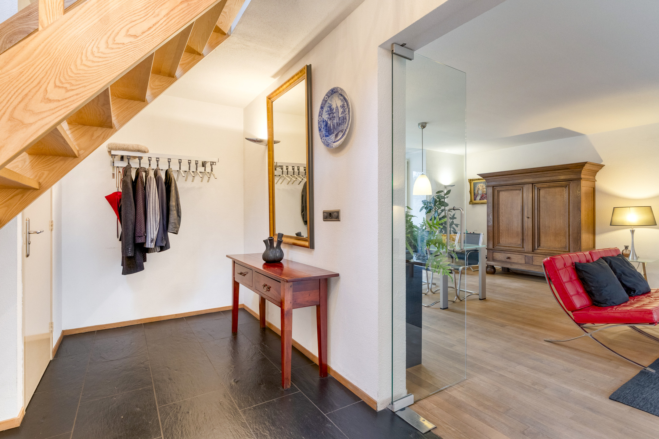 Bij binnenkomst in de woning ervaar je direct de verzorgde afwerking en prettige sfeer. De lichte en ruime entree/hal vormt een uitnodigende binnenkomst en biedt toegang tot de woonkamer, de werk-/kantoorruimte, de toiletruimte en de meterkast.