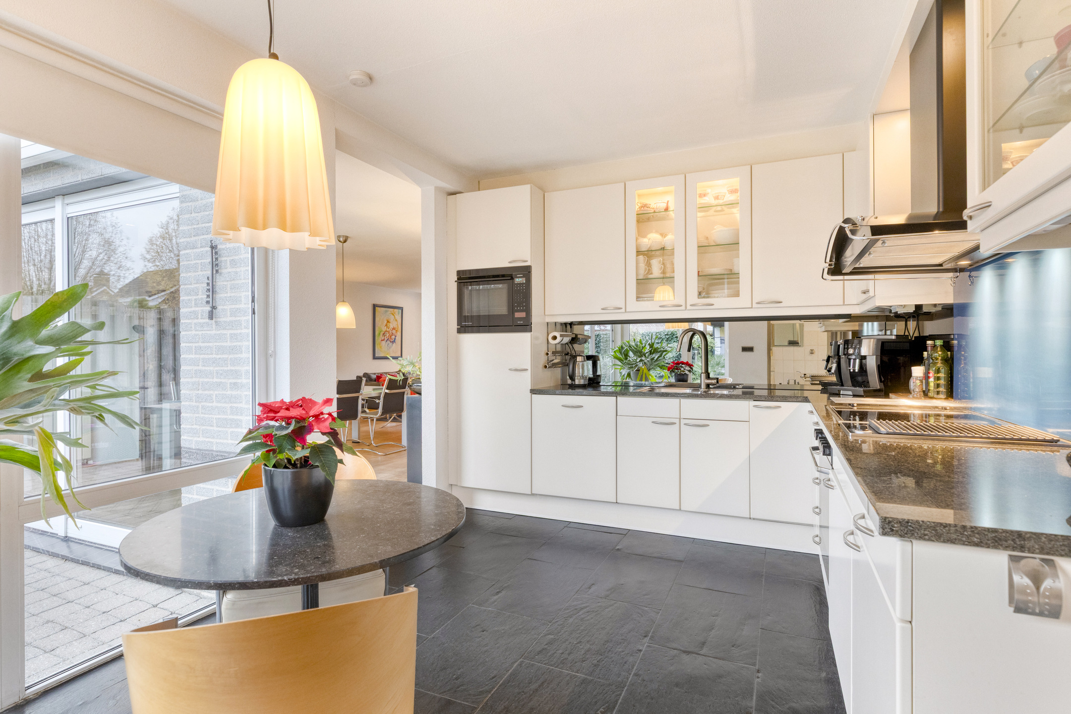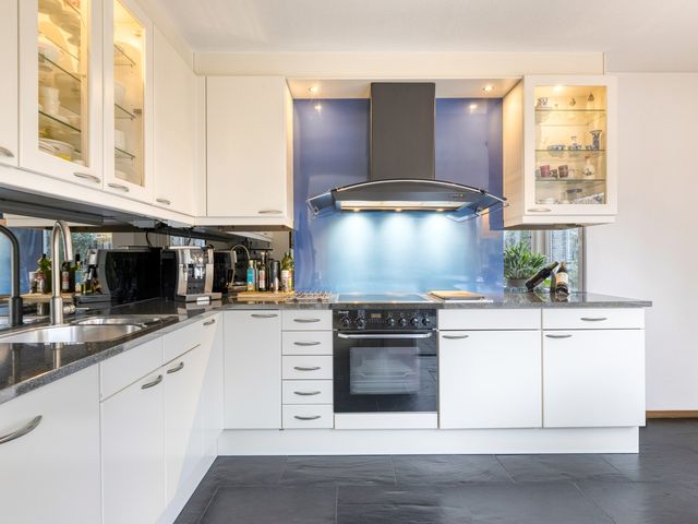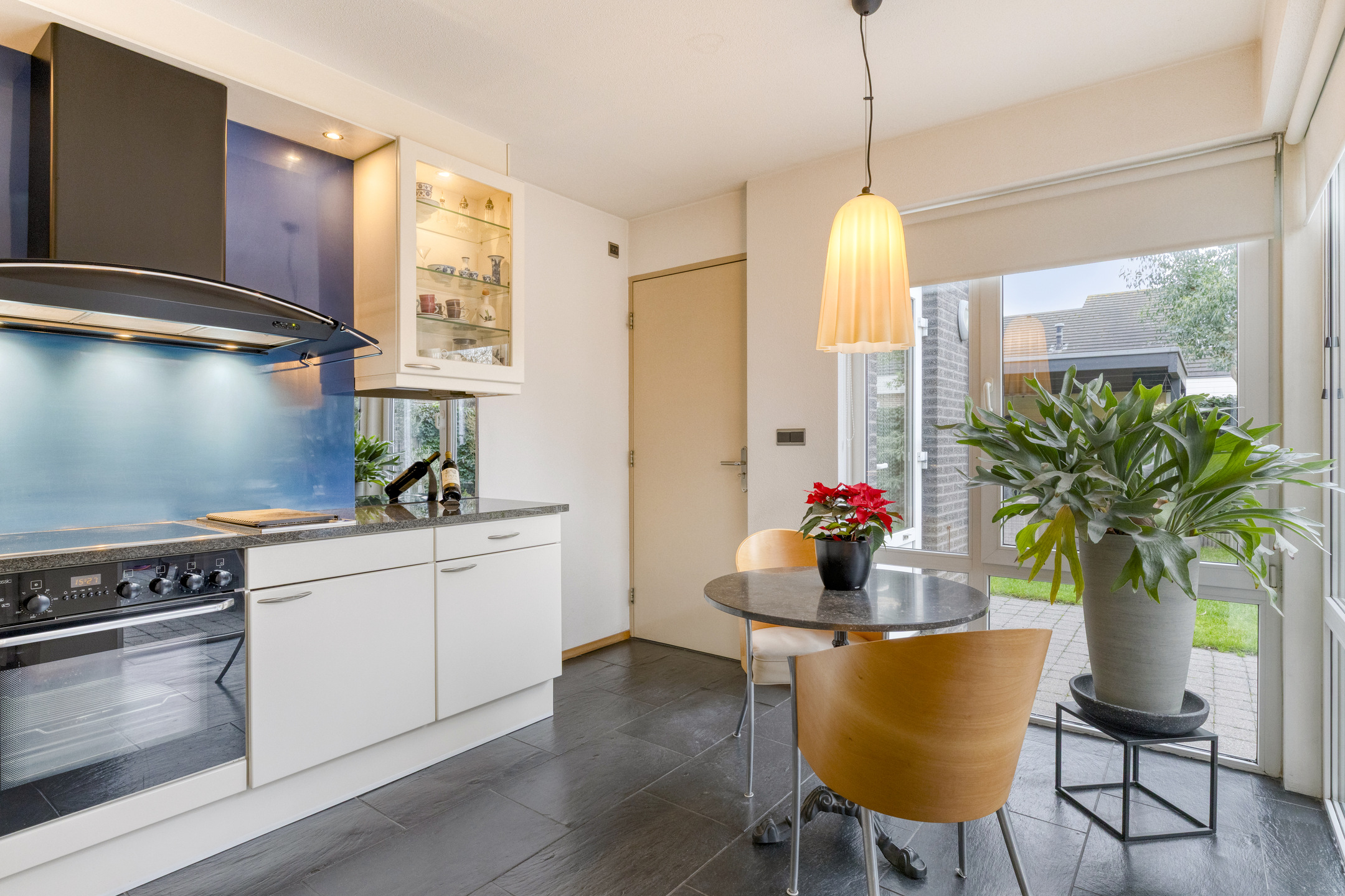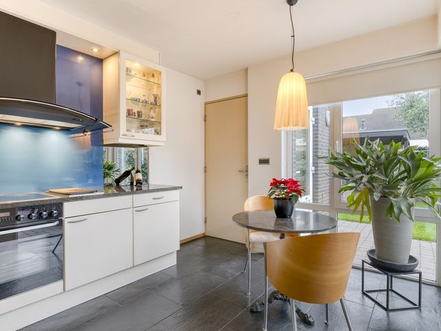 Dankzij de prettige raampartijen geniet je hier van een fraai uitzicht op de achtertuin, wat bijdraagt aan een aangename kook- en leefomgeving.