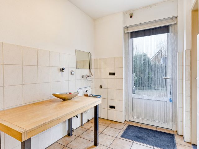 De bijkeuken biedt tevens directe toegang tot de achtertuin en vormt daarnaast de verbindende schakel naar de garage.