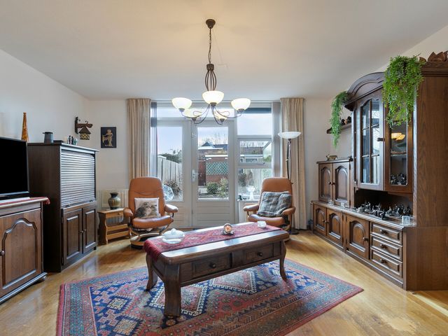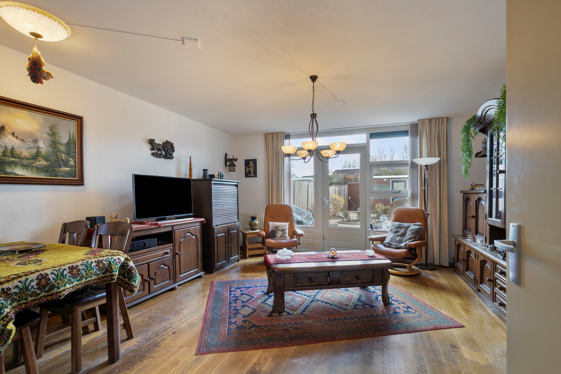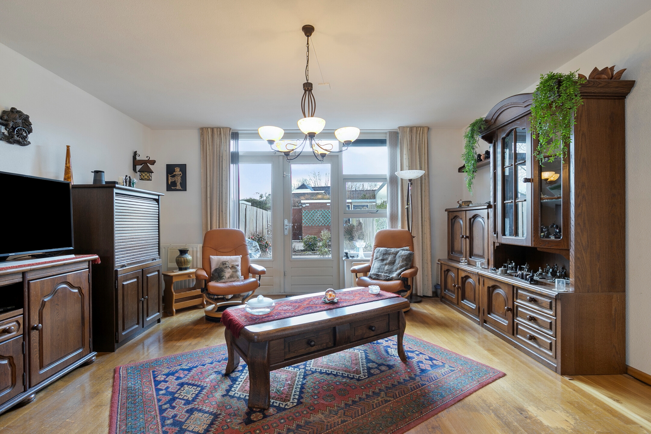 - Ruime en lichte woonkamer met grote raampartijen en openslaande tuindeuren