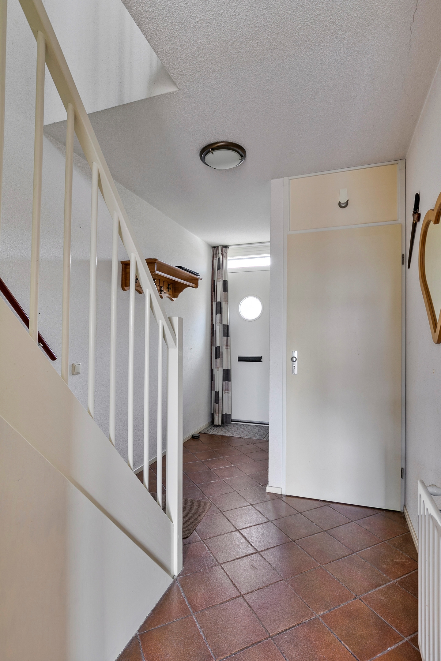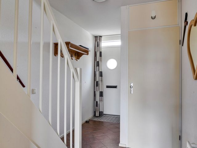 Vanuit de ontvangsthal heeft u toegang tot de woonkamer, het toilet, de meterkast en de trap naar de eerste verdieping.