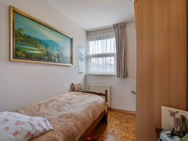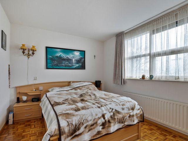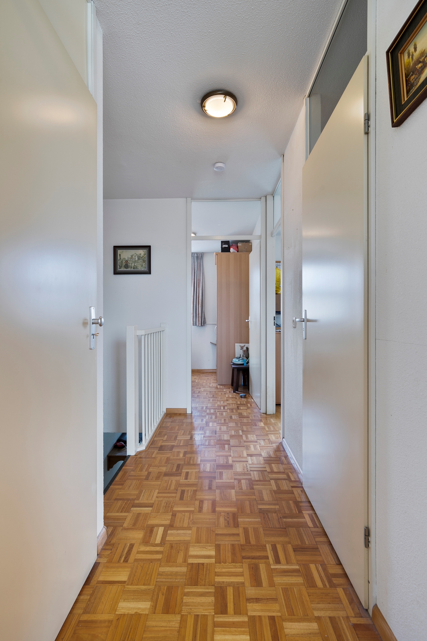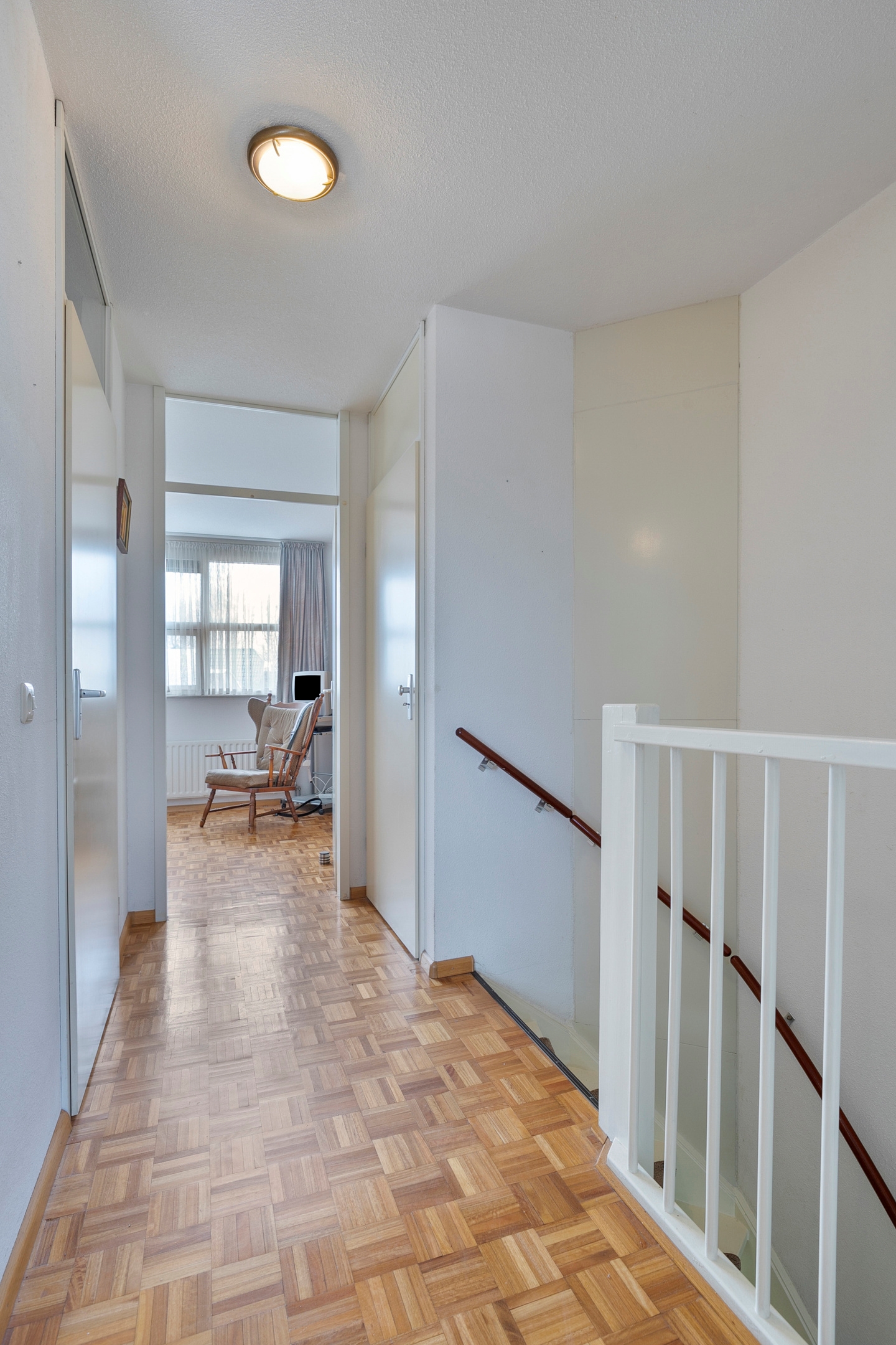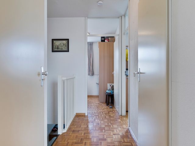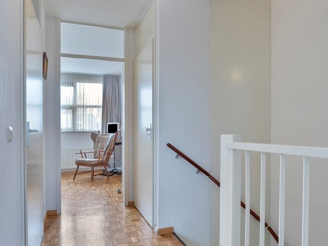 De overloop biedt toegang tot drie slaapkamers, de badkamer en een berging waar zich tevens de cv-ketel bevindt. Op deze verdieping ligt, met uitzondering van de badkamer, een parketvloer.