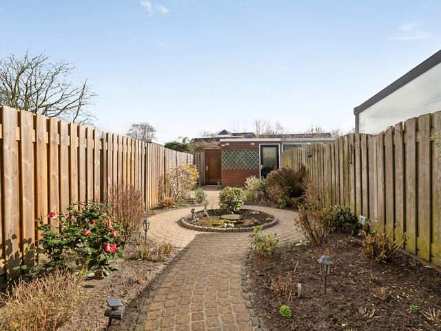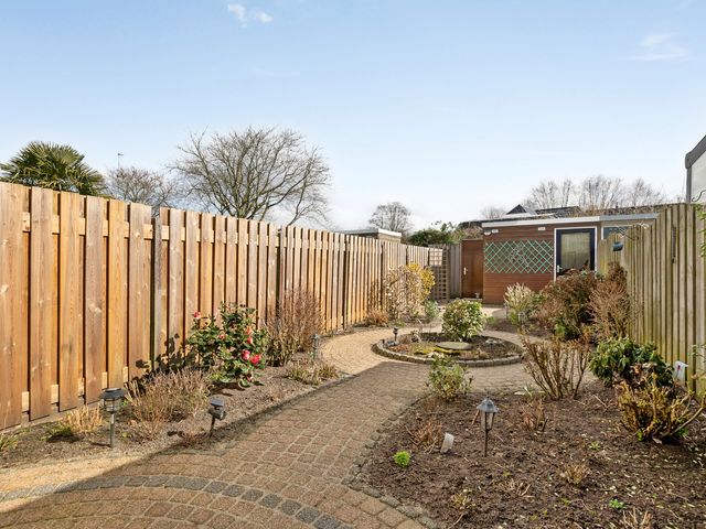 De tuin is ruim van opzet en fraai aangelegd met een combinatie van bestrating en diverse vaste planten, wat zorgt voor een groene en sfeervolle uitstraling. Daarnaast biedt de tuin volop privacy.