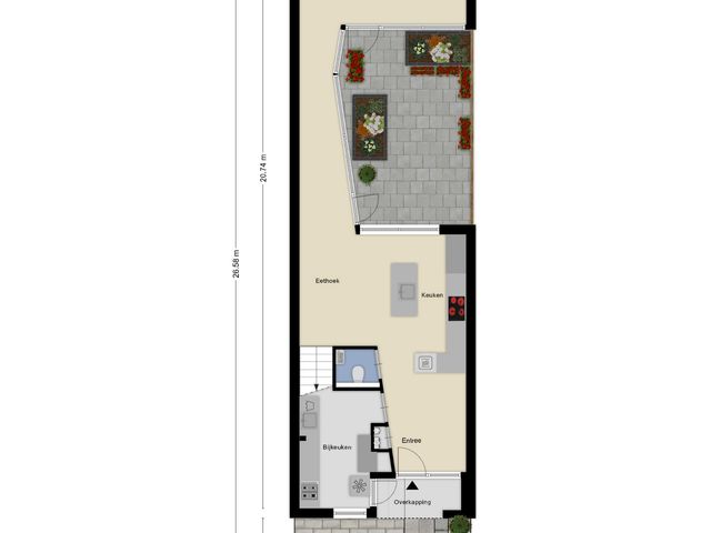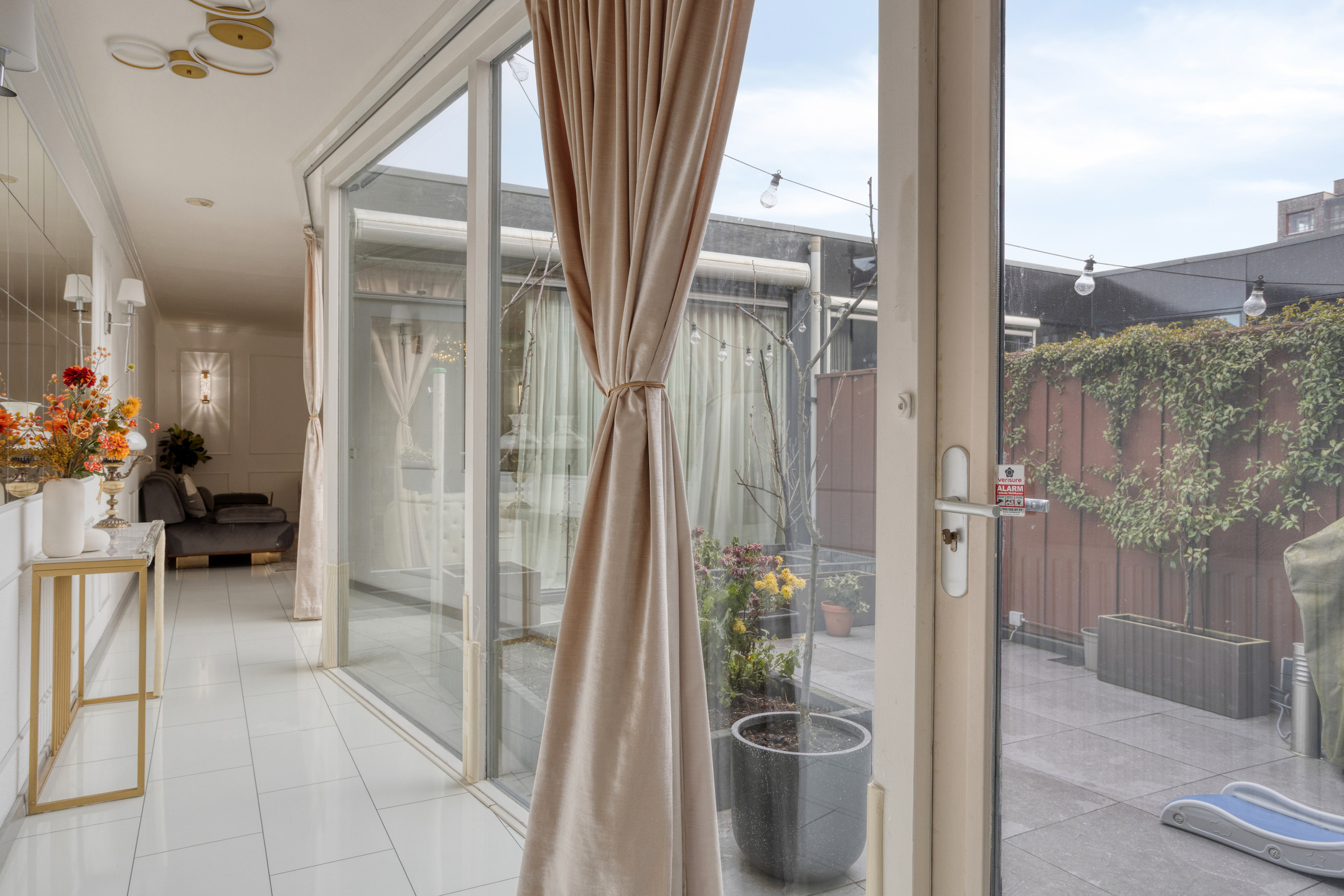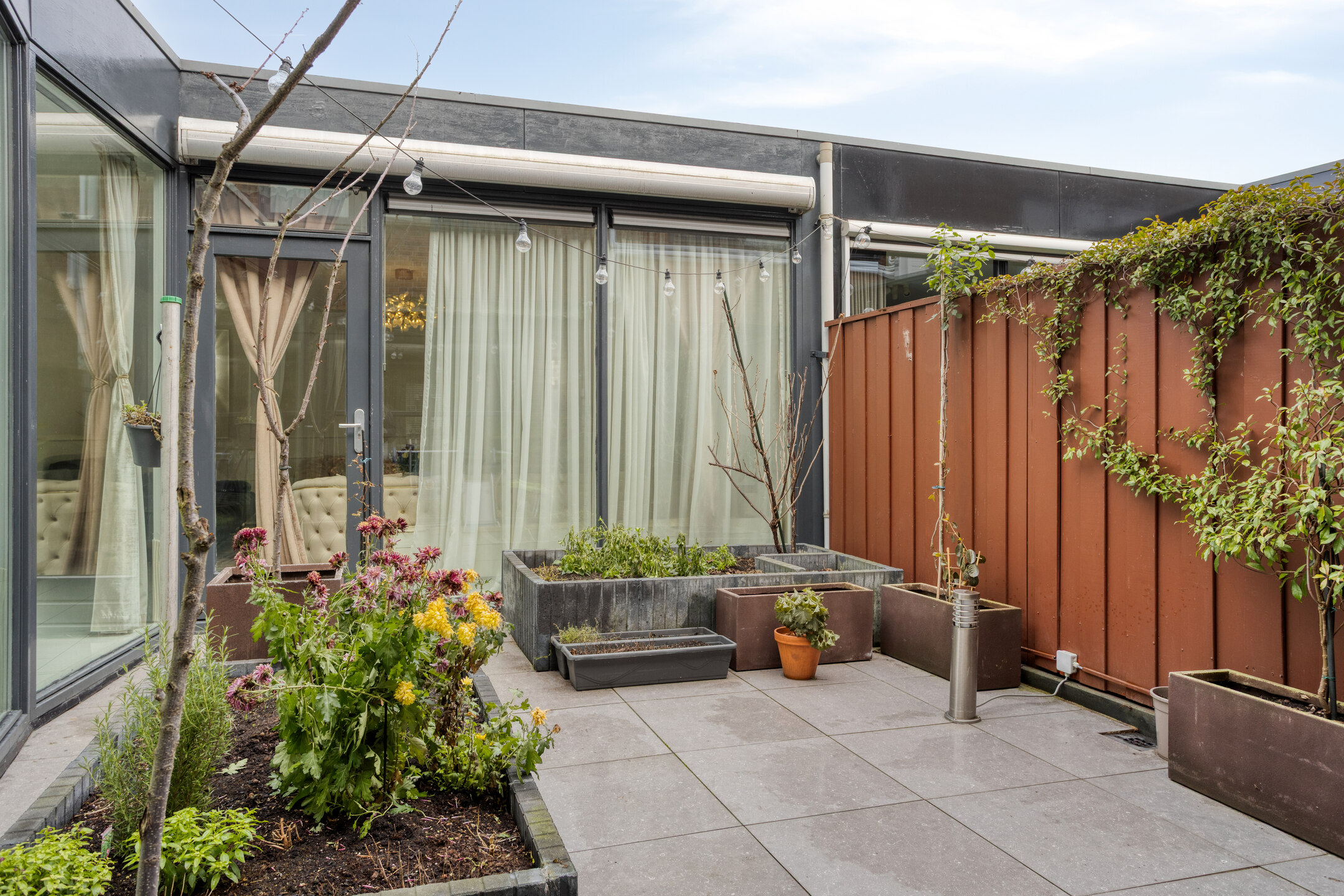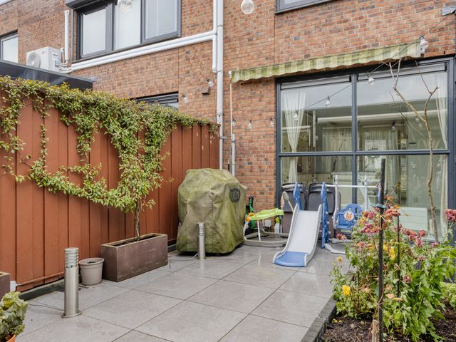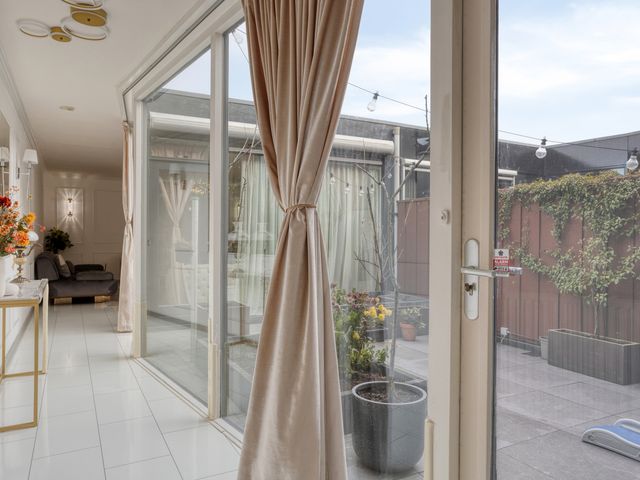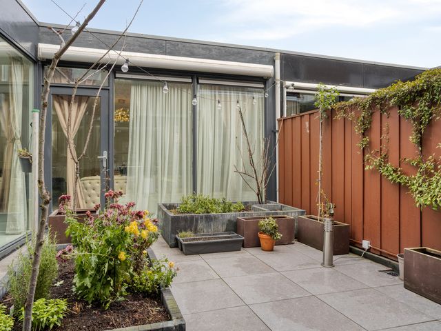 De bijzondere patiotuin, ca. 3.15x5.82 m, ligt tussen de woonkeuken, de tussengang en de woonkamer in. Deze patiotuin biedt volledige privacy en u heeft veel zon! U kunt na een dag gewerkt te hebben nog lekker nagenieten van de leuke buitenmomenten. Verder treft nu nog 1 elektrisch rolluik en een handmatig te bedienen zonnescherm aan.
