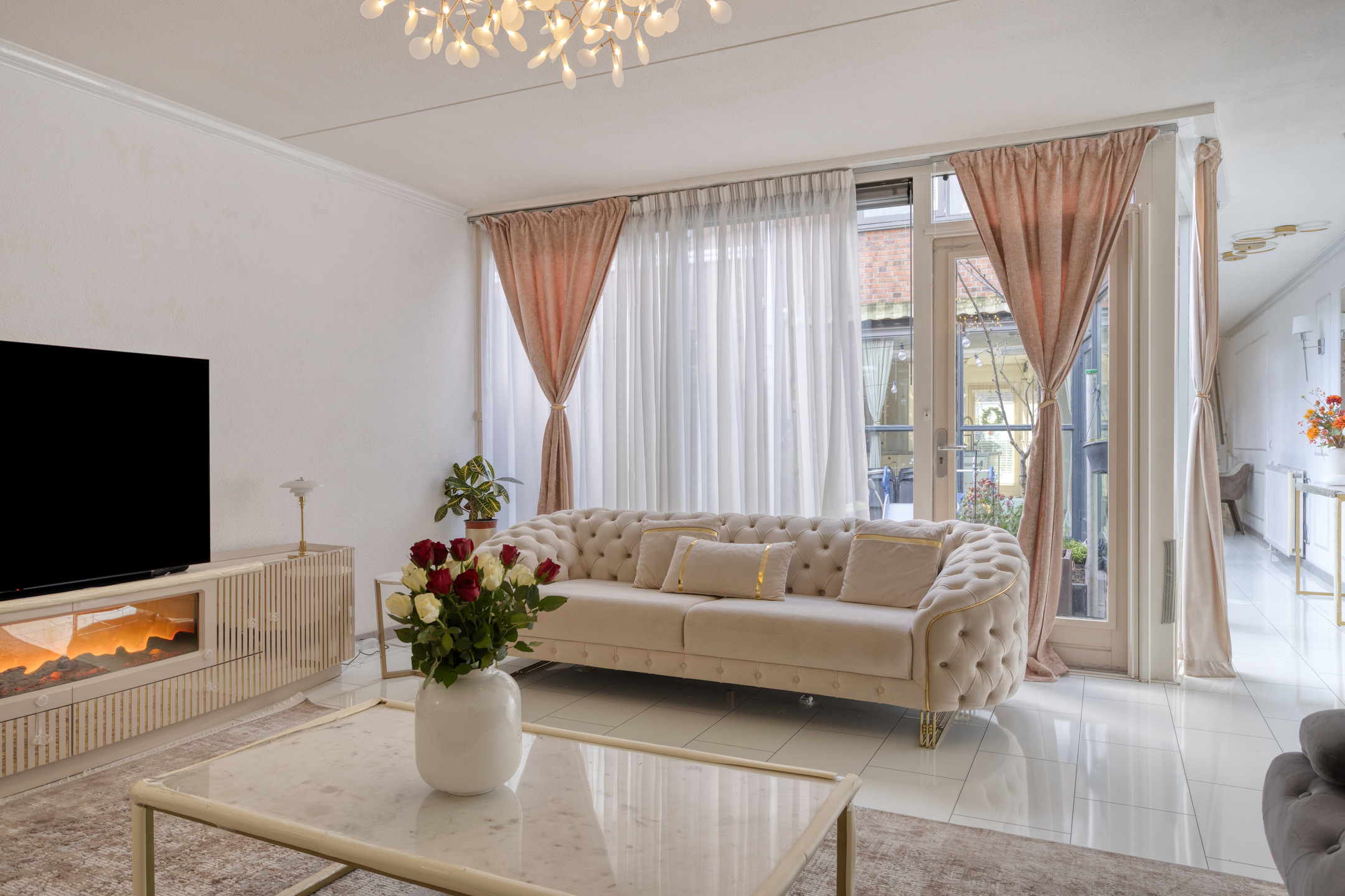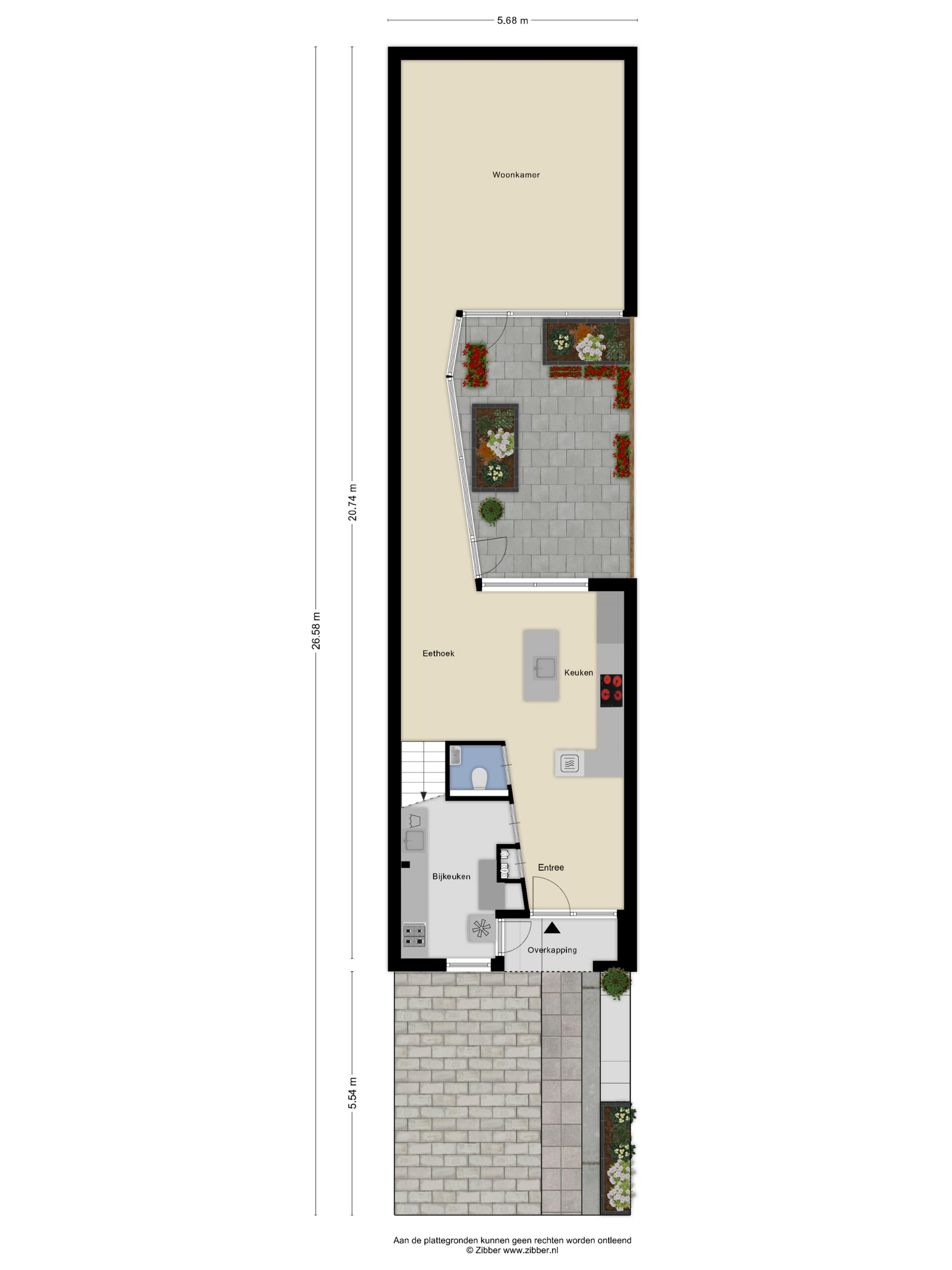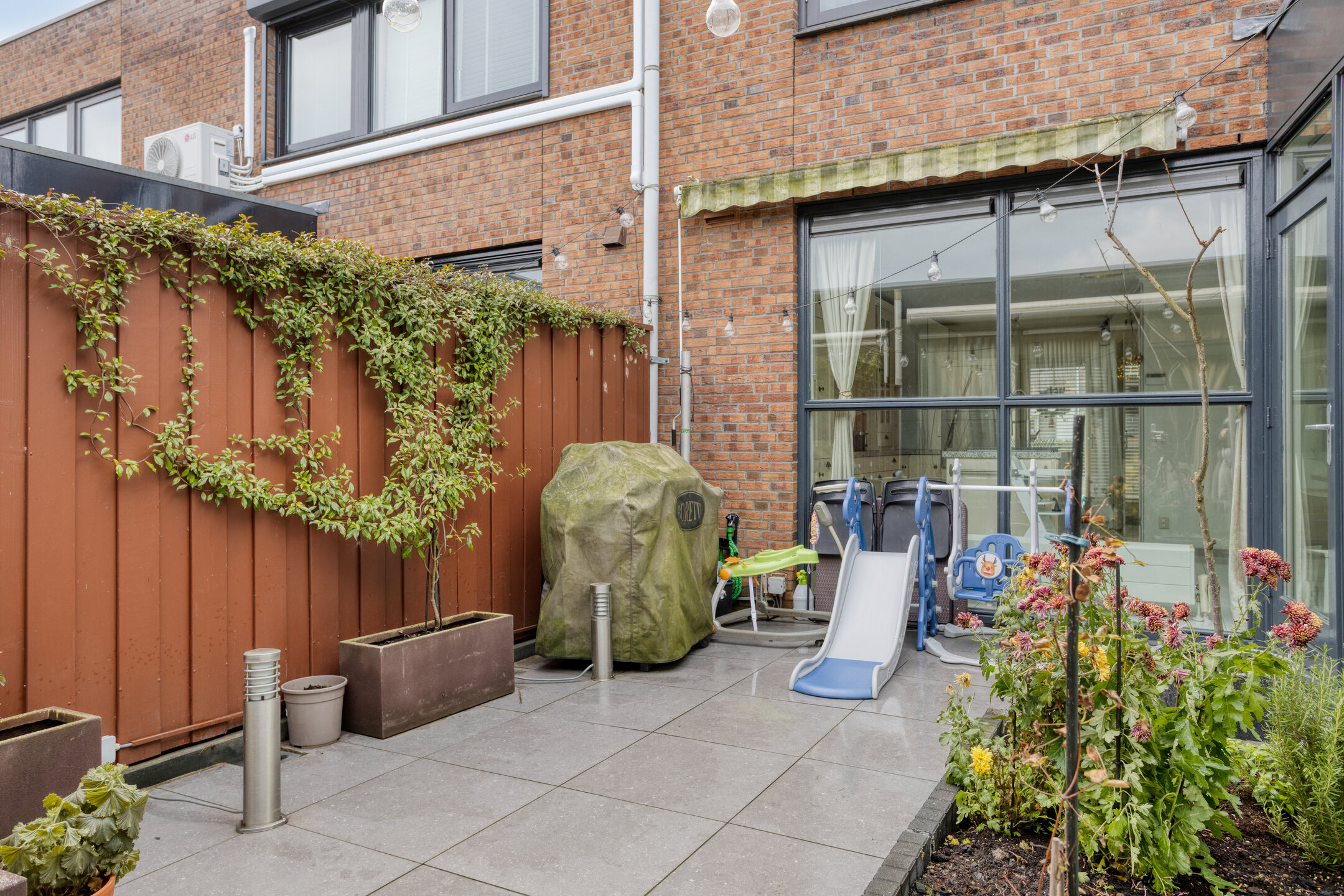De bijzondere patiotuin, ca. 3.15x5.82 m, ligt tussen de woonkeuken, de tussengang en de woonkamer in. Deze patiotuin biedt volledige privacy en u heeft veel zon! U kunt na een dag gewerkt te hebben nog lekker nagenieten van de leuke buitenmomenten. Verder treft nu nog 1 elektrisch rolluik en een handmatig te bedienen zonnescherm aan.