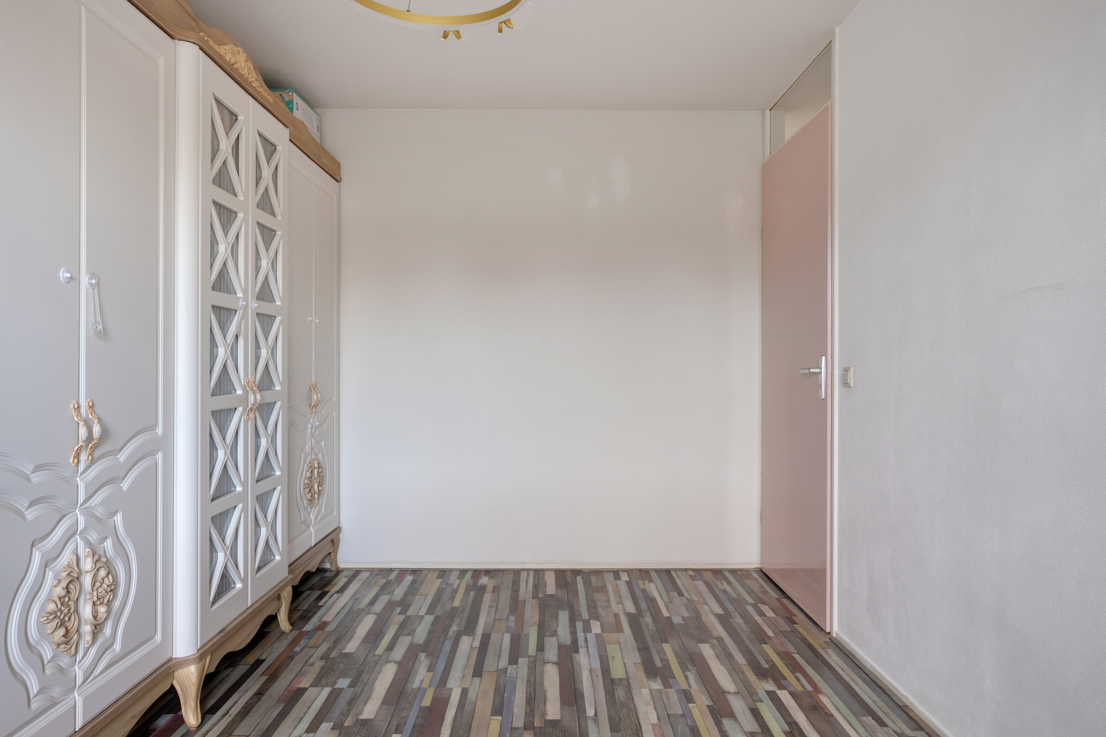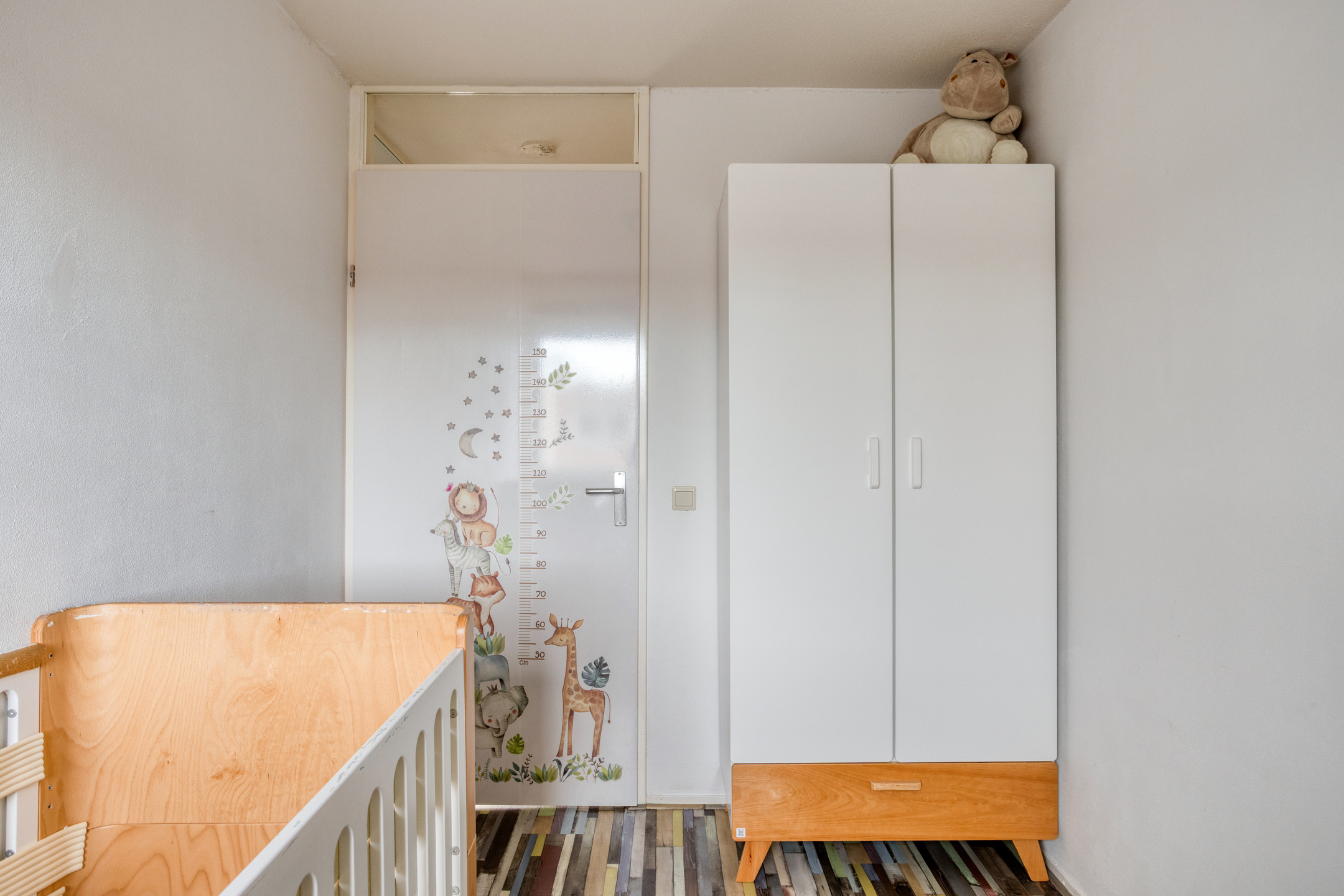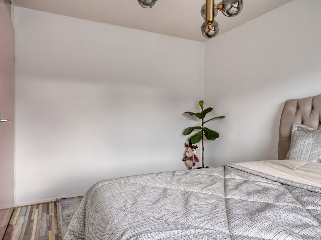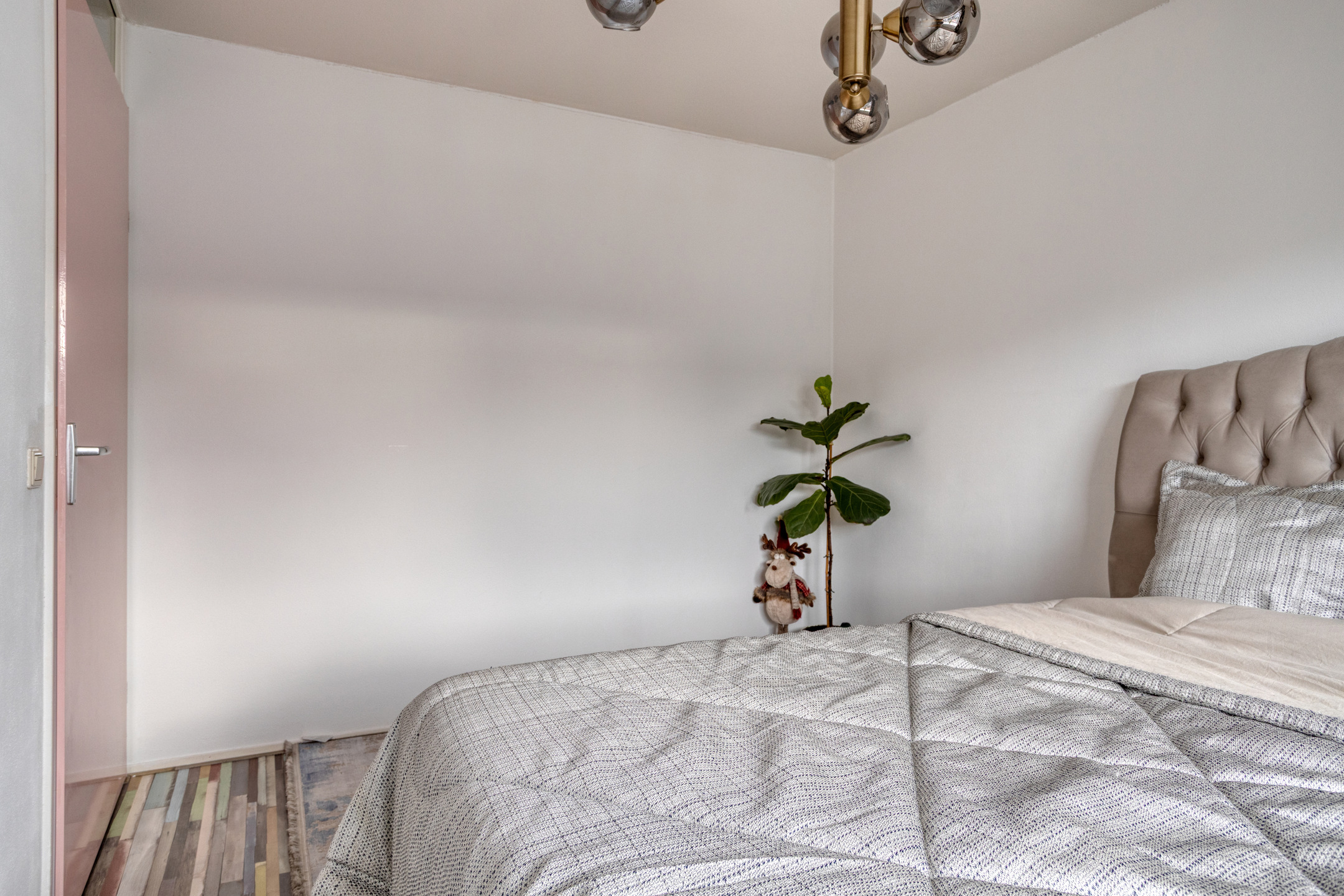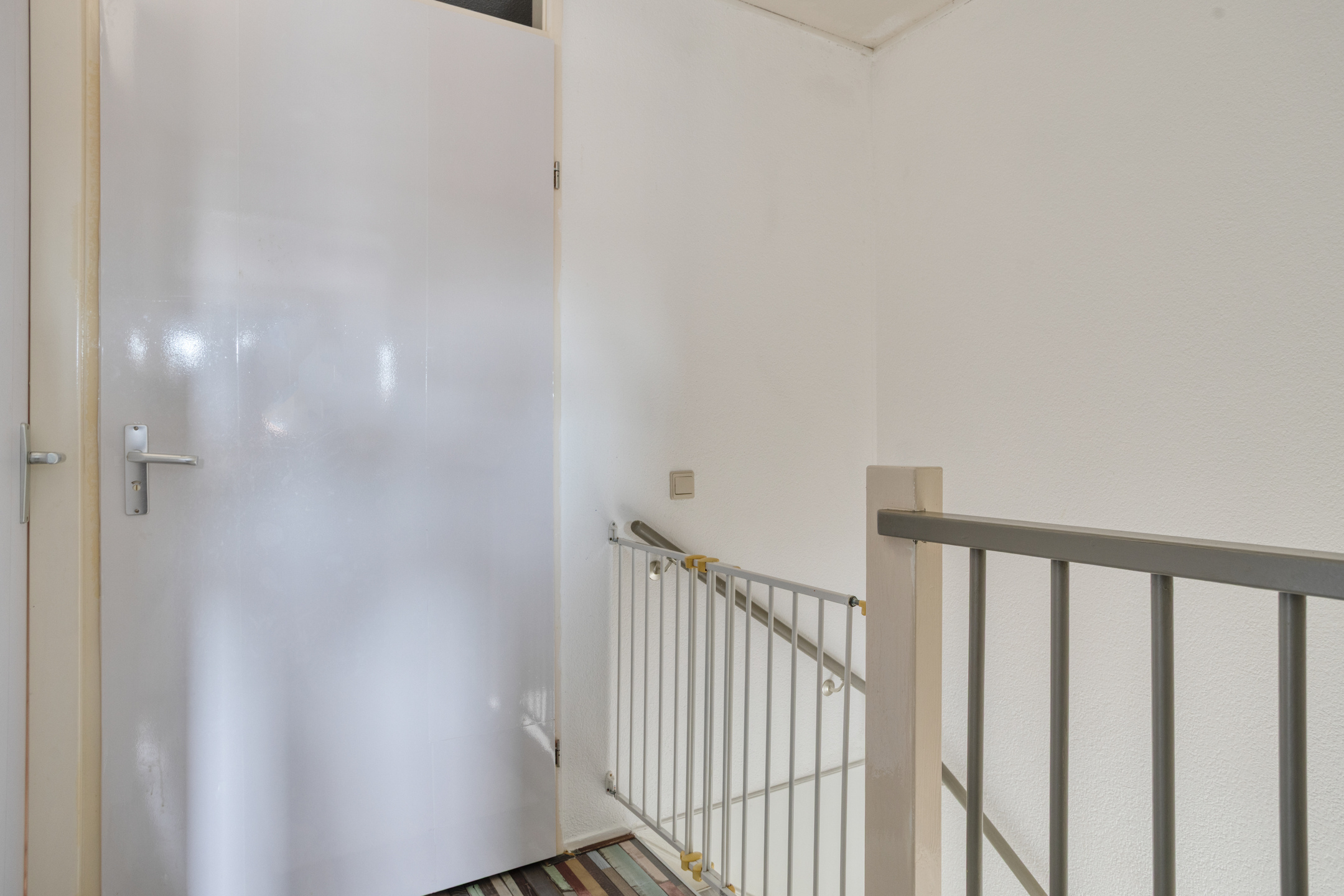 Ook op deze 2e woonlaag ligt een eigentijdse laminaatvloer en de wanden zijn gespoten.