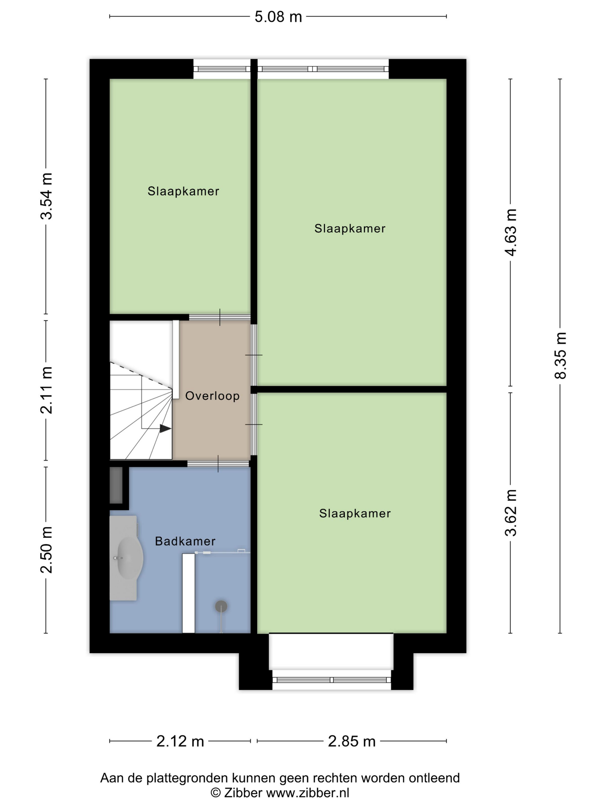 Slaapkamers 1 & 2 liggen aan de achterzijde en slaapkamer 3 grenst aan de voorzijde.