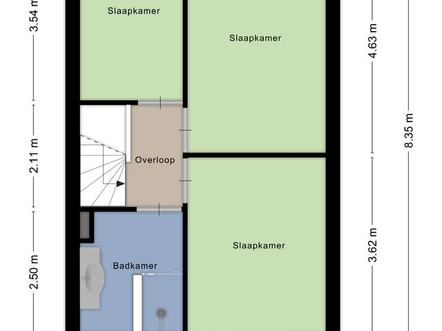 Via een vaste trap is de overloop te bereiken. Vanuit de overloop zijn de 3 volwaardige slaapkamers en de design badkamer toegankelijk.